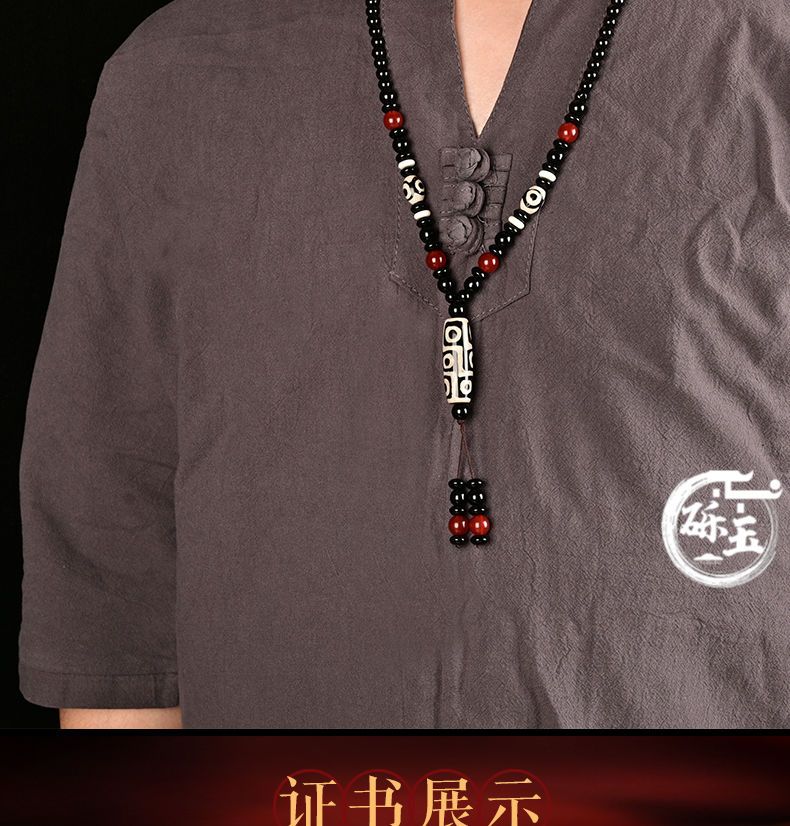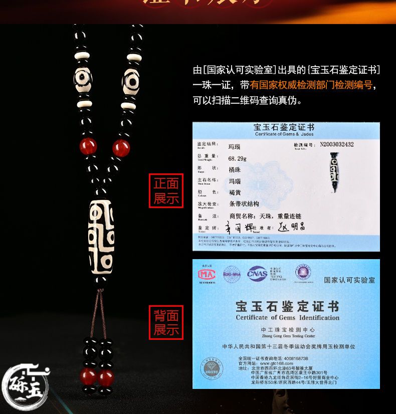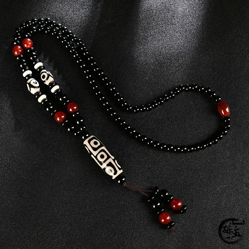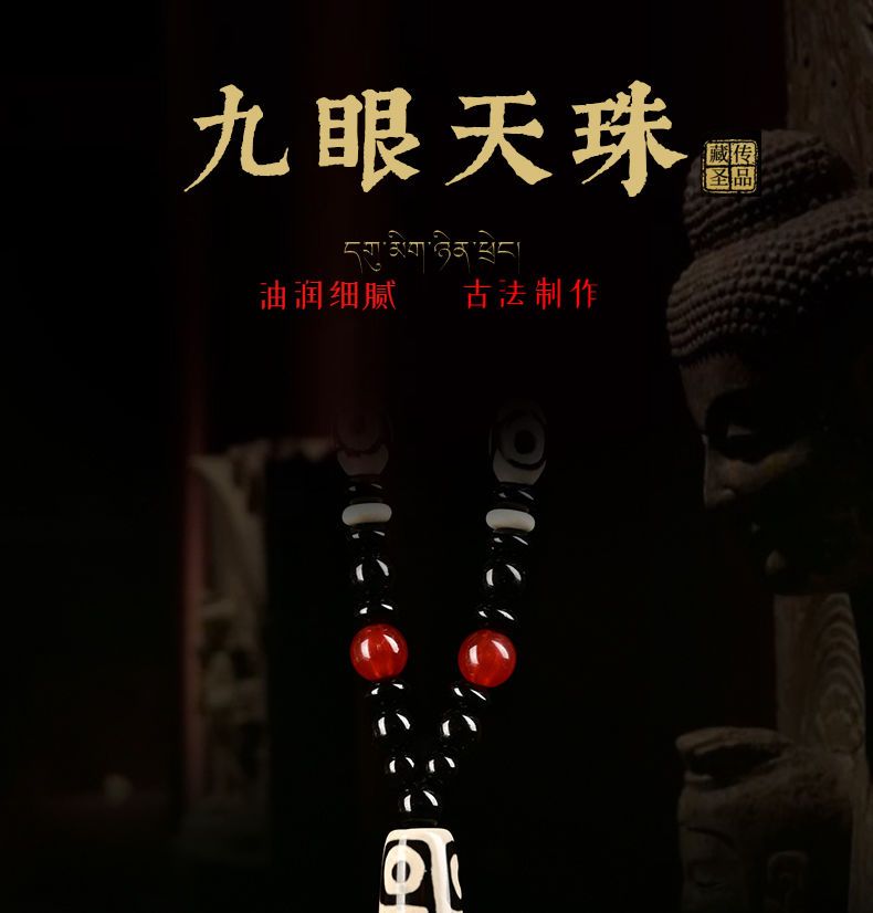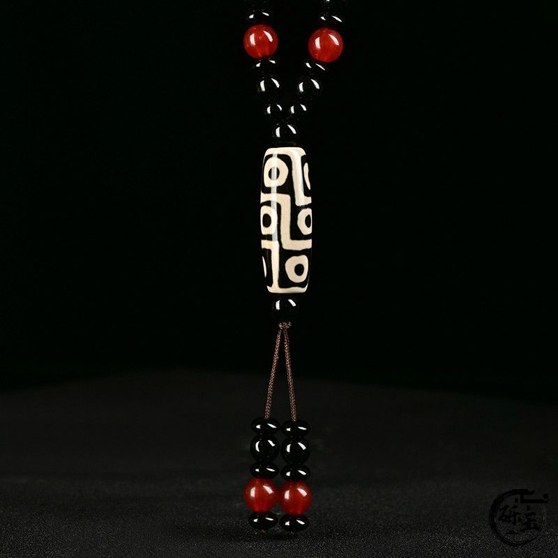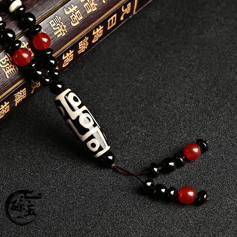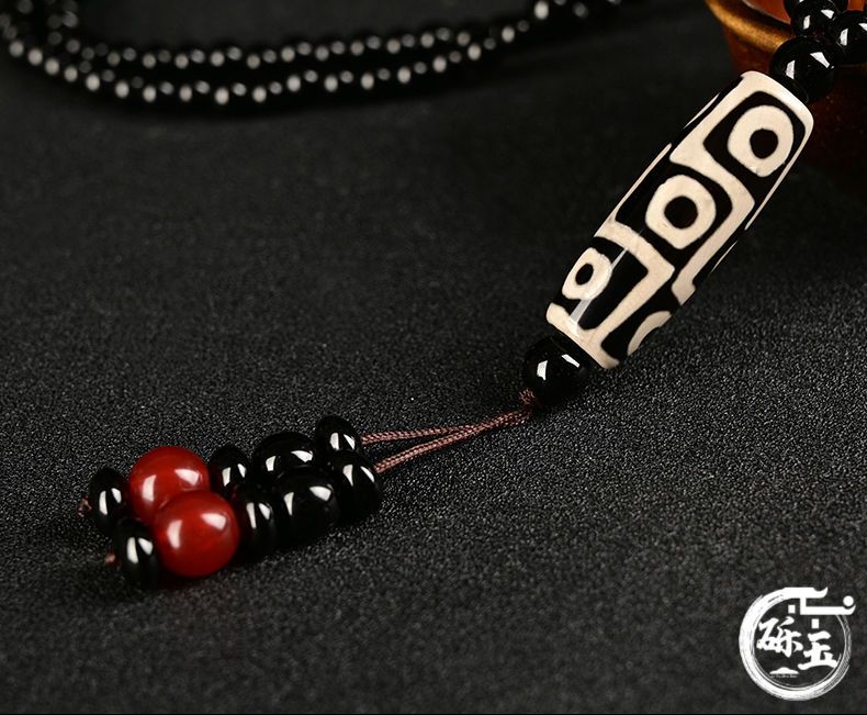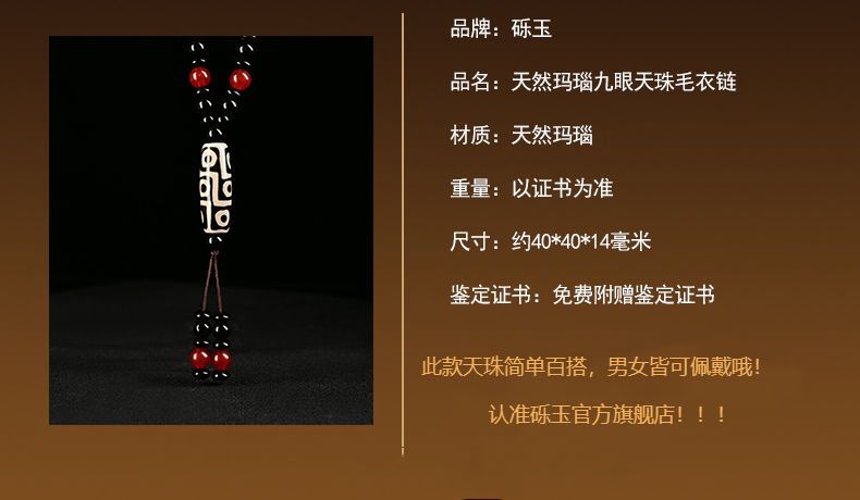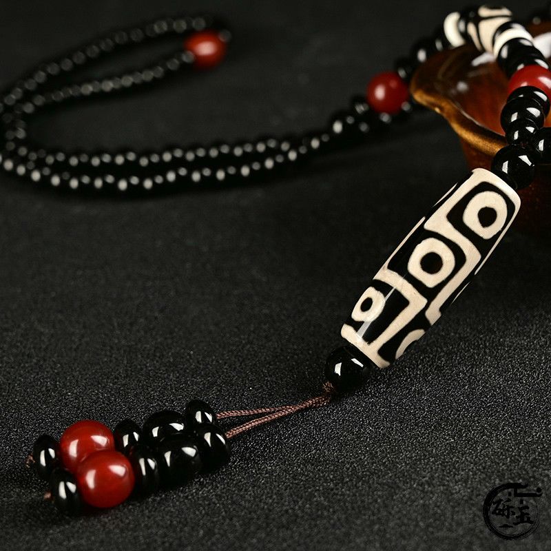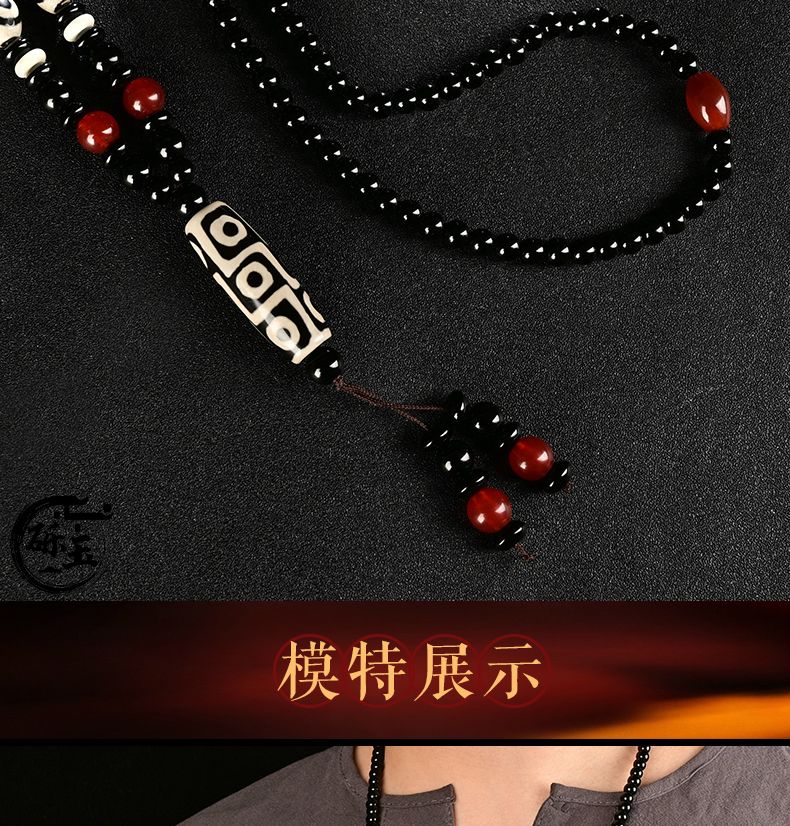 西藏古法黑白九眼天珠附证书玛瑙玉石项链男女款毛衣链潮吊坠饰品
