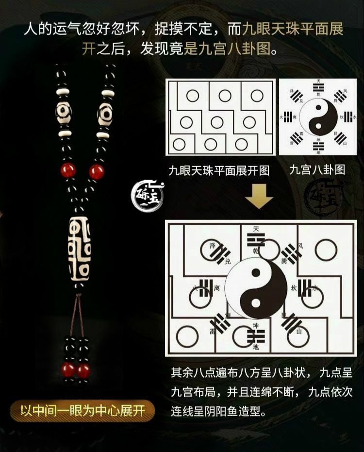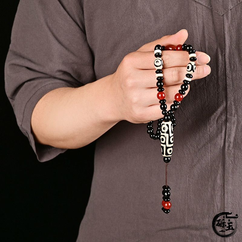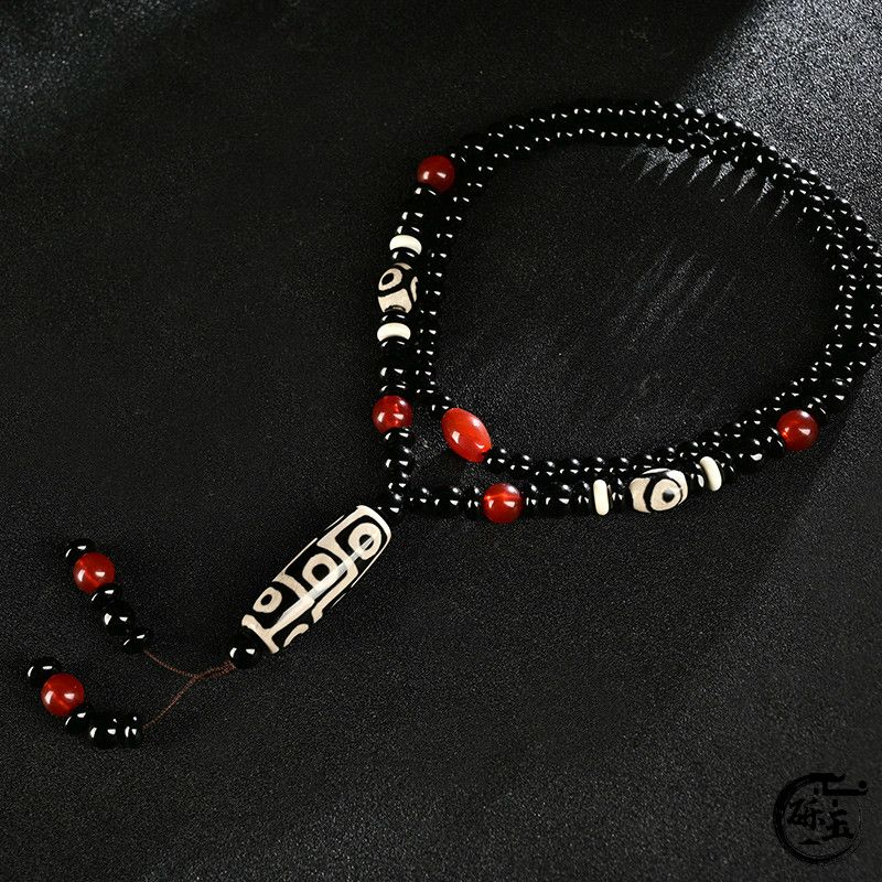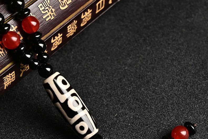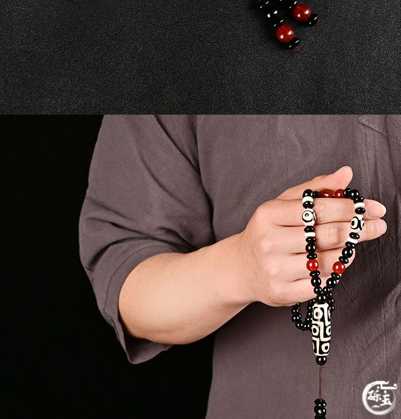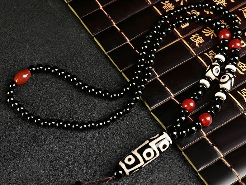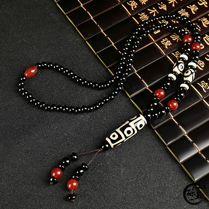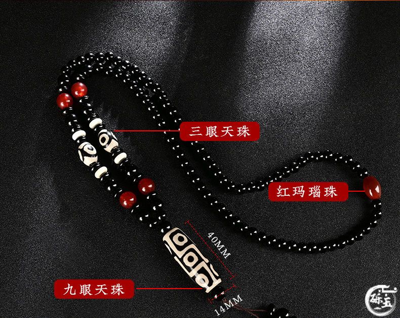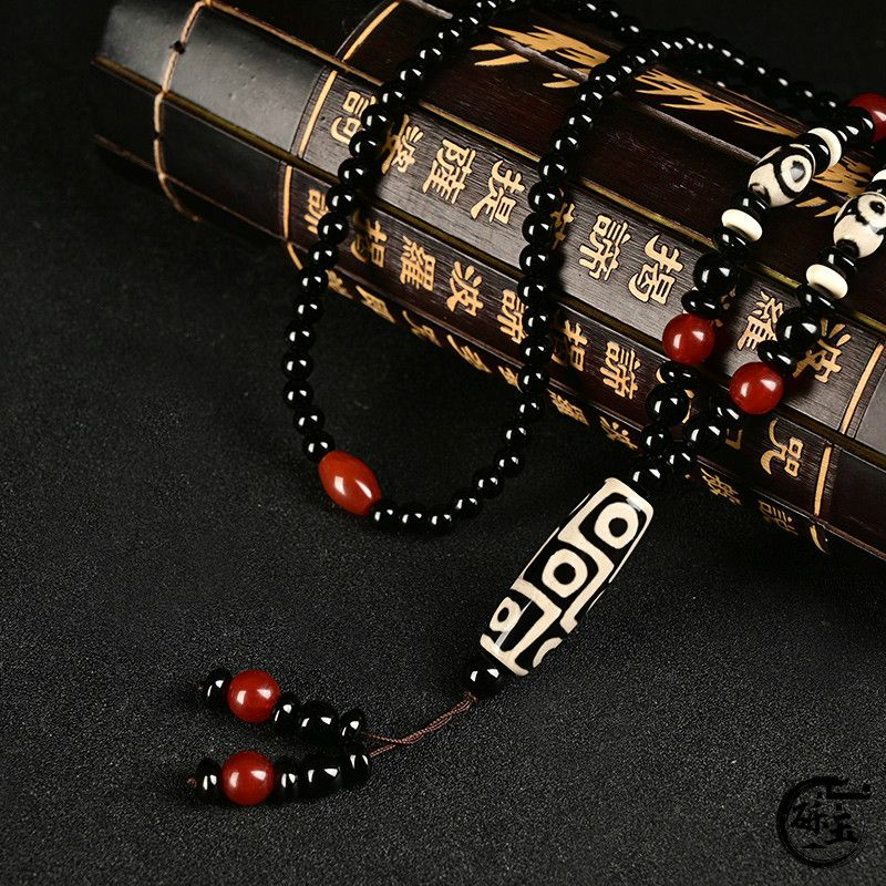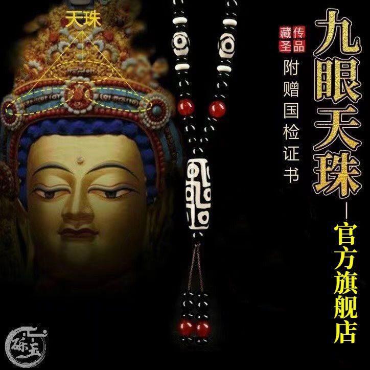 西藏古法黑白九眼天珠附证书玛瑙玉石项链男女款毛衣链潮吊坠饰品