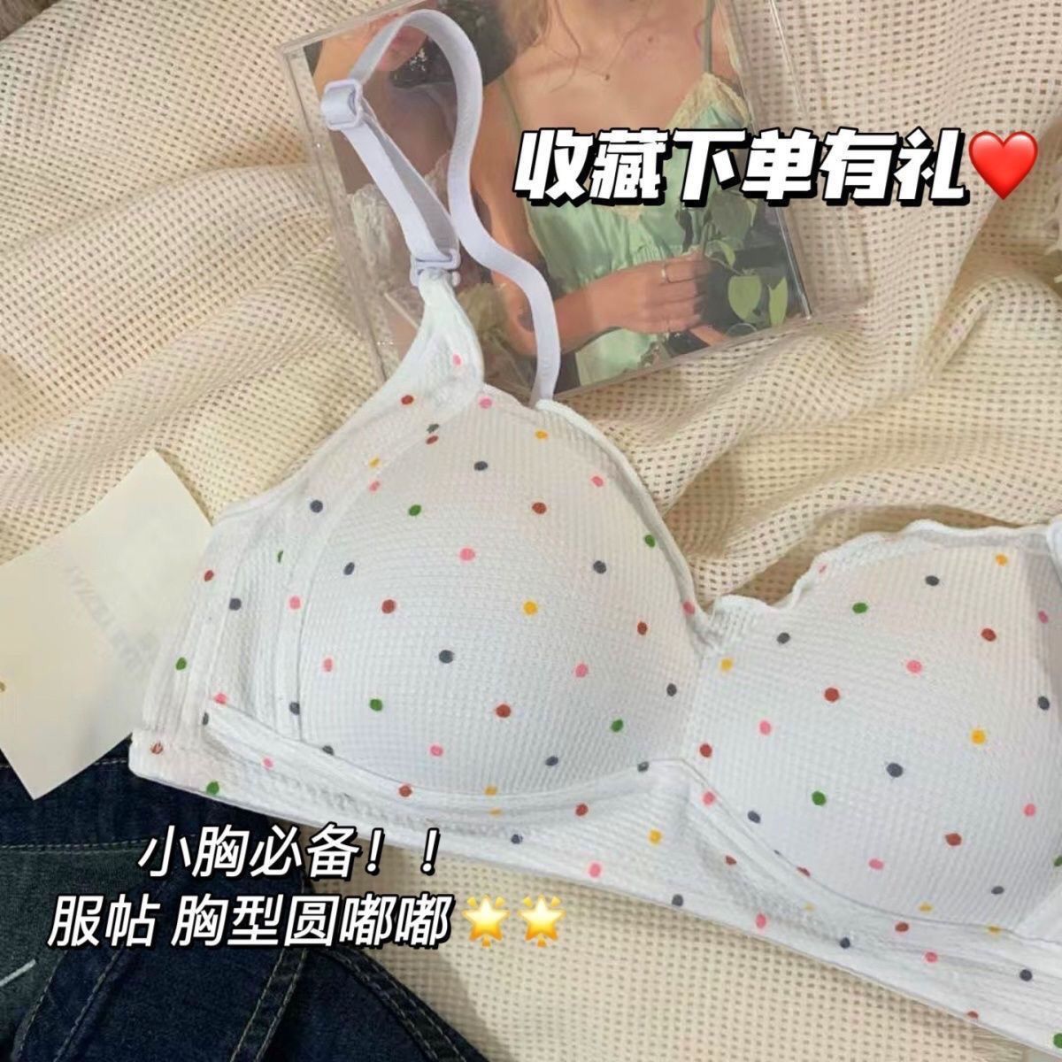 日系甜美少女内衣小胸聚拢高中学生无钢圈可爱防下垂套装薄款文胸