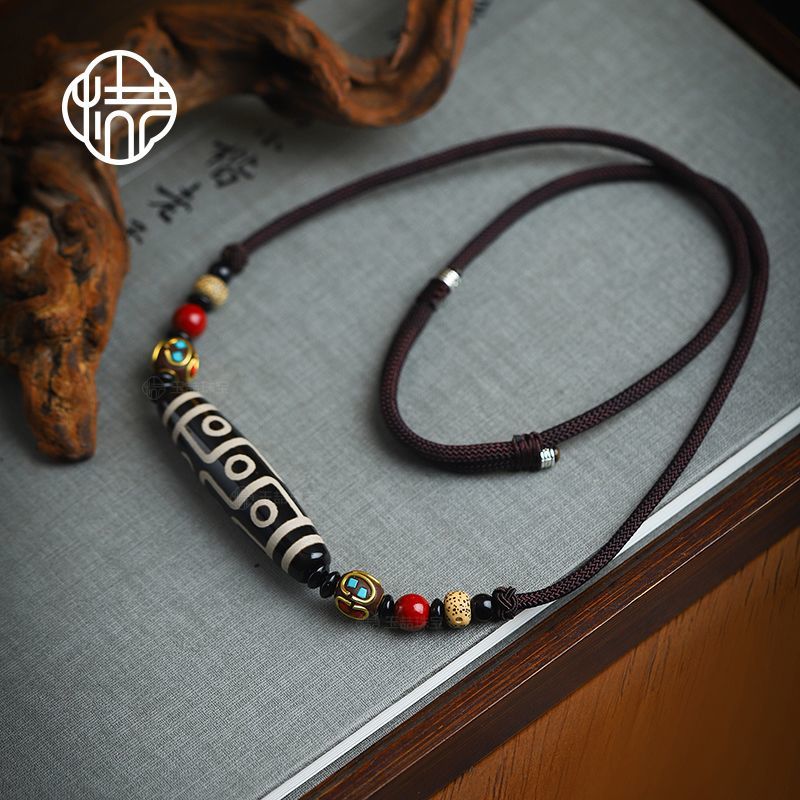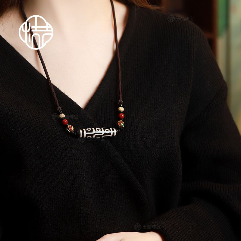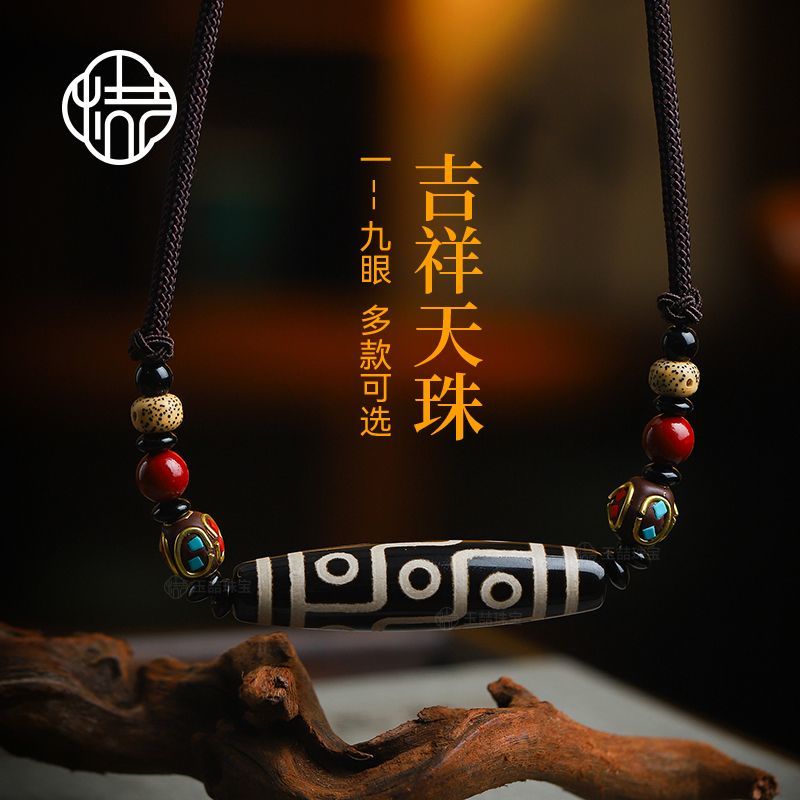 西藏九眼天珠玛瑙天然真品多宝配饰横穿项链吊坠男女情侣毛衣链长