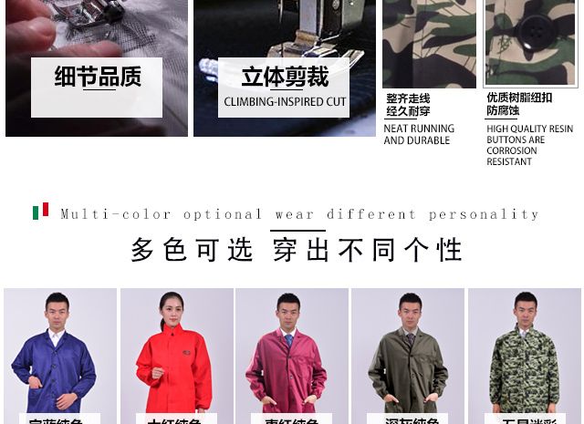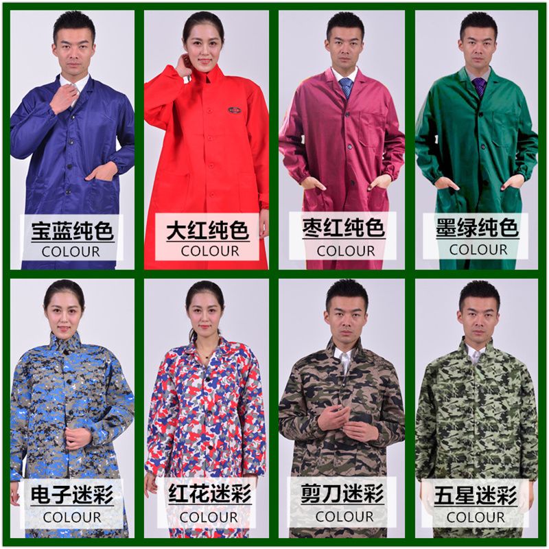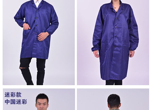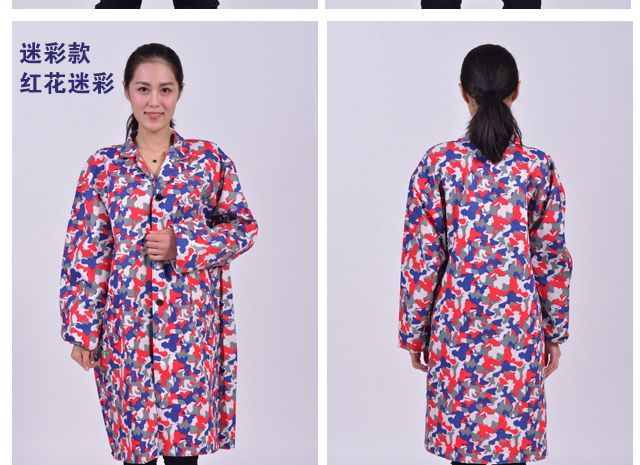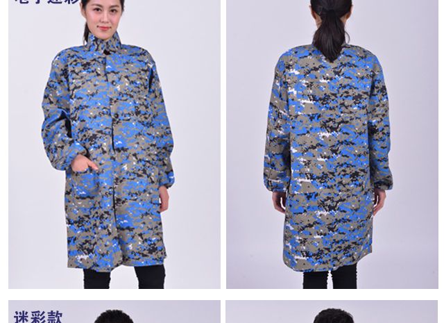 蓝大褂工作服迷彩大褂男女仓管养殖长款搬运劳保围腰工作防尘罩衣