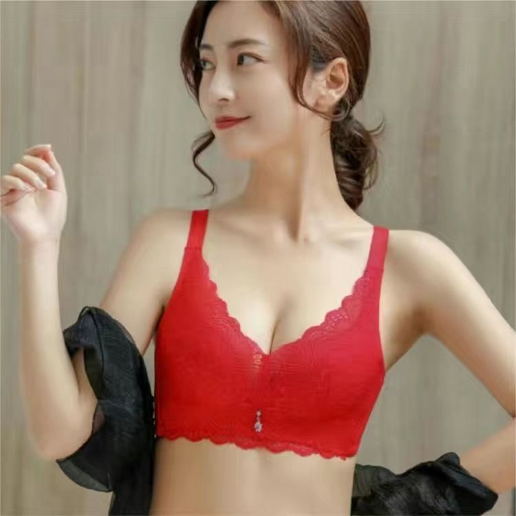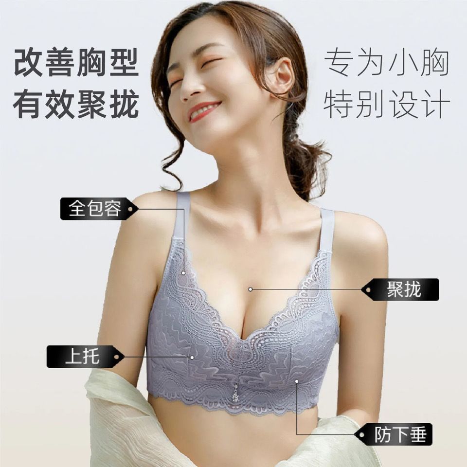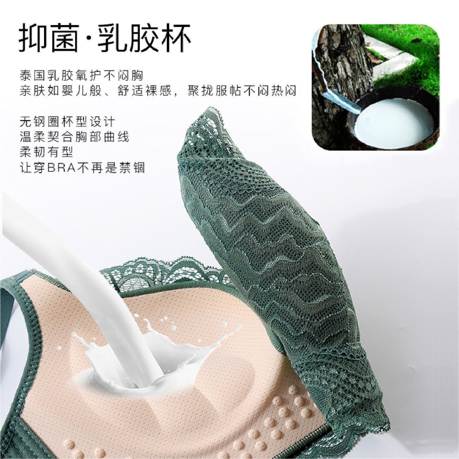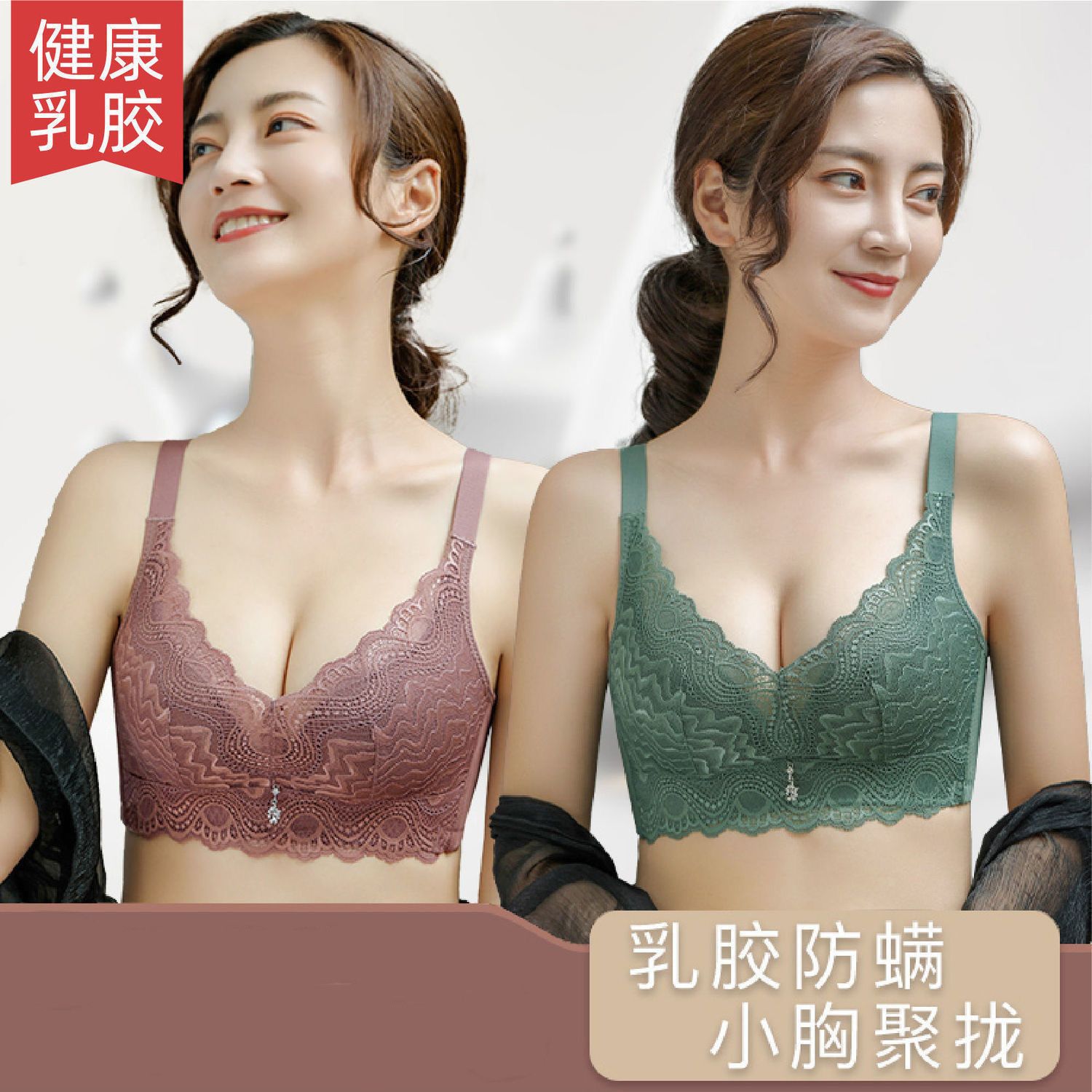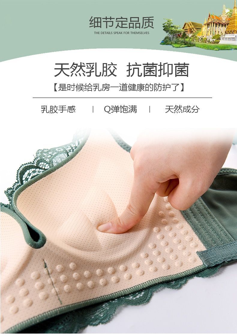 泰国乳胶性感内衣女无痕无钢圈上托小胸聚拢蕾丝防下垂文胸罩套装