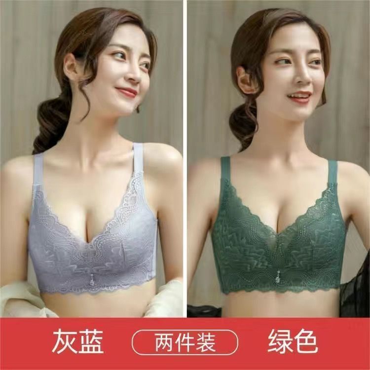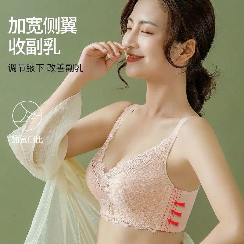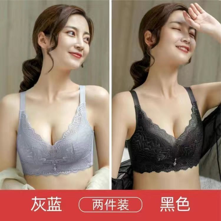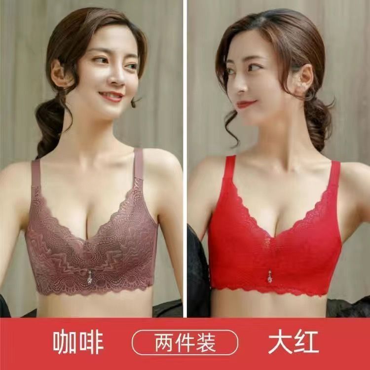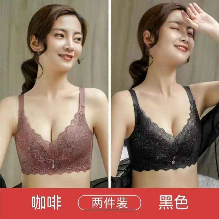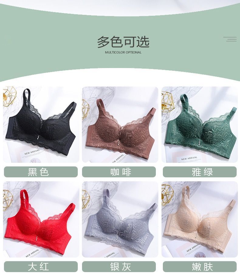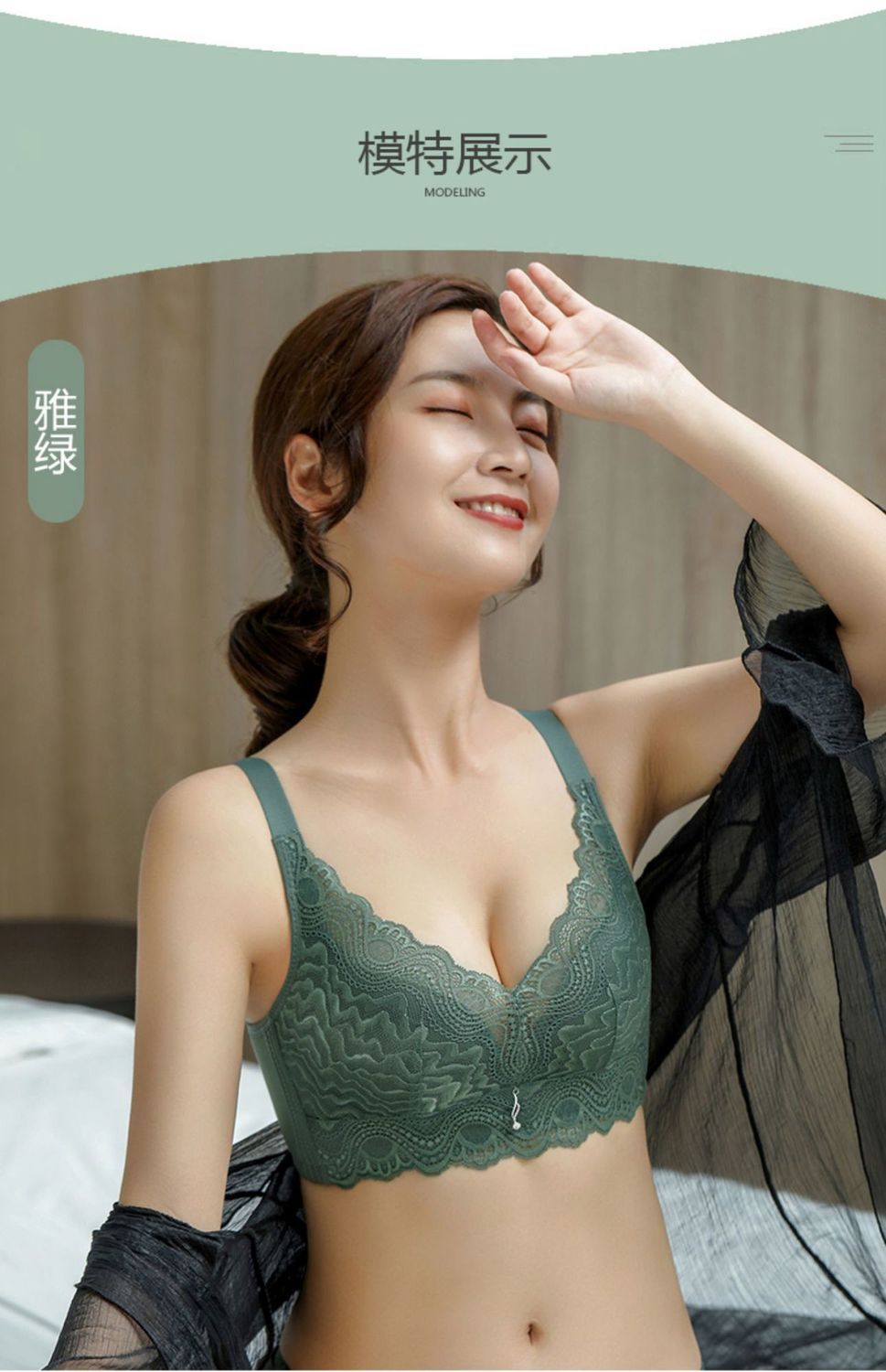 泰国乳胶性感内衣女无痕无钢圈上托小胸聚拢蕾丝防下垂文胸罩套装