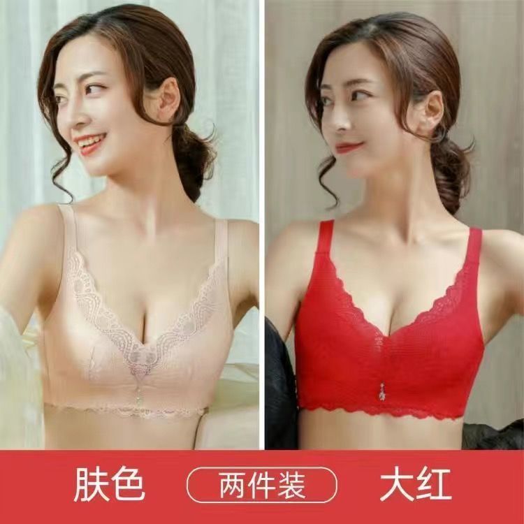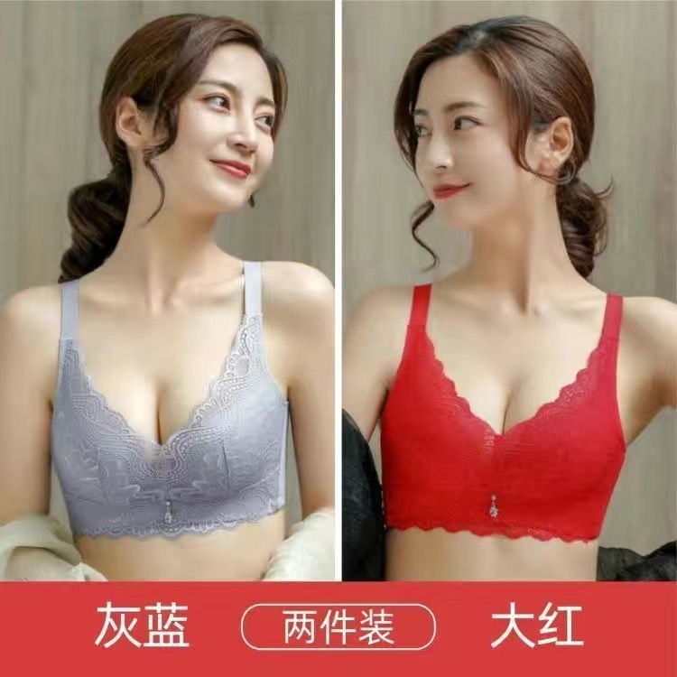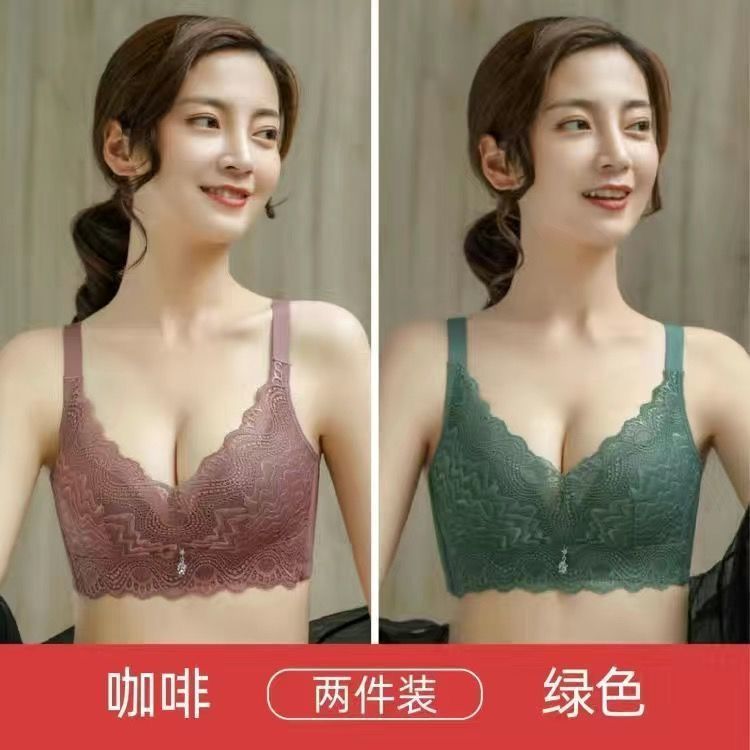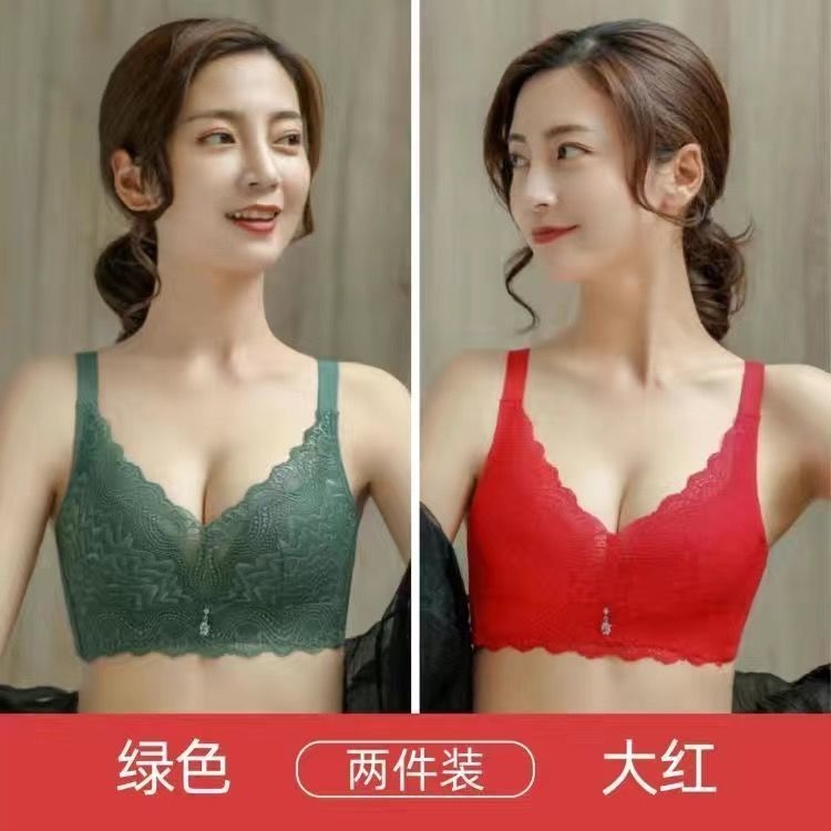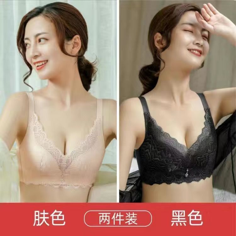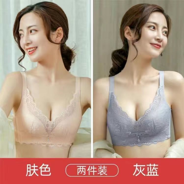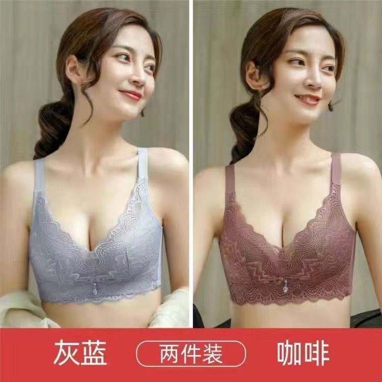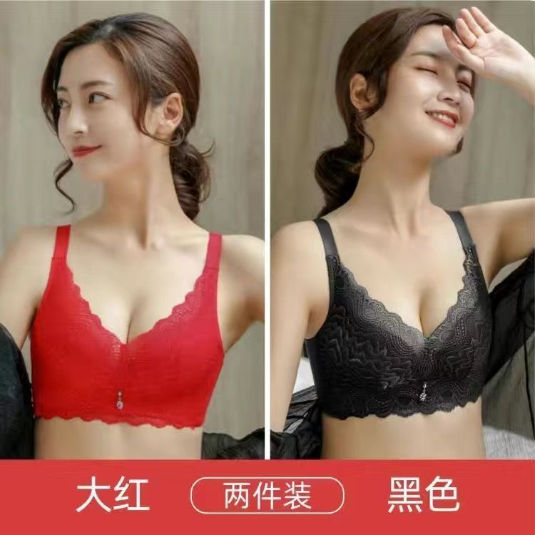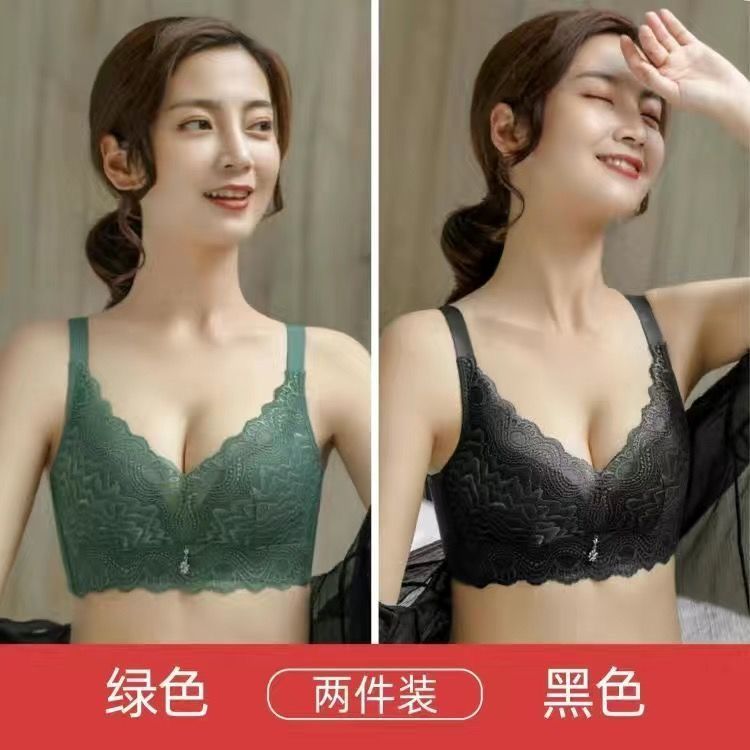泰国乳胶性感内衣女无痕无钢圈上托小胸聚拢蕾丝防下垂文胸罩套装
