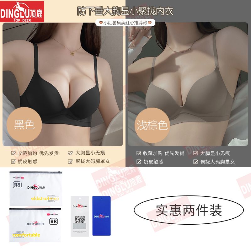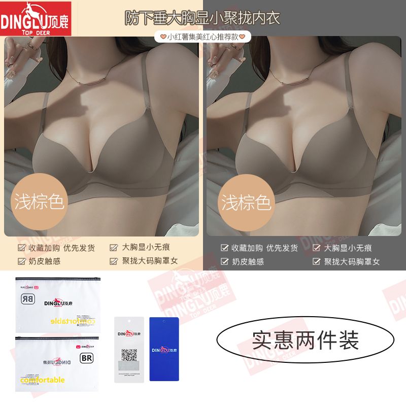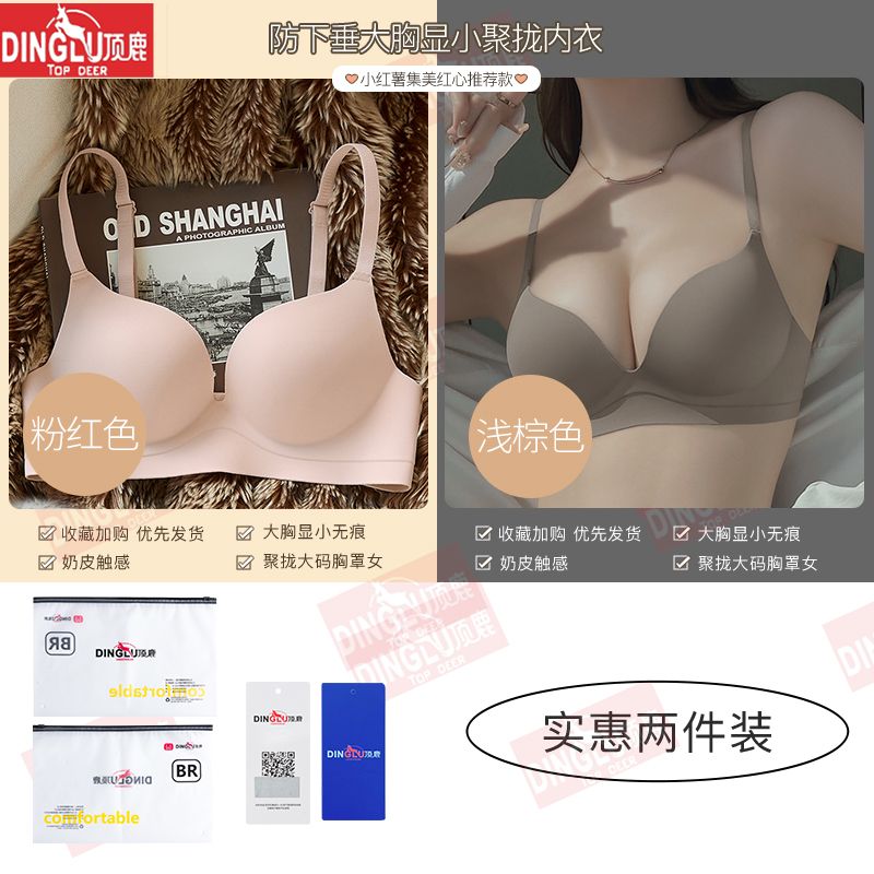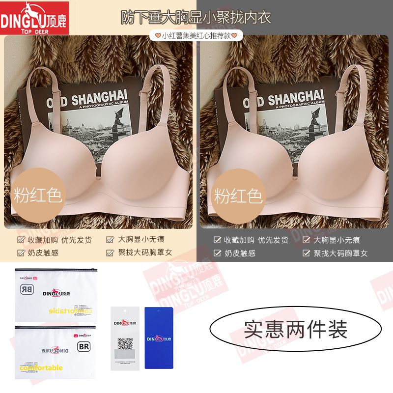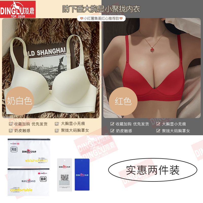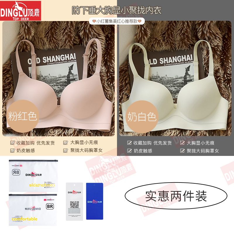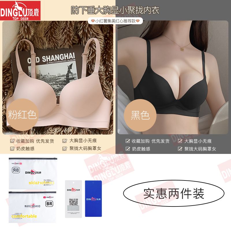 顶鹿无痕内衣女小胸聚拢显大无钢圈防下垂光面女士薄款夏季文胸罩