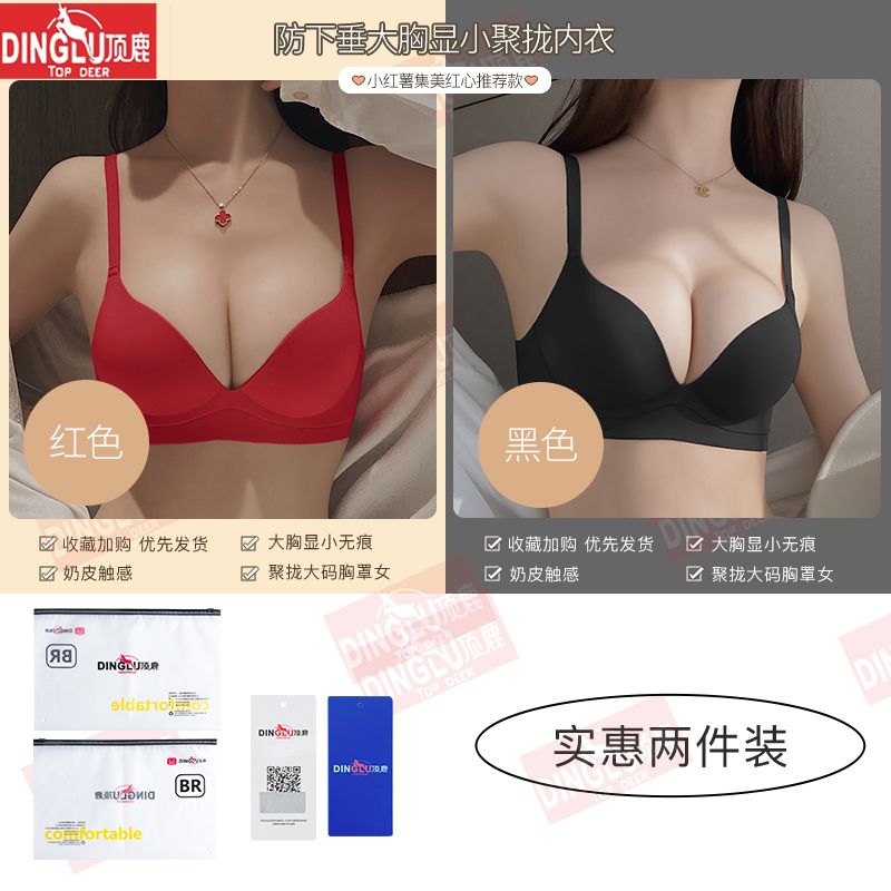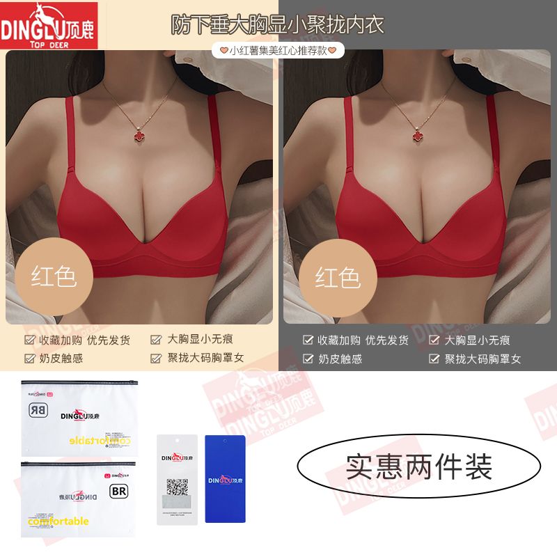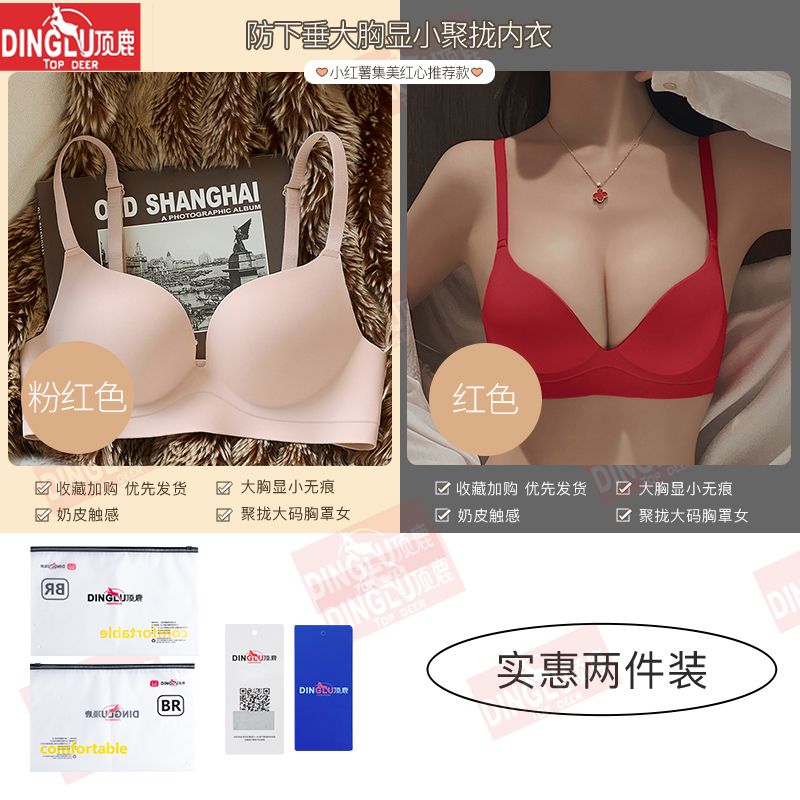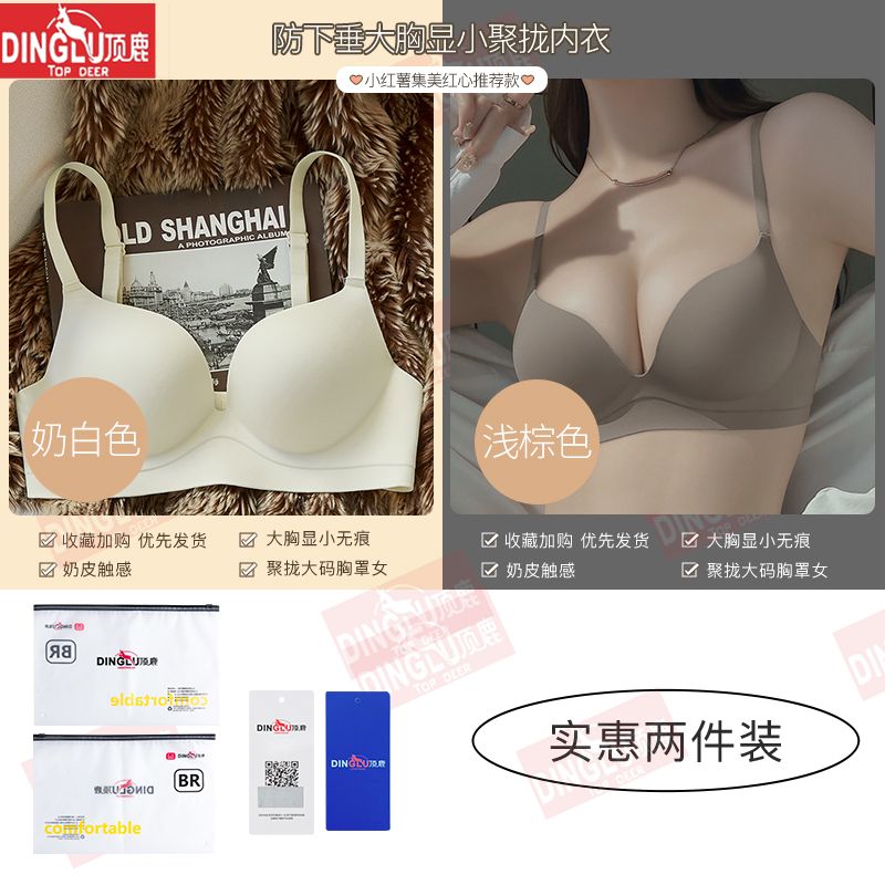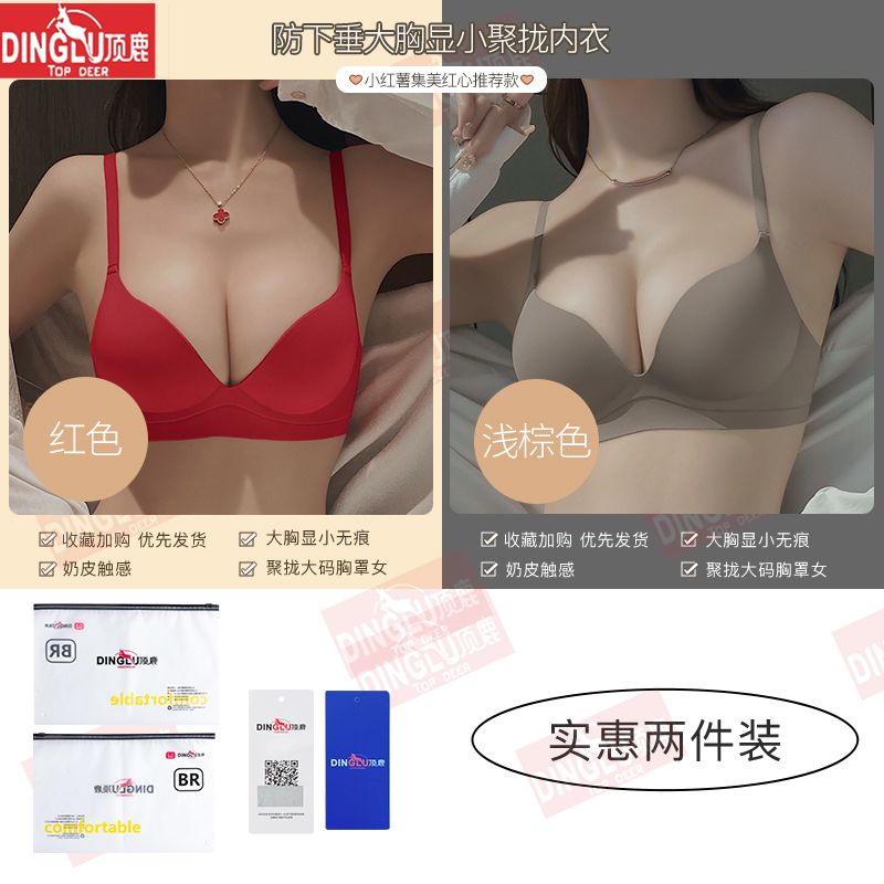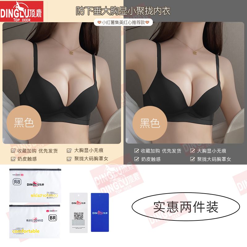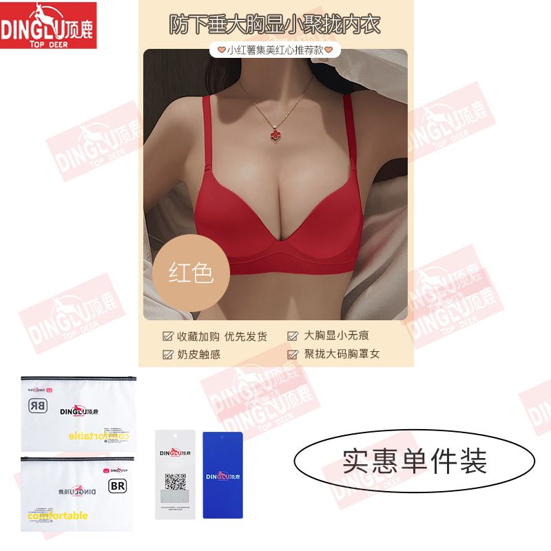 顶鹿无痕内衣女小胸聚拢显大无钢圈防下垂光面女士薄款夏季文胸罩