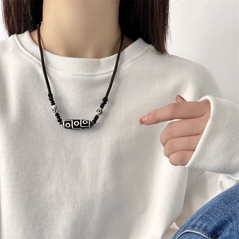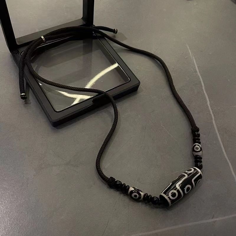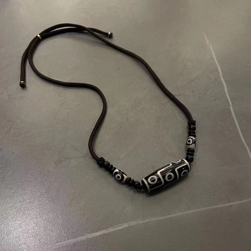 新中式民族风陶瓷九眼天珠男生项链编织绳女小众设计嘻哈毛衣链