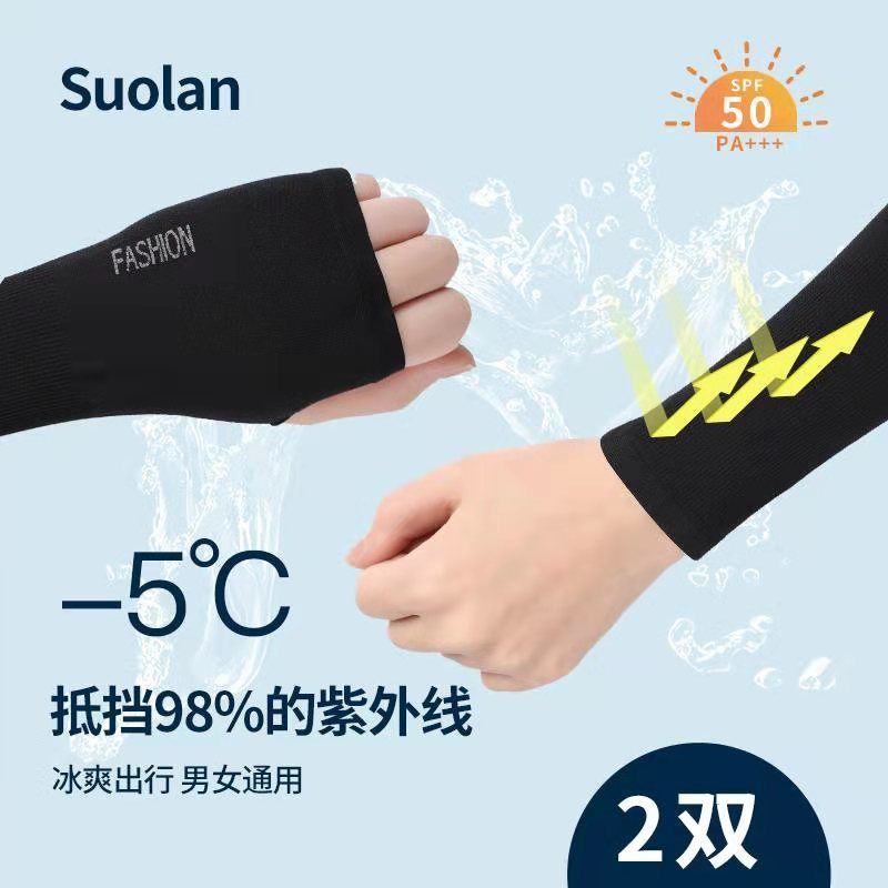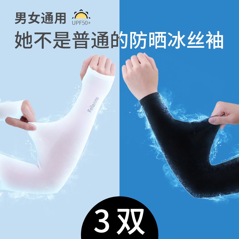 夏季冰袖男女薄加长款冰丝防晒袖套女男士手套开车护臂学生套袖女