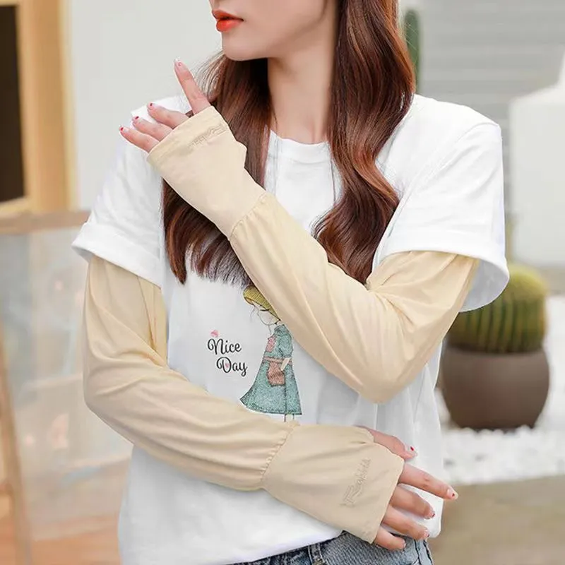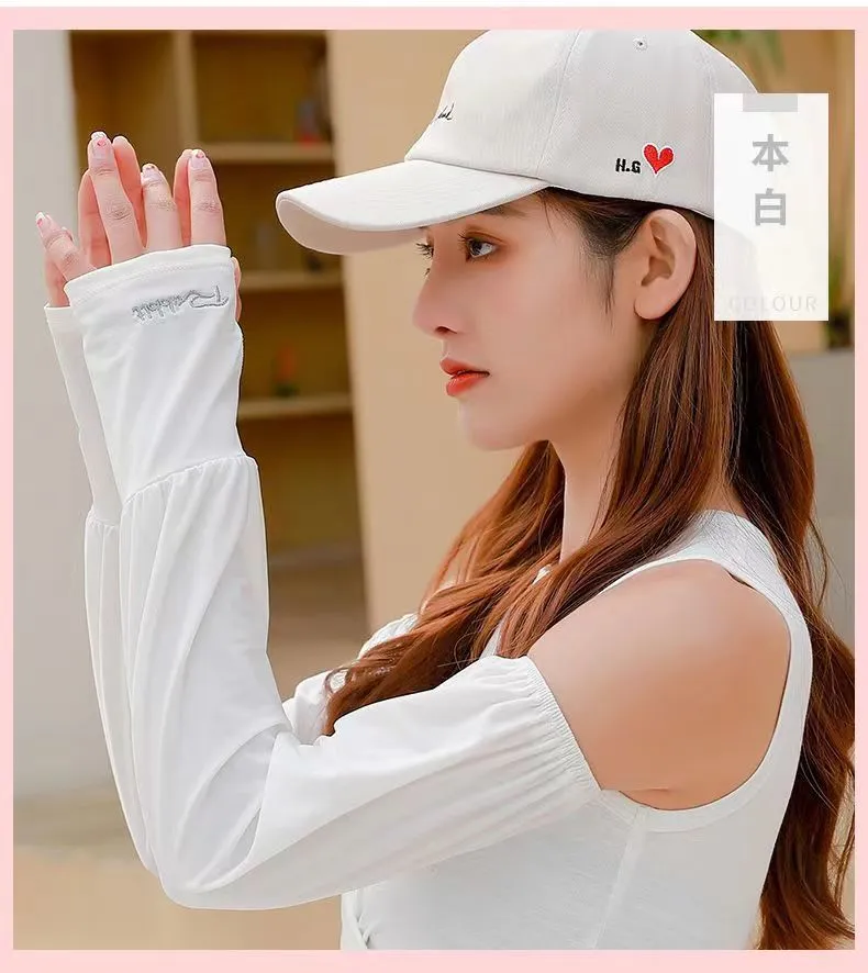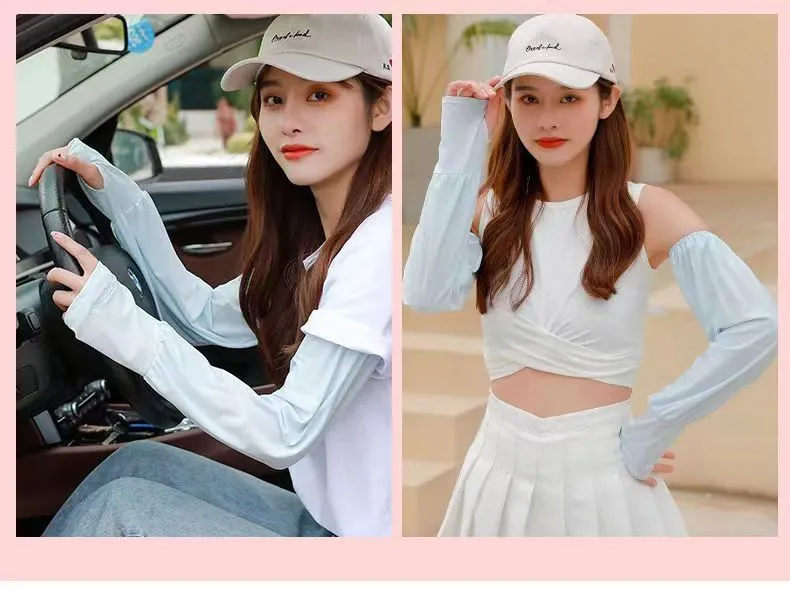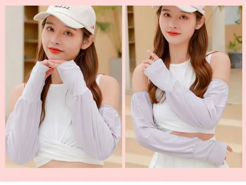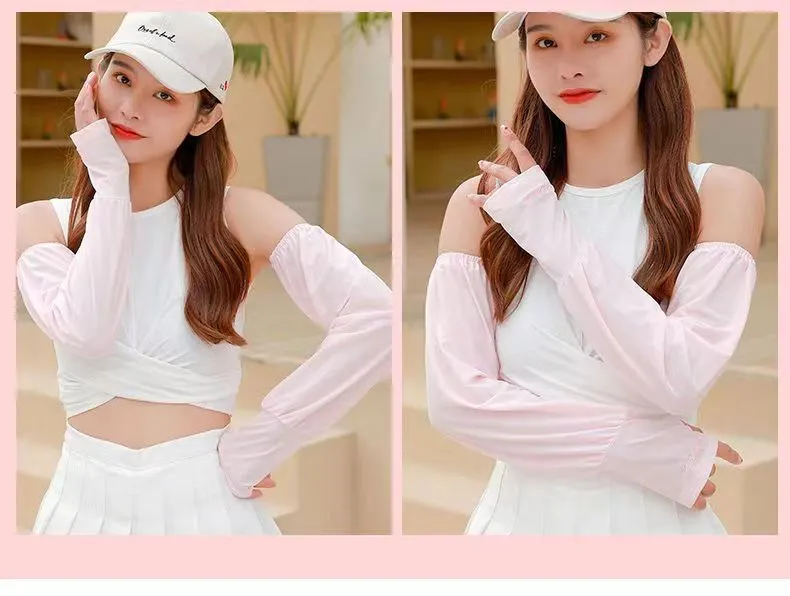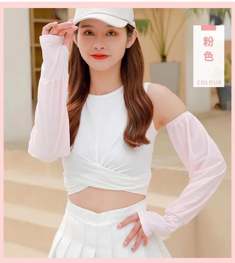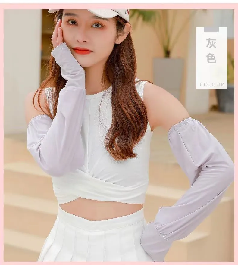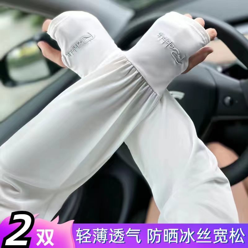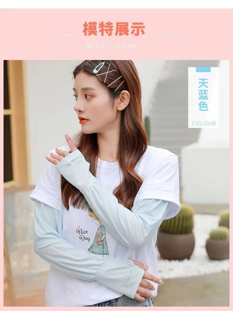夏季男女冰丝套袖冰袖防晒袖套防紫外线冰爽薄加长款护手加长袖套