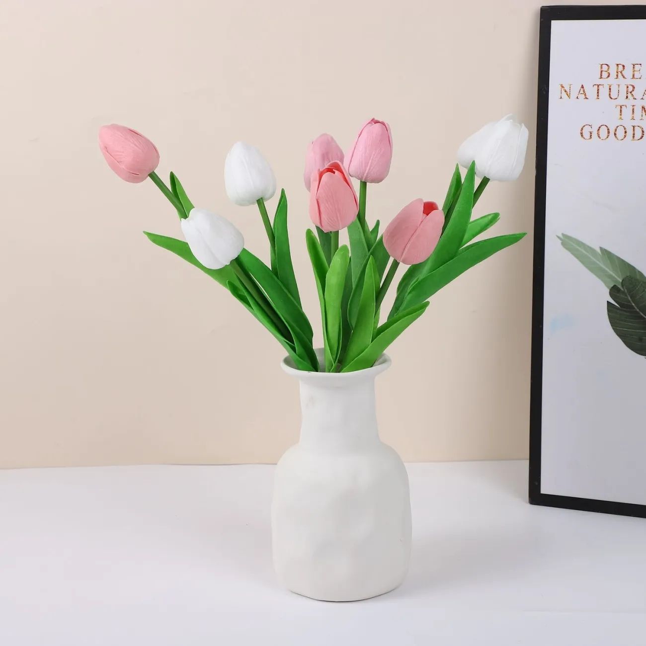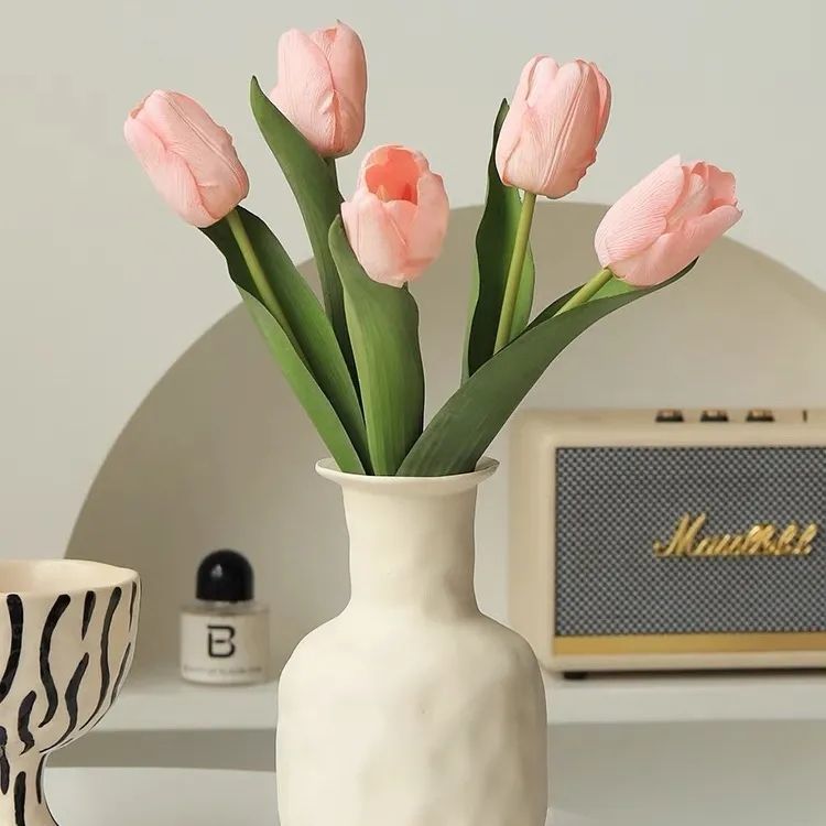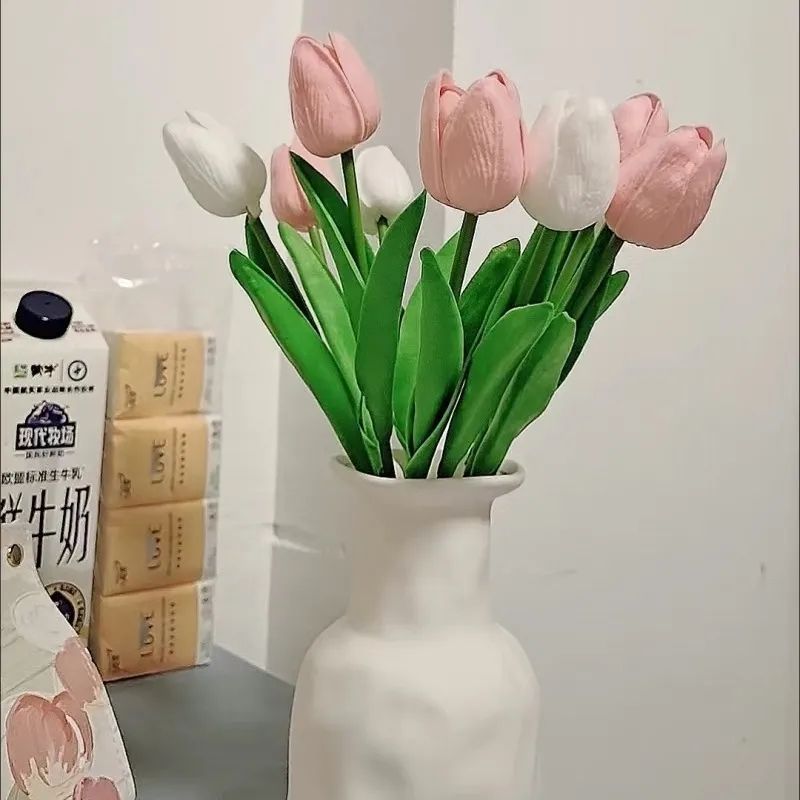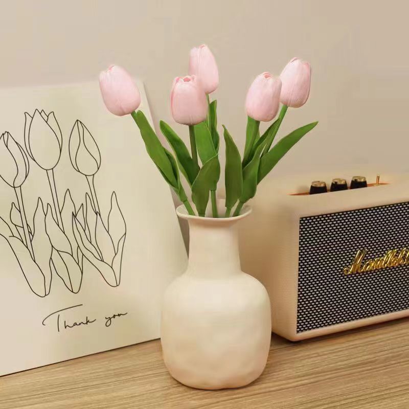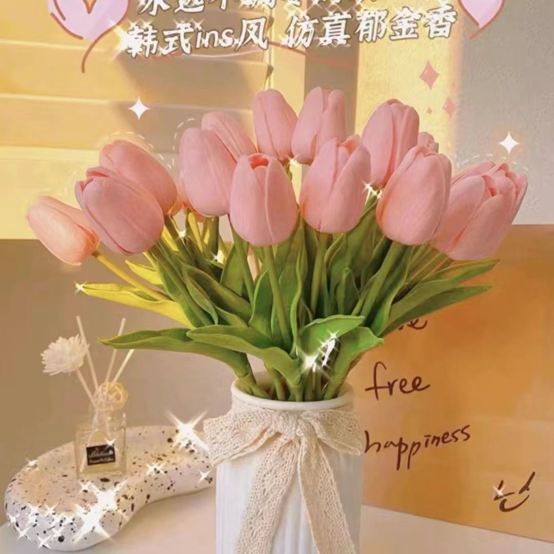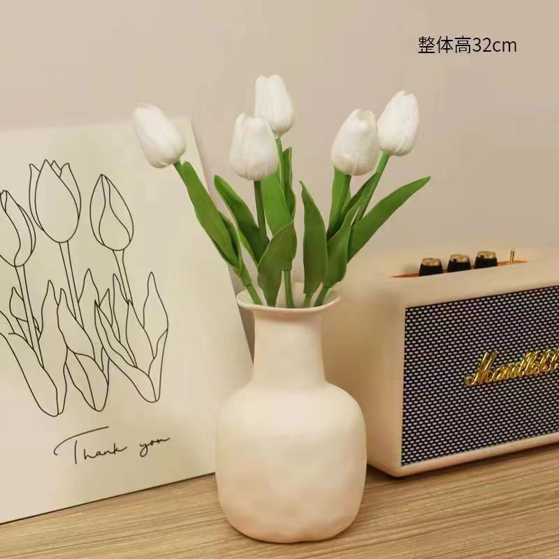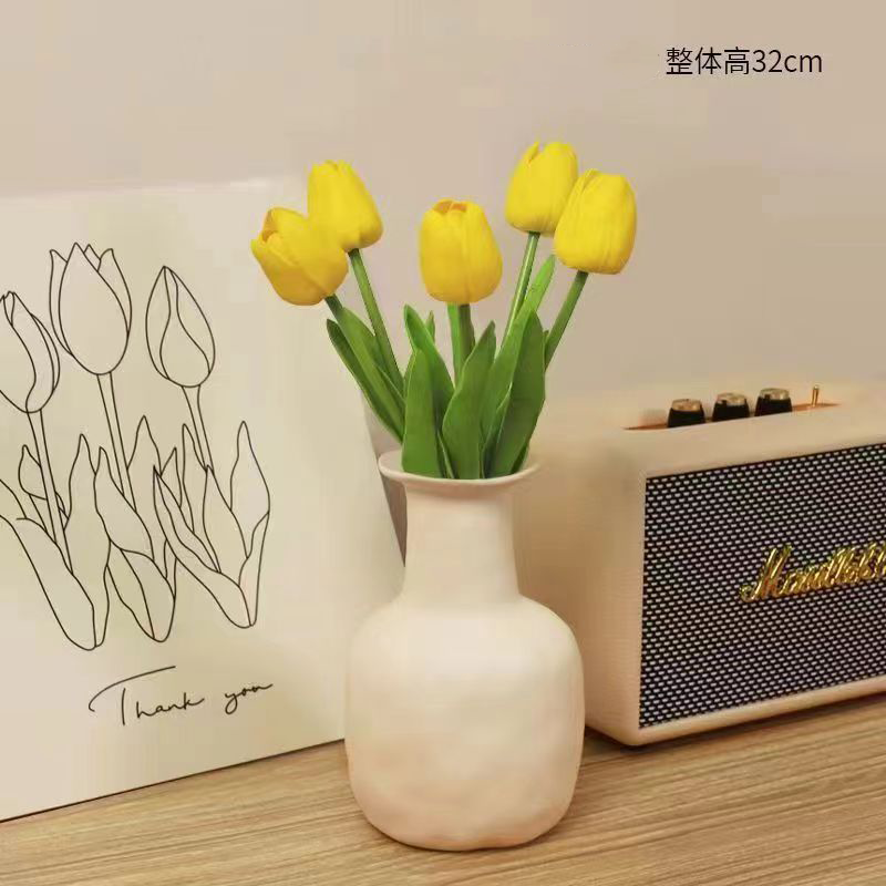 ins风郁金香仿真花带花瓶高档pu假花摆设餐桌客厅摆件家居装饰
