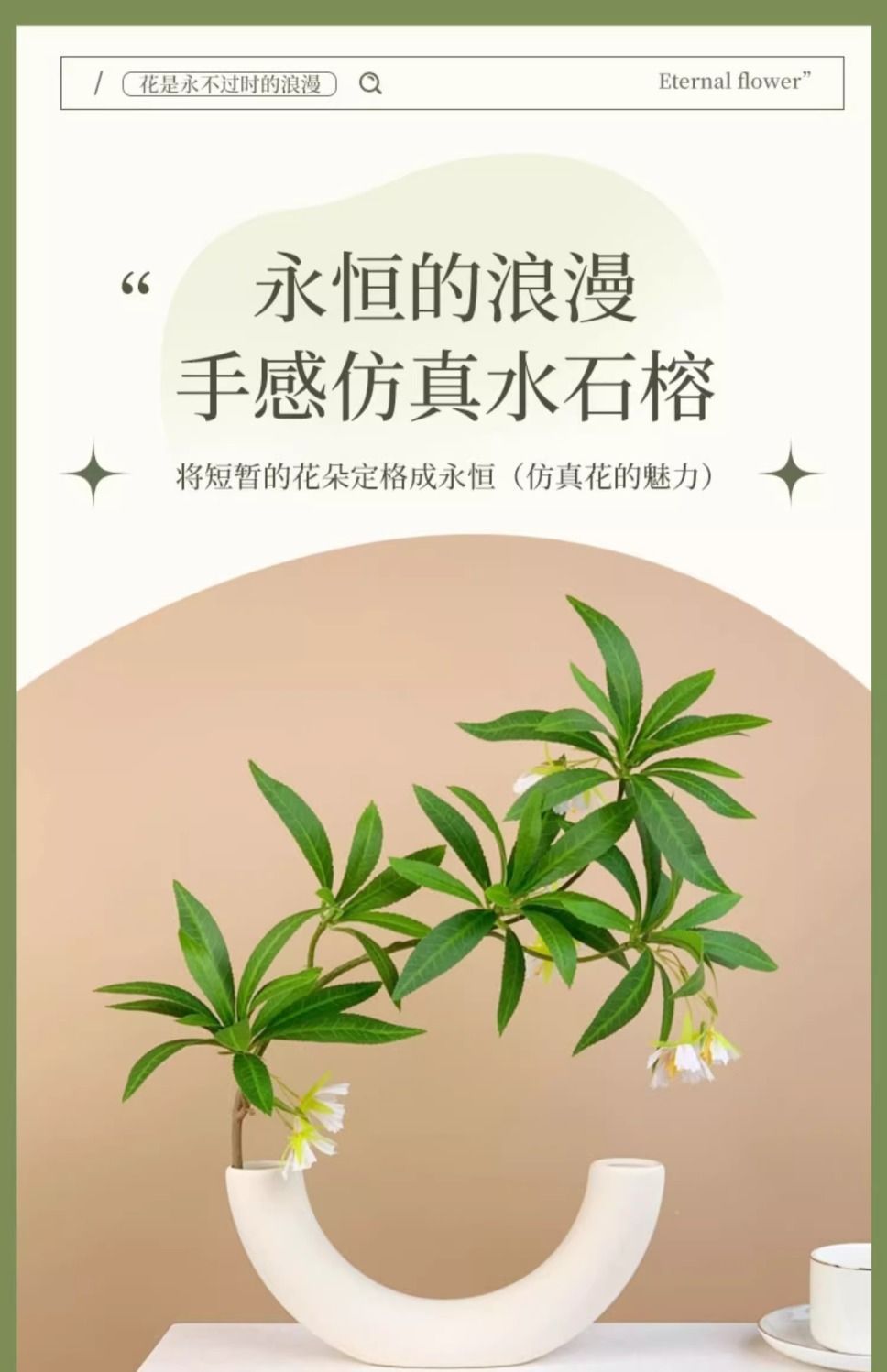 北欧个性仿真花水石榕假花长枝水室内绿植装饰品造景客厅花束摆件