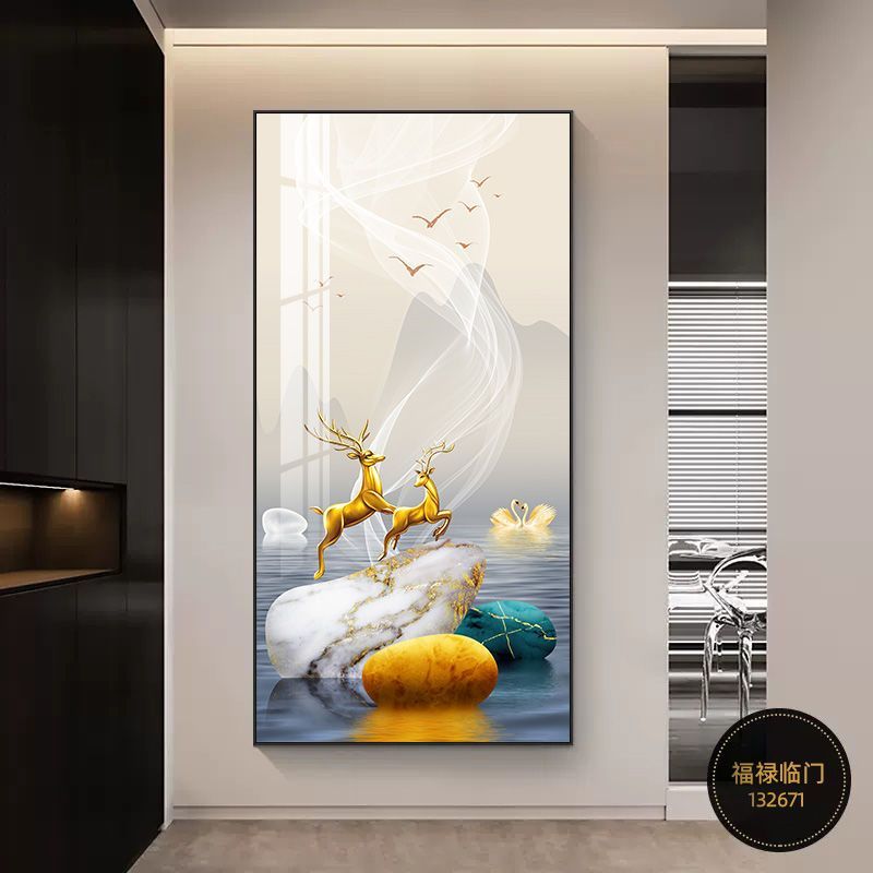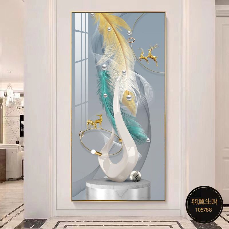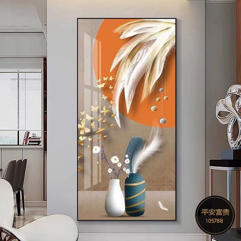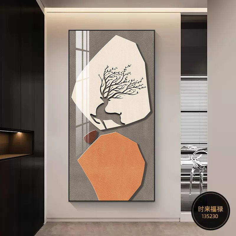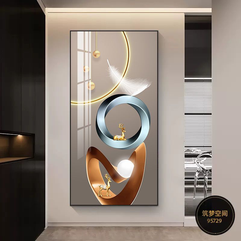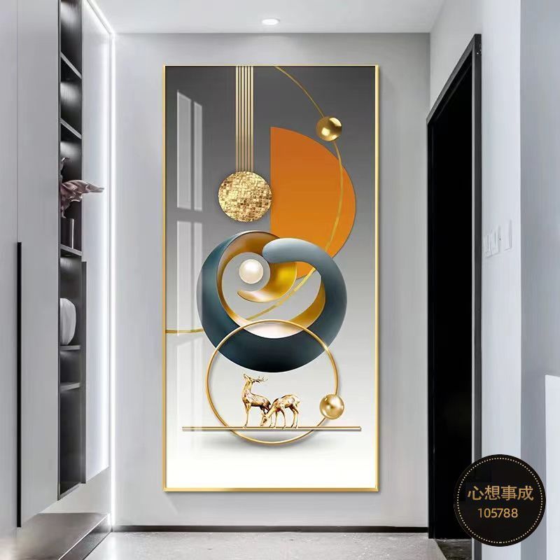 入户玄关装饰画现代轻奢走廊过道挂画竖版大气抽象客厅背景墙壁画