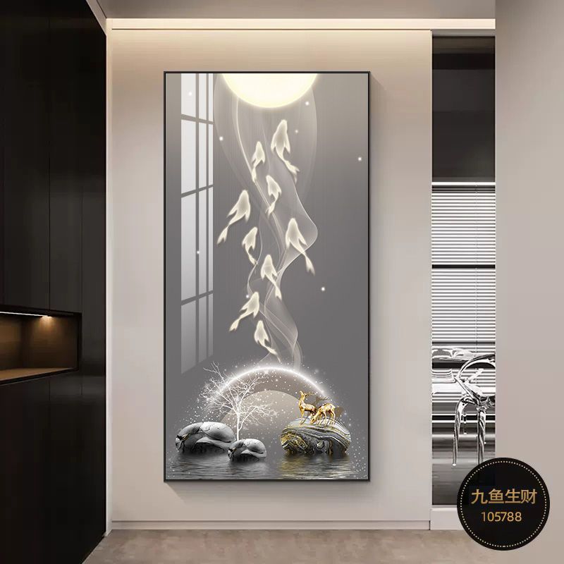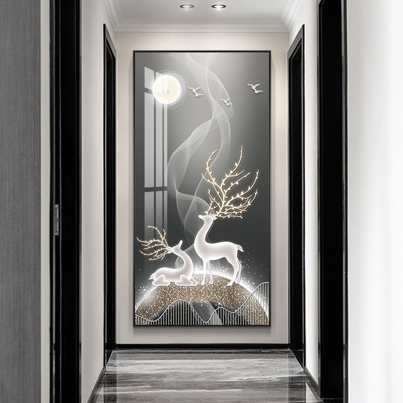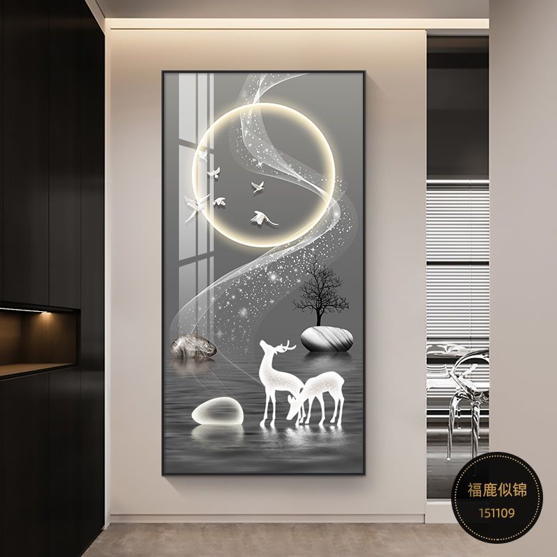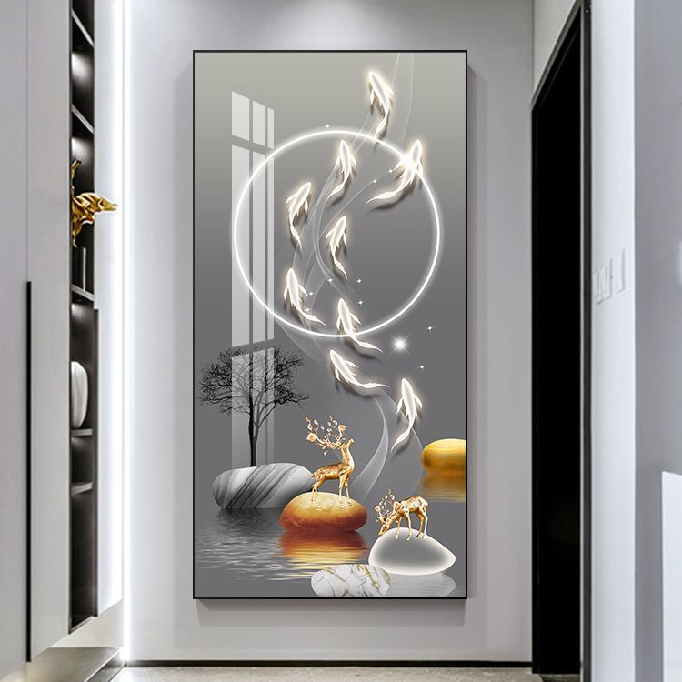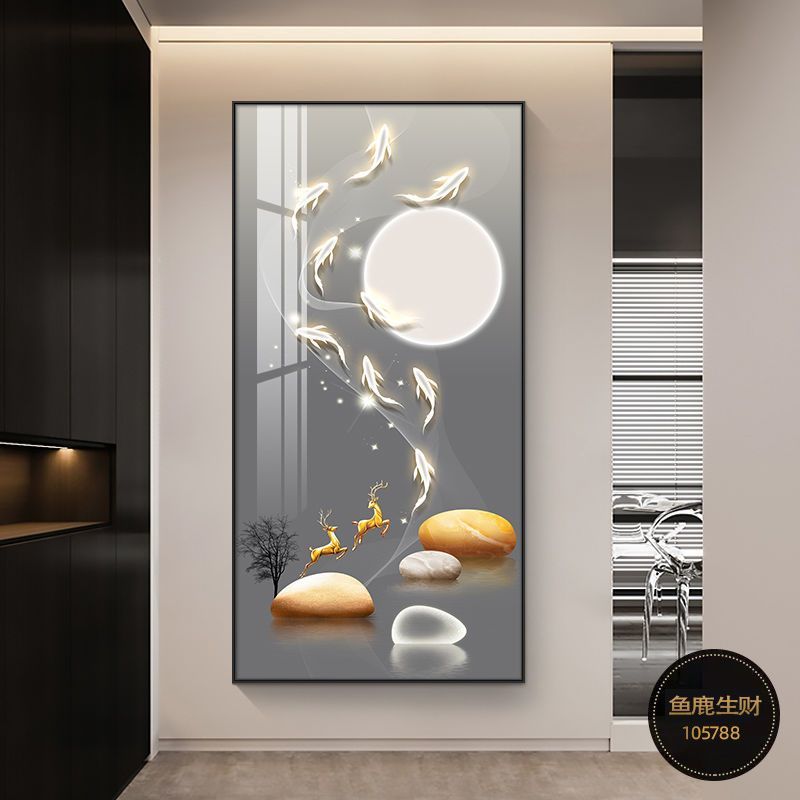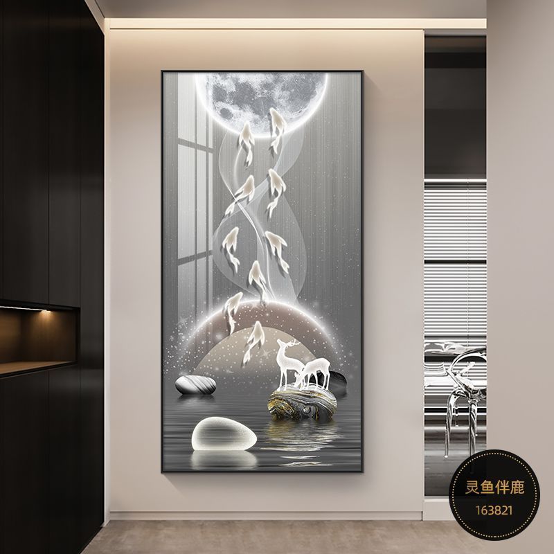 入户玄关装饰画现代轻奢走廊过道挂画竖版大气抽象客厅背景墙壁画