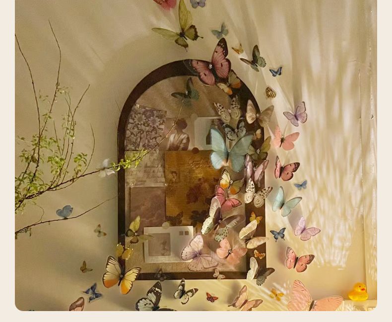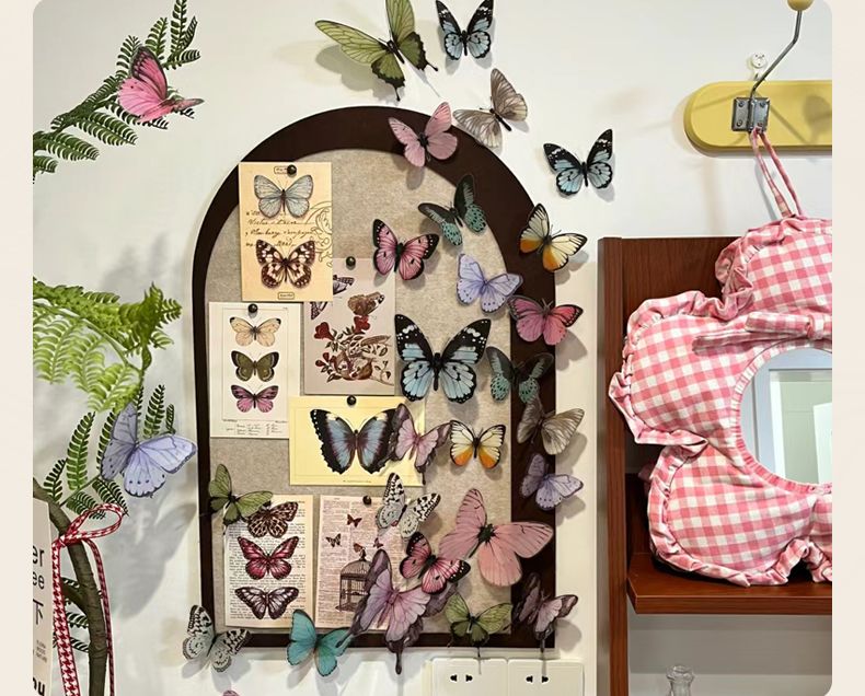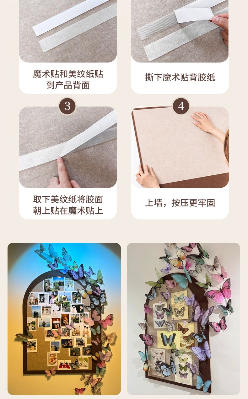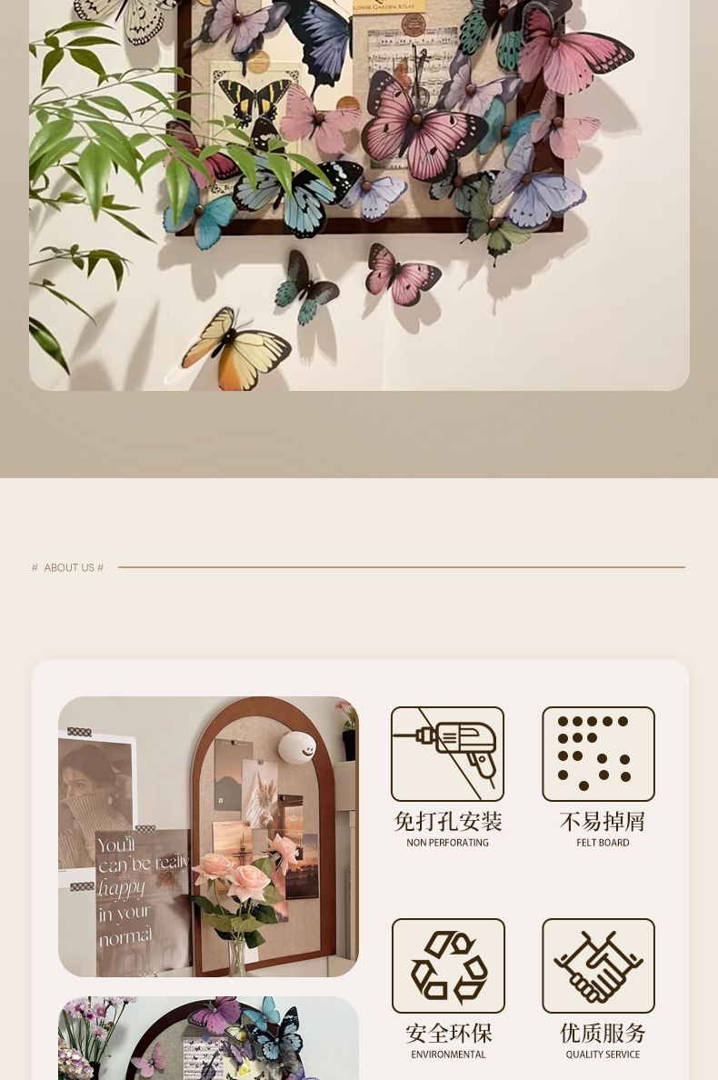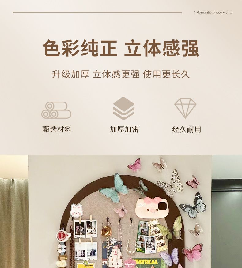 整套蝴蝶墙毛毡板照片墙自粘免打孔手工diy照片展示背景墙贴装饰