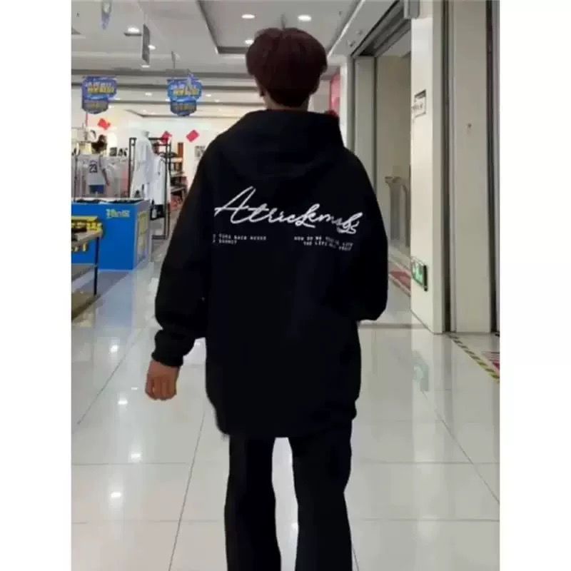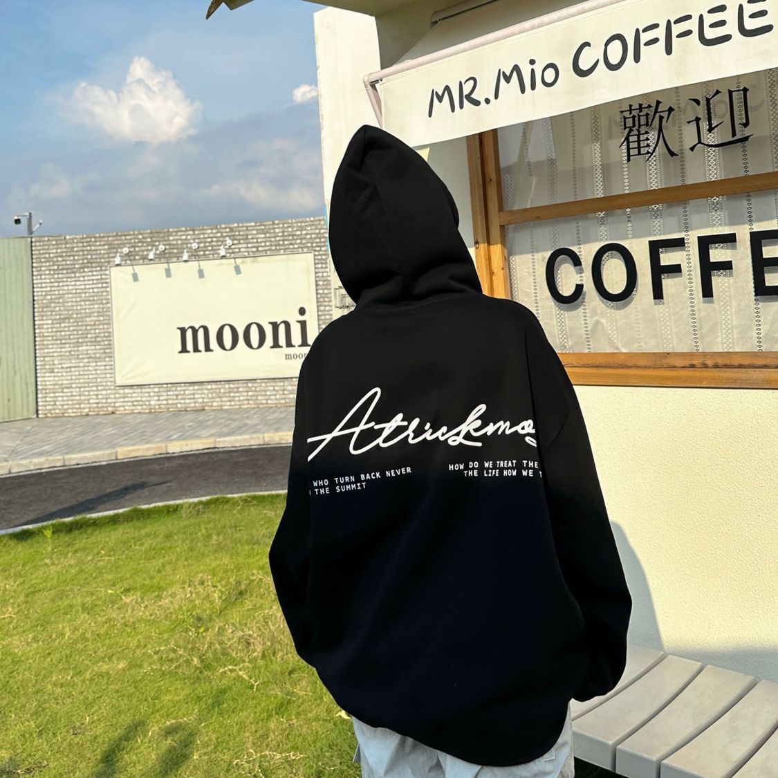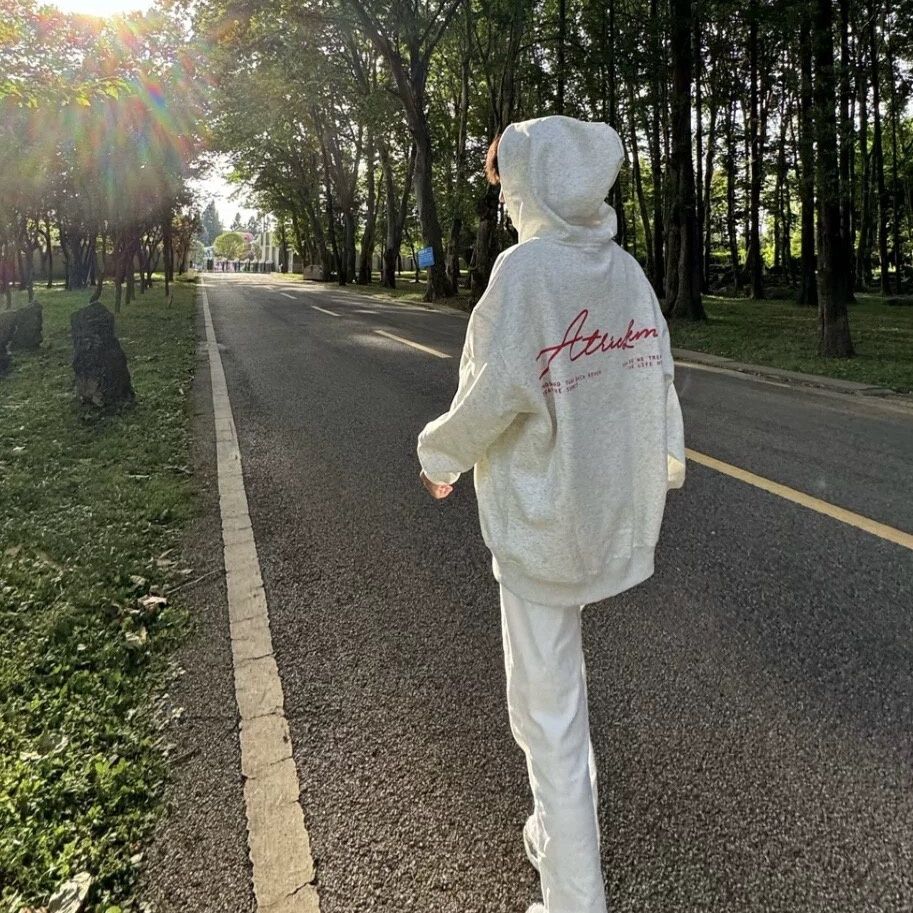 不起球白灰色美式高街oversize连帽卫衣男女秋冬季高级感百搭外套