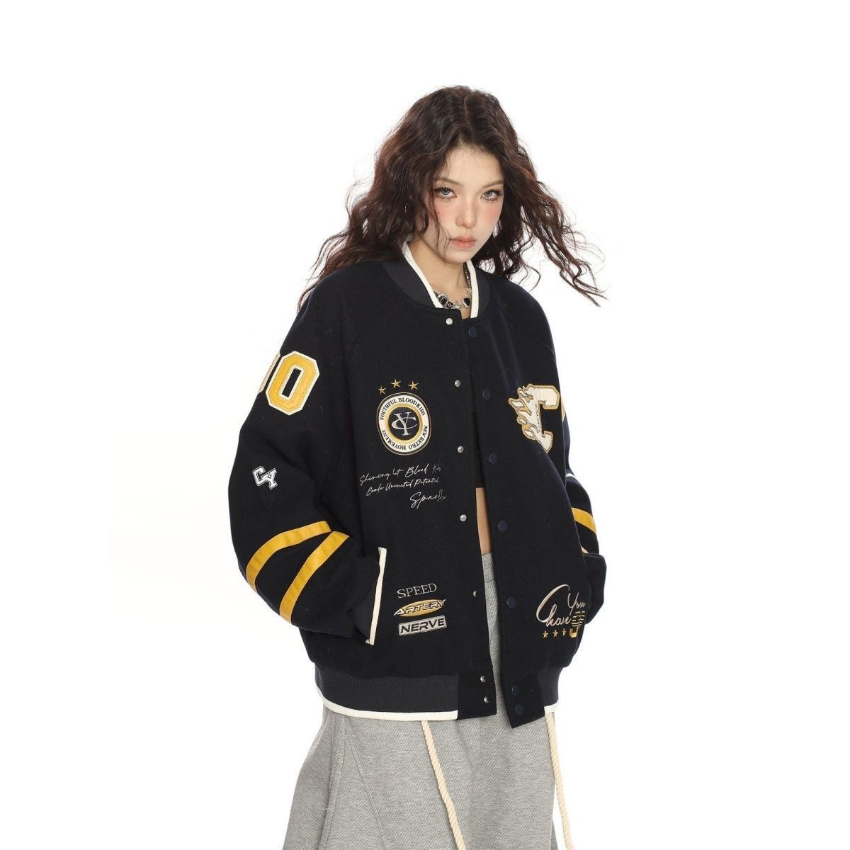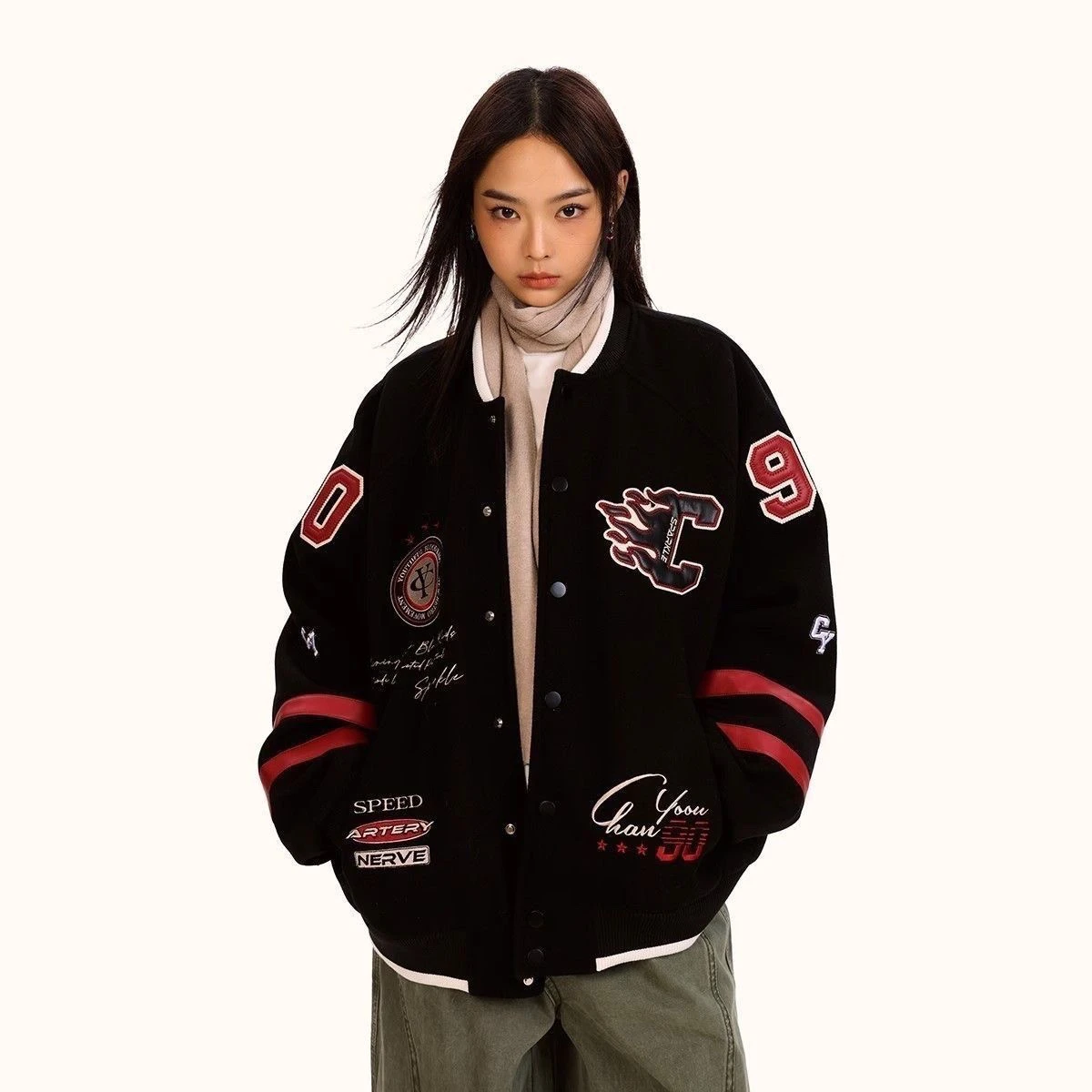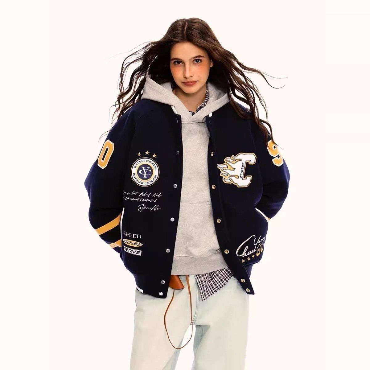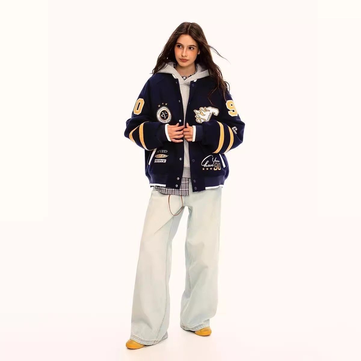 2025爆款美式复古刺绣棒球服外套男女重磅宽松休闲夹克春秋款潮牌