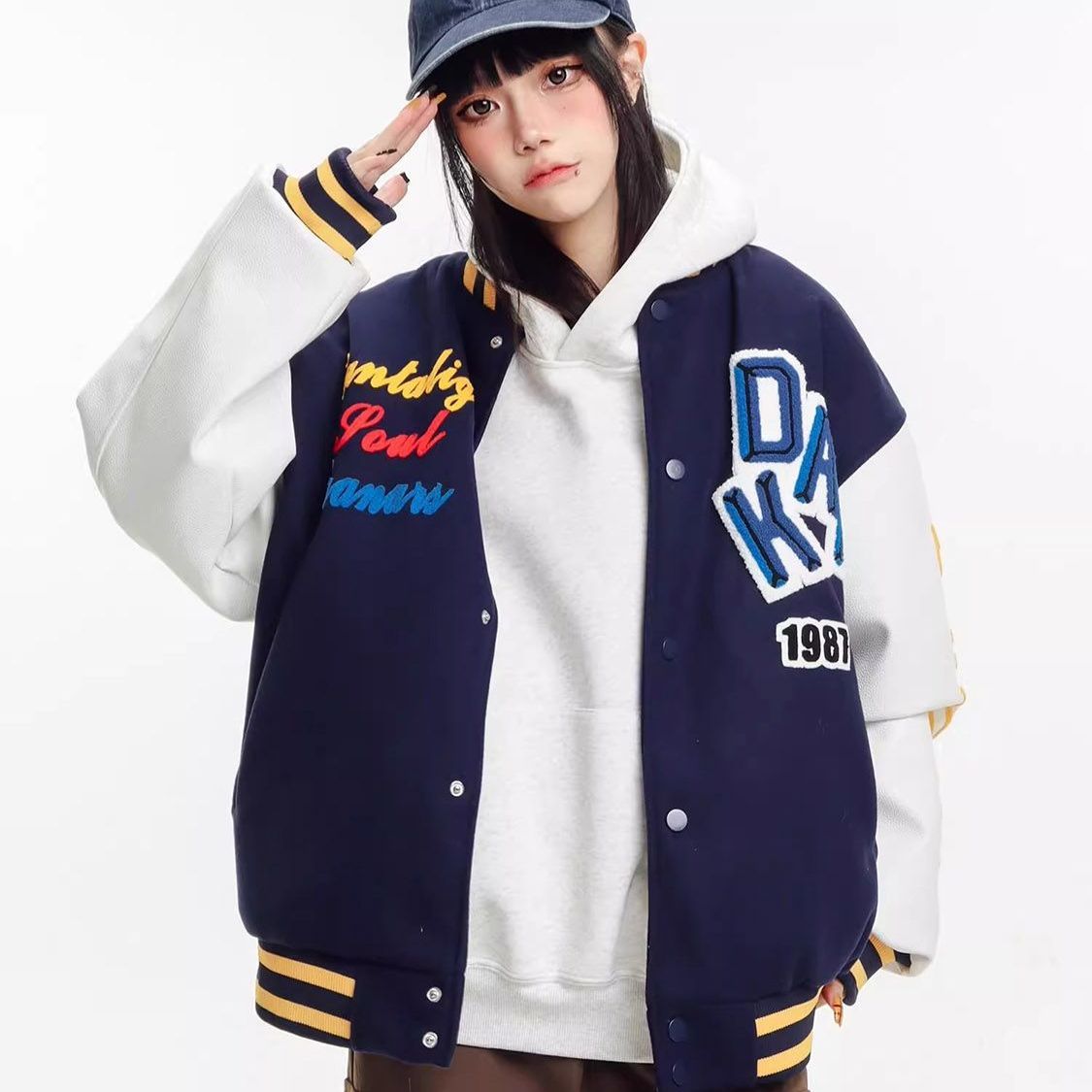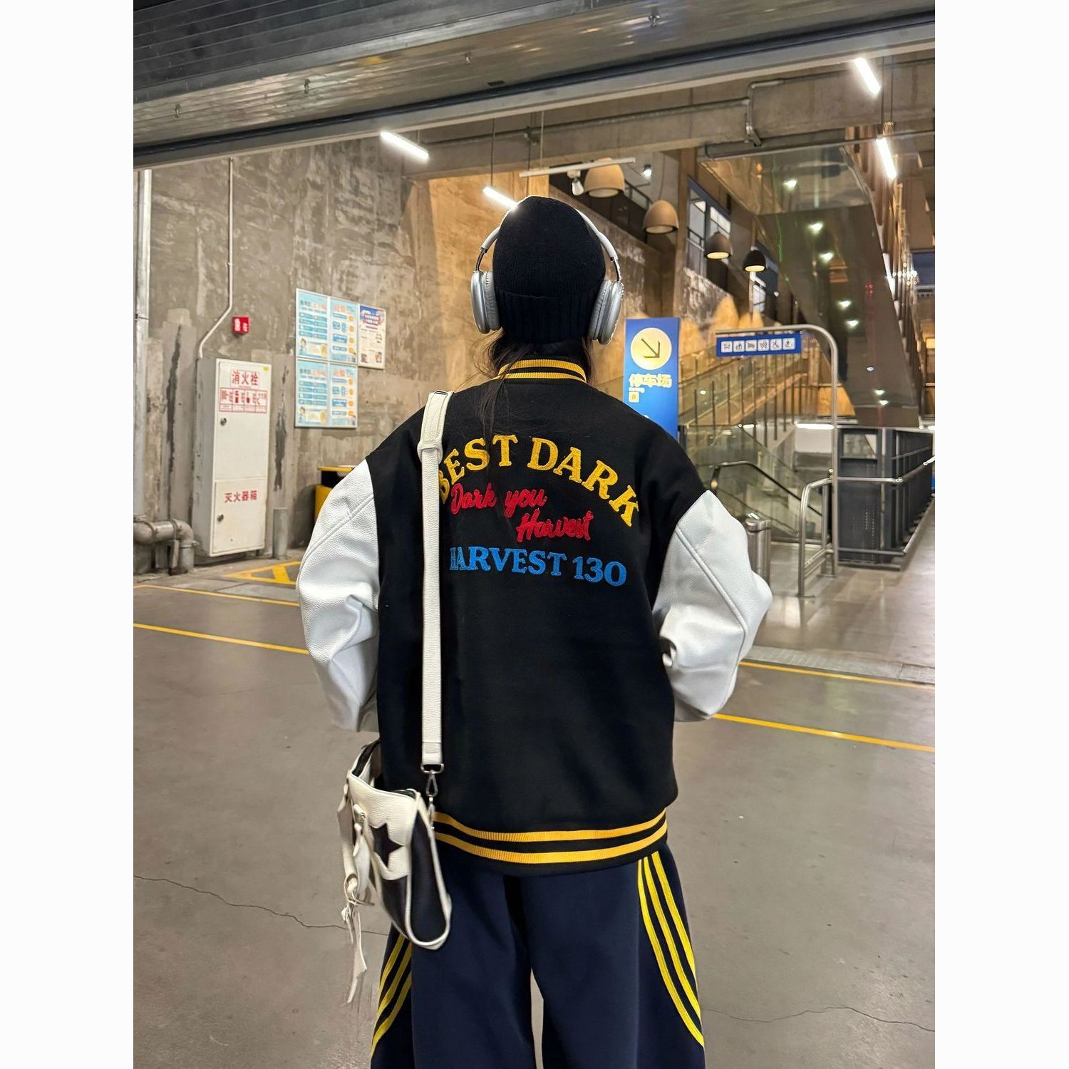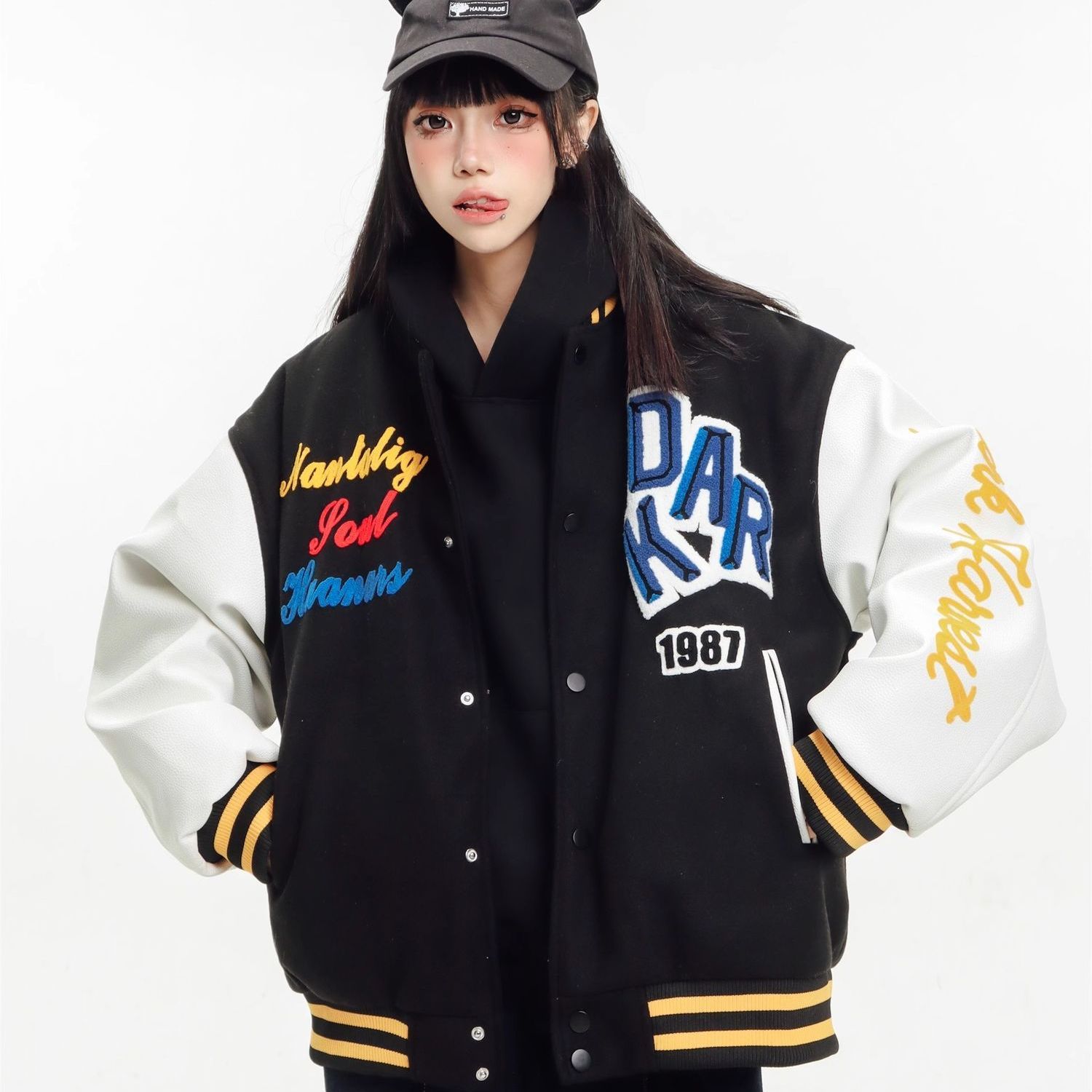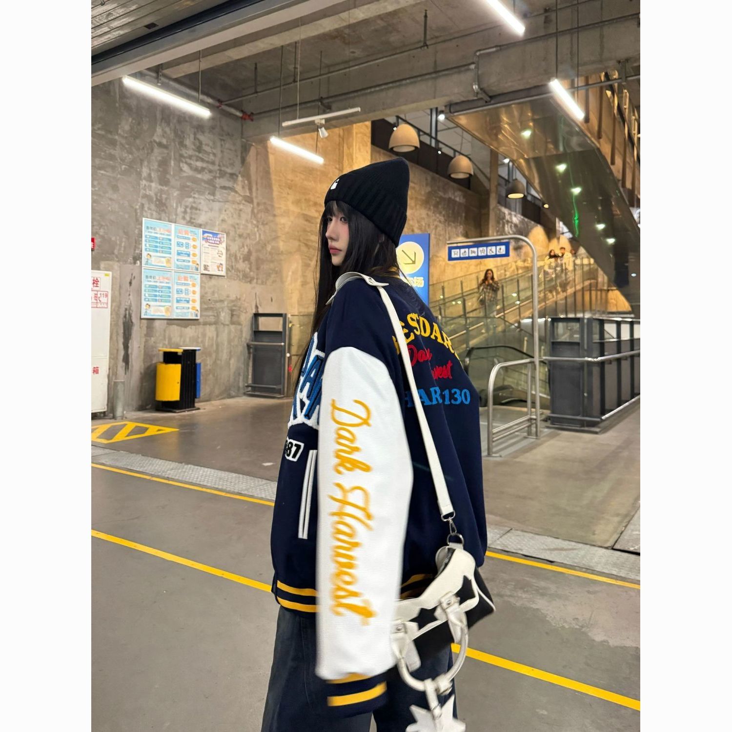 国潮原创刺绣夹棉棒球服男秋冬季新款保暖宽松棉服外套夹克女ins