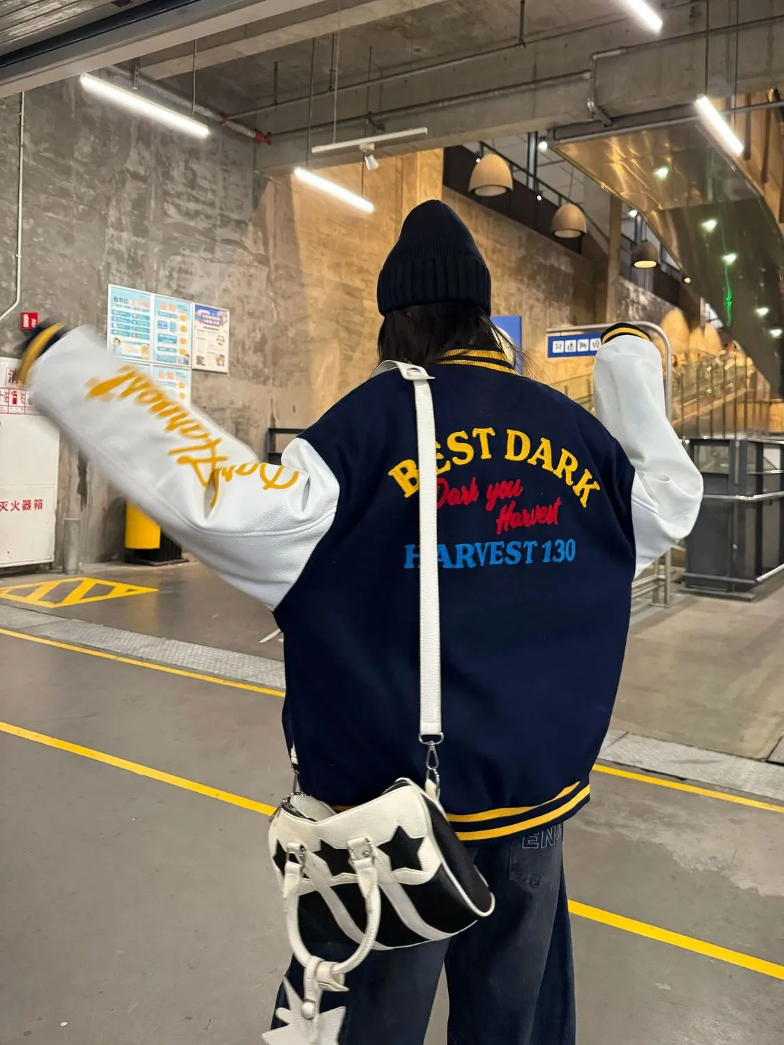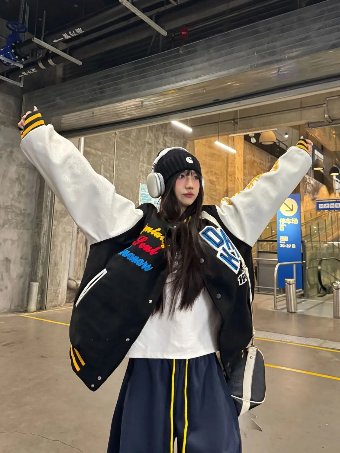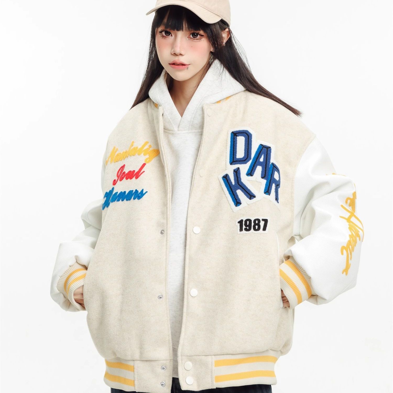 国潮原创刺绣夹棉棒球服男秋冬季新款保暖宽松棉服外套夹克女ins