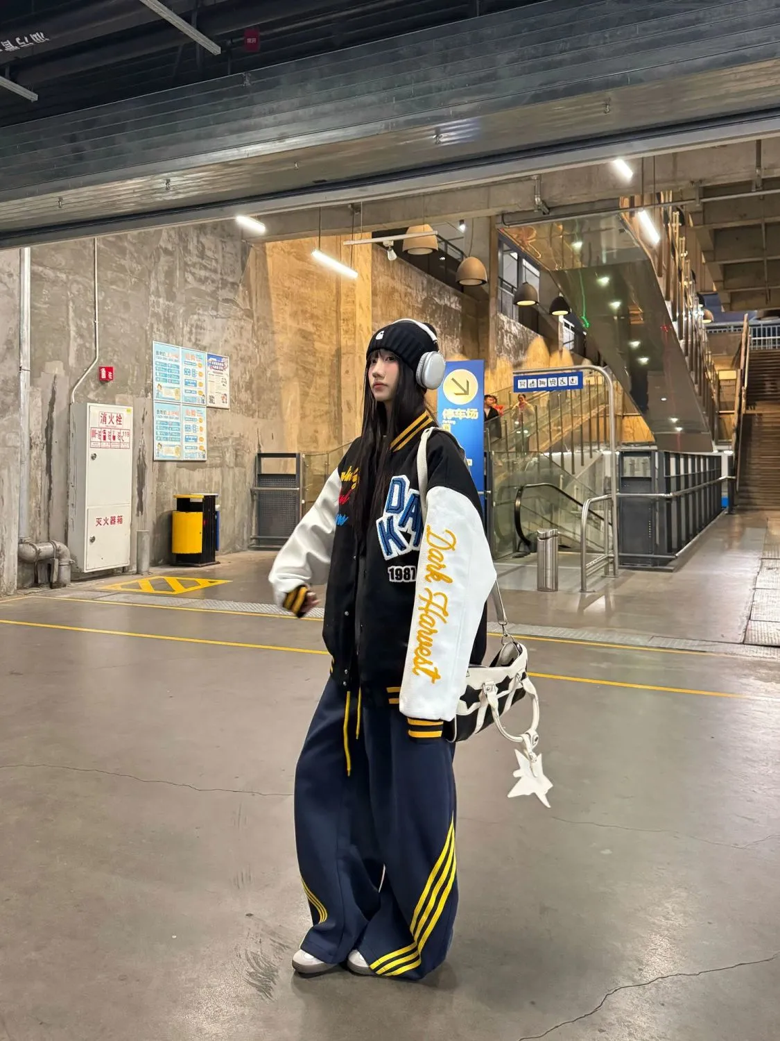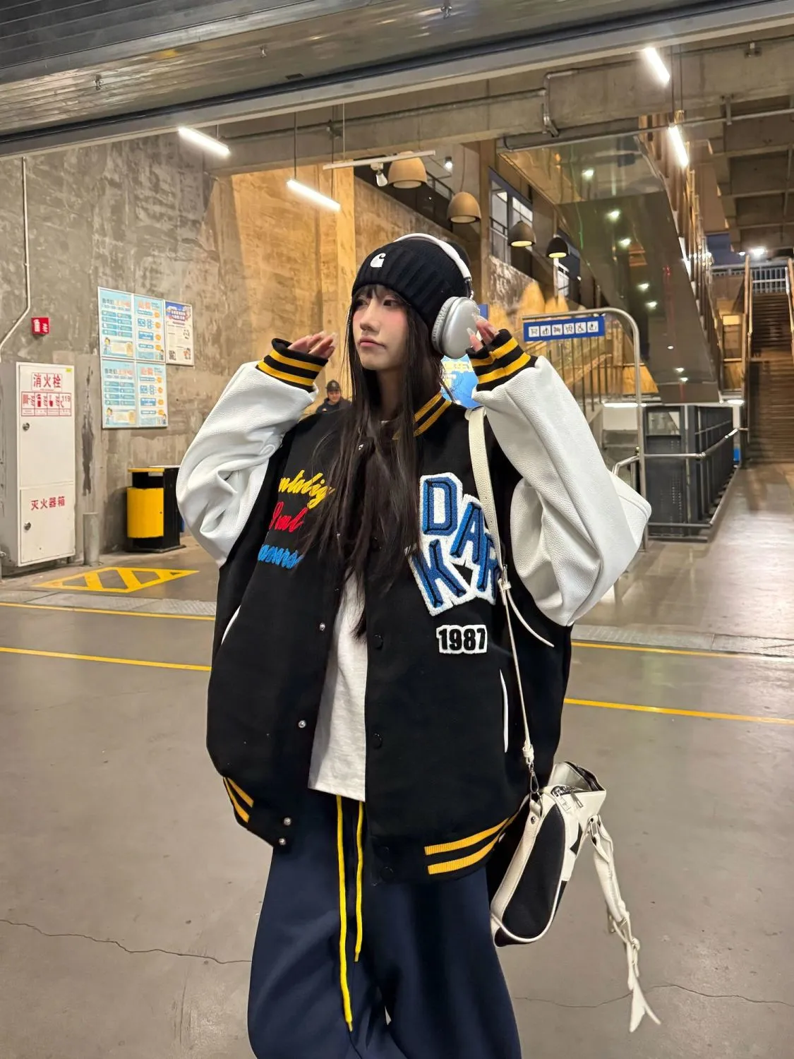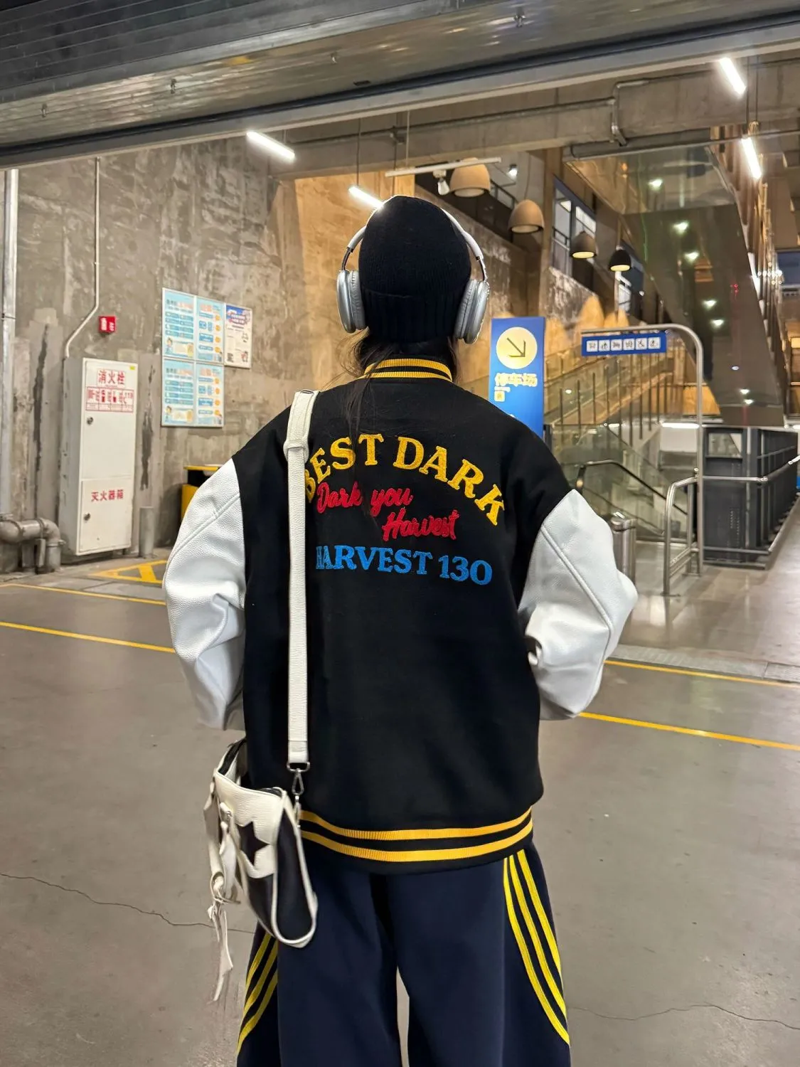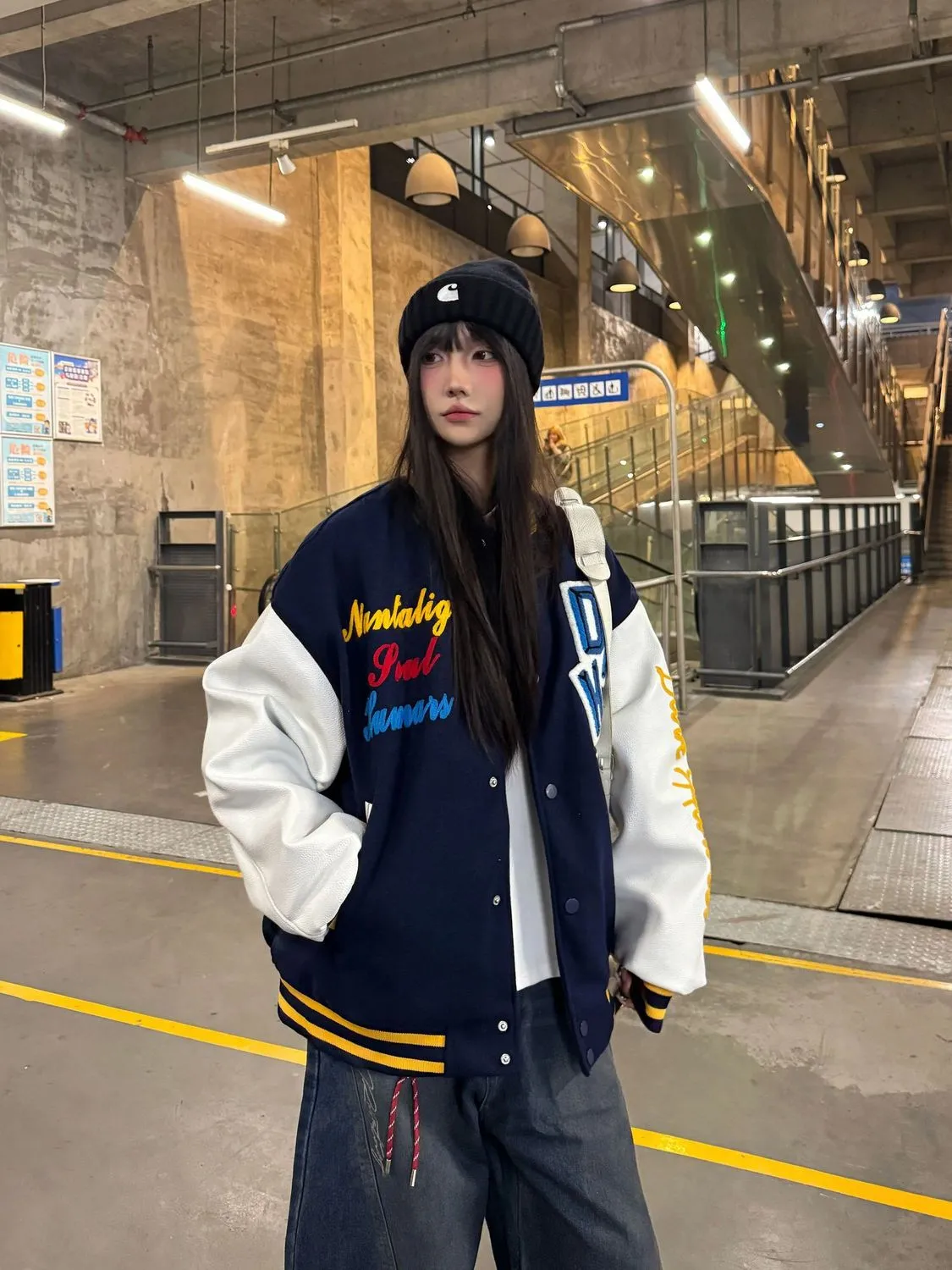 国潮原创刺绣夹棉棒球服男秋冬季新款保暖宽松棉服外套夹克女ins