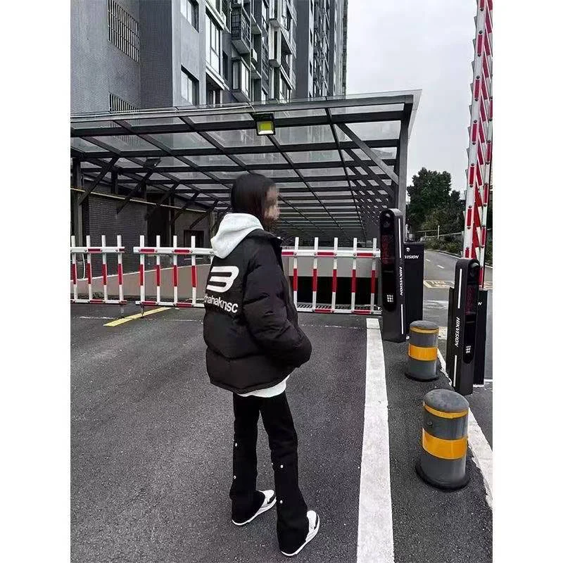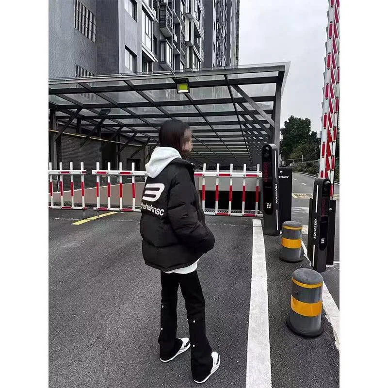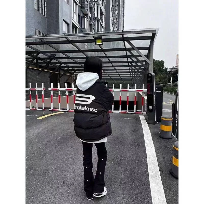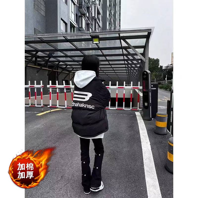 国潮hiphop立领防寒棉服外套女冬季字母印花个性高街加厚保暖棉袄