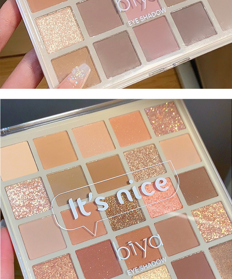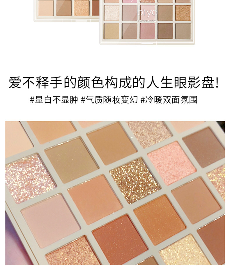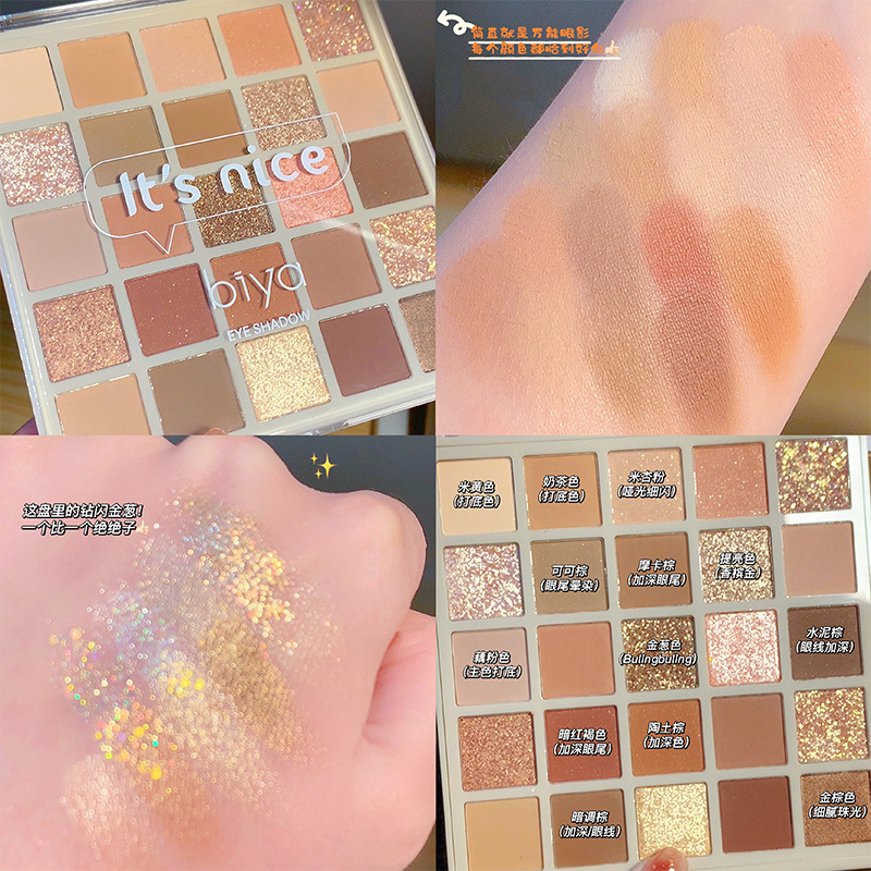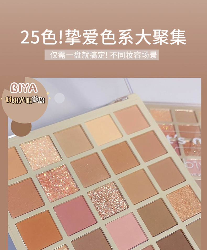 Biya好阳光25色眼影盘哑光珠光细闪亮片奶茶橘棕色高光修容一体盘