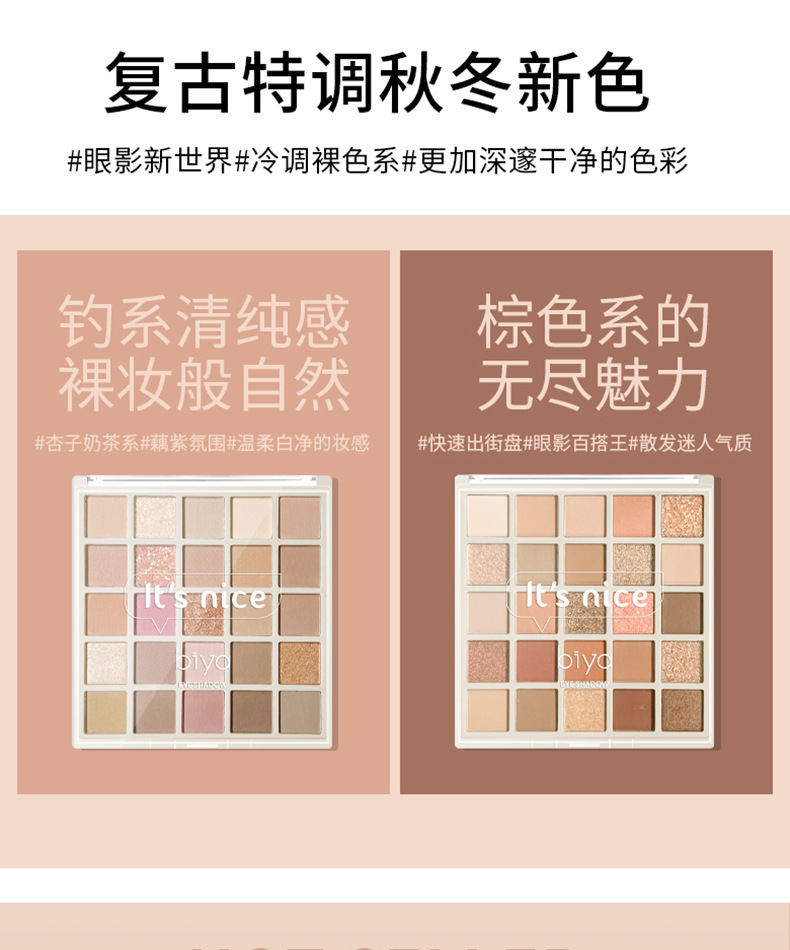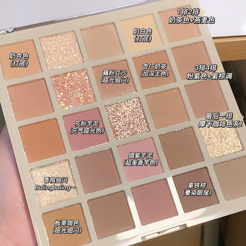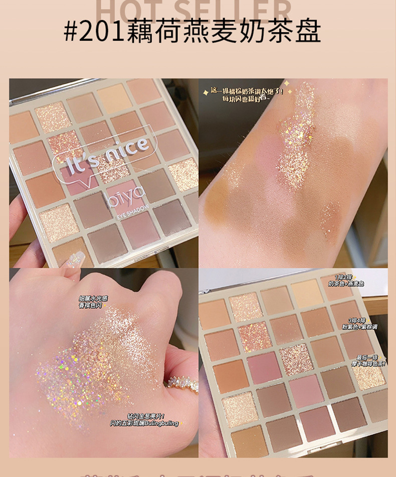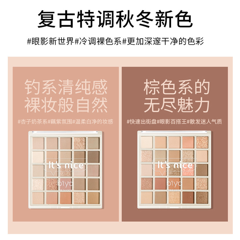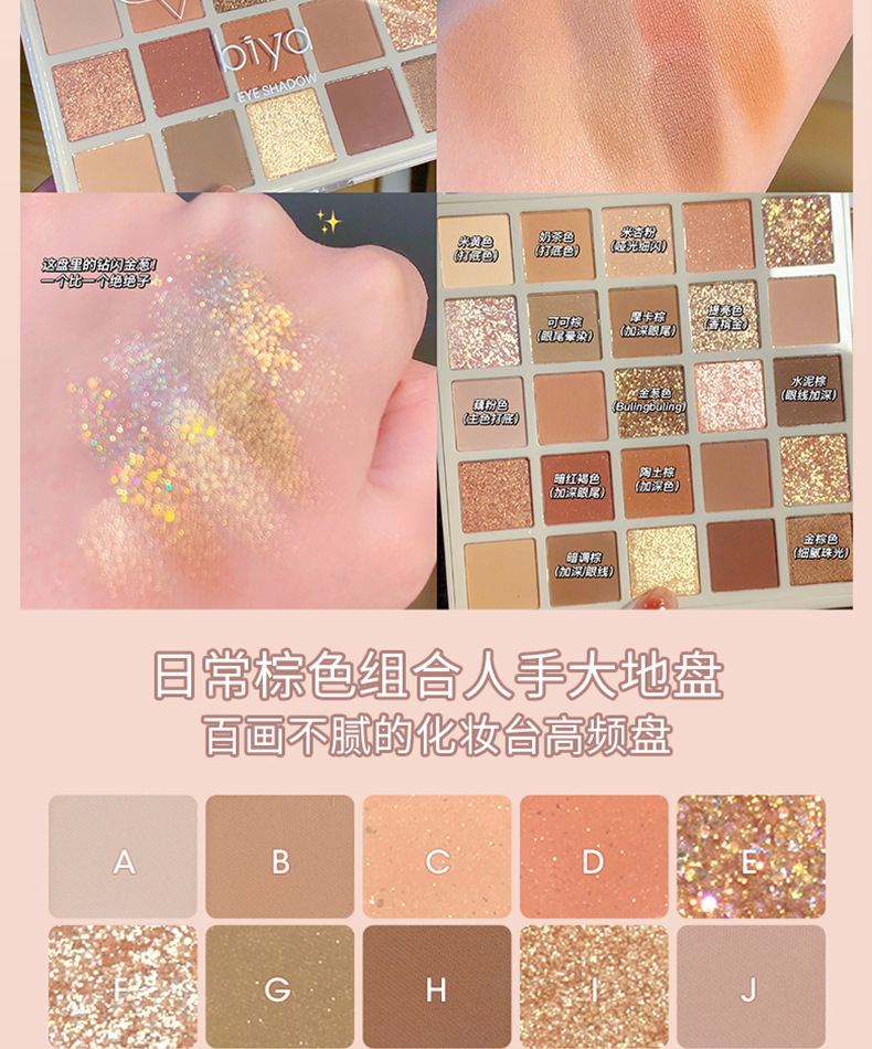 Biya好阳光25色眼影盘哑光珠光细闪亮片奶茶橘棕色高光修容一体盘