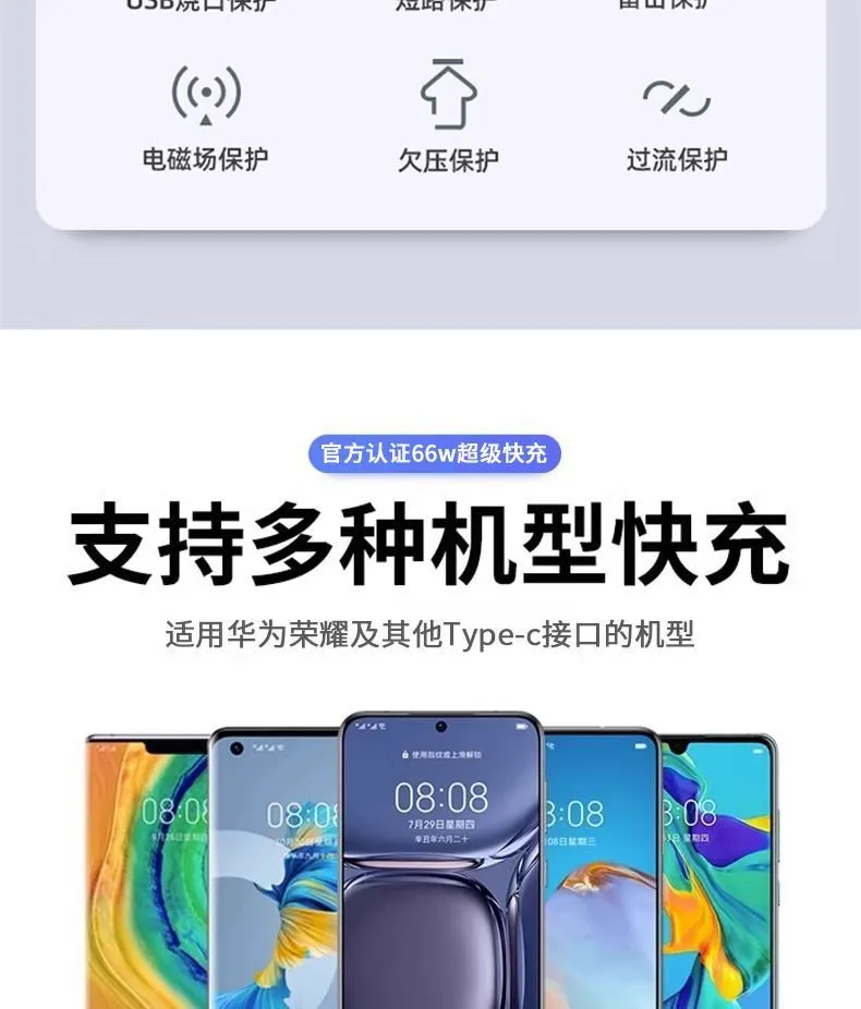 官方快充120W华为超级快充适用66W快充充电器荣耀数据线mate50/60