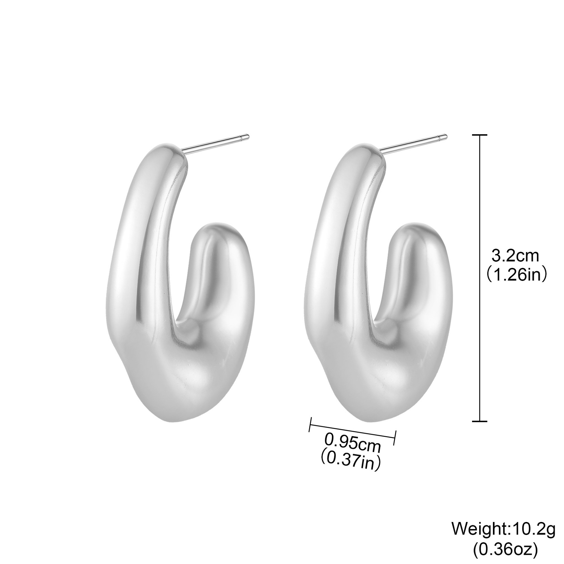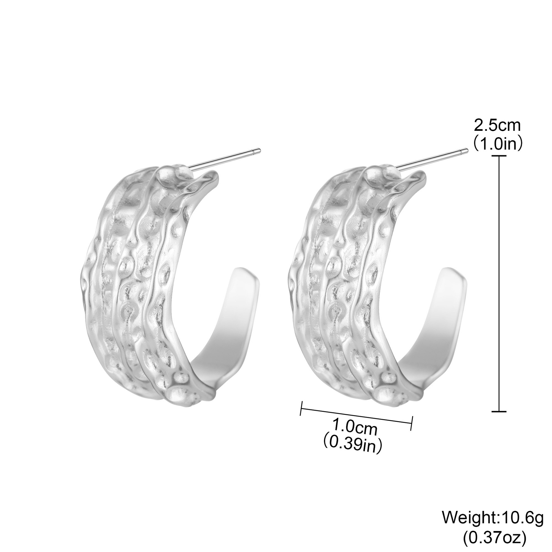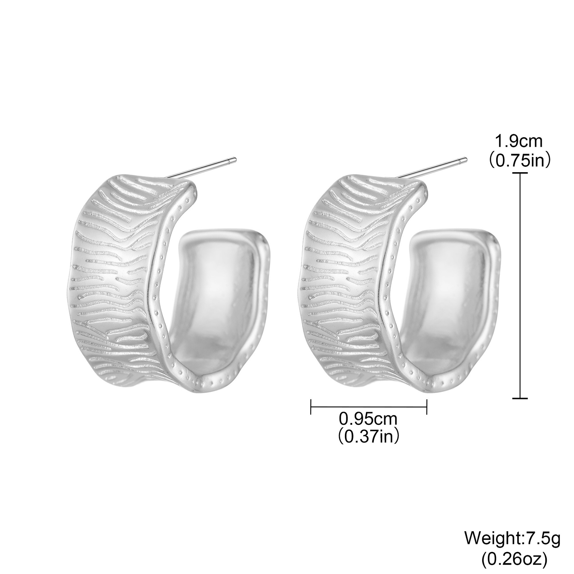 跨境新款金属风豆豆耳饰女设计感高级感精致C型纹理耳环银针批发