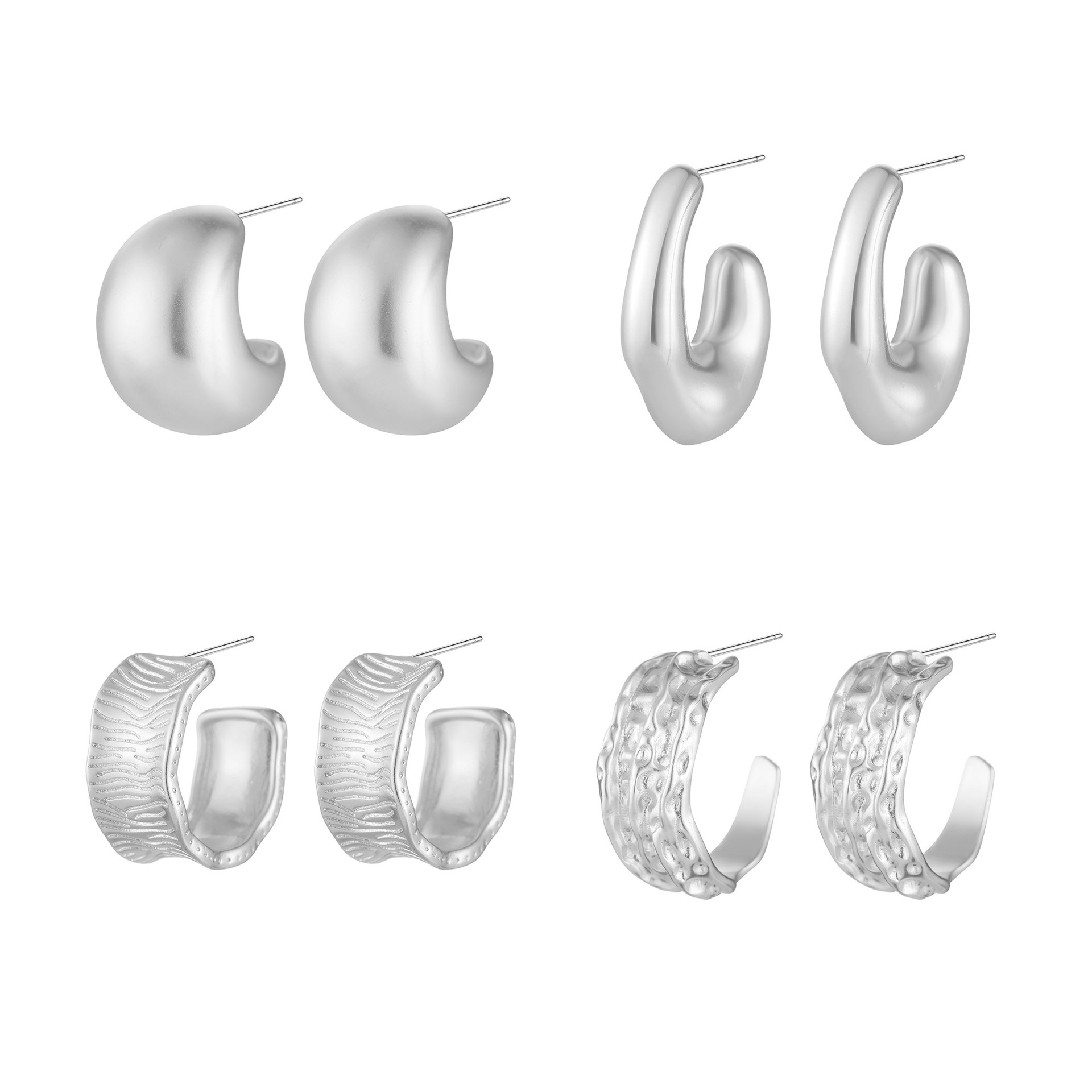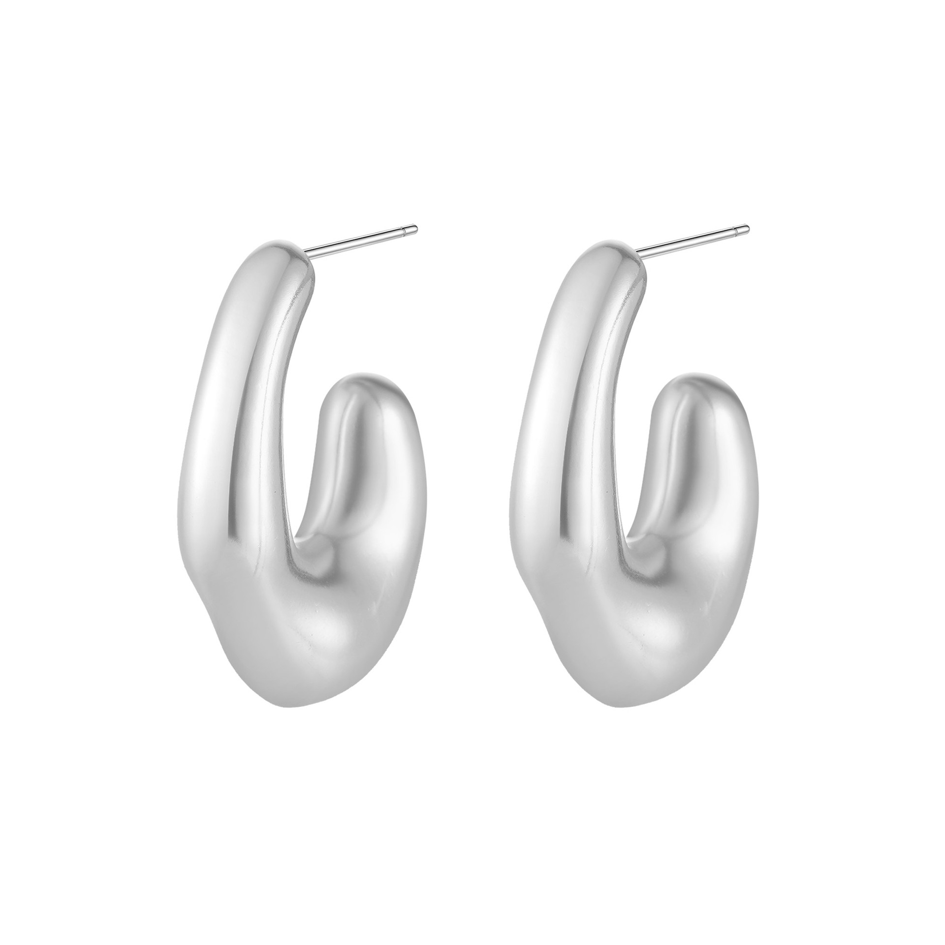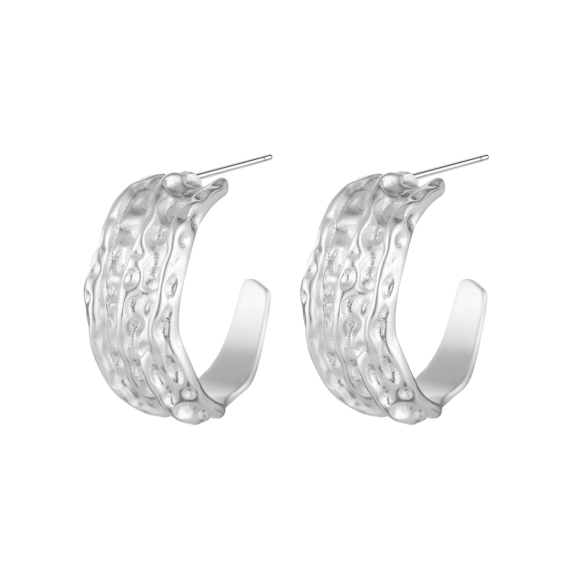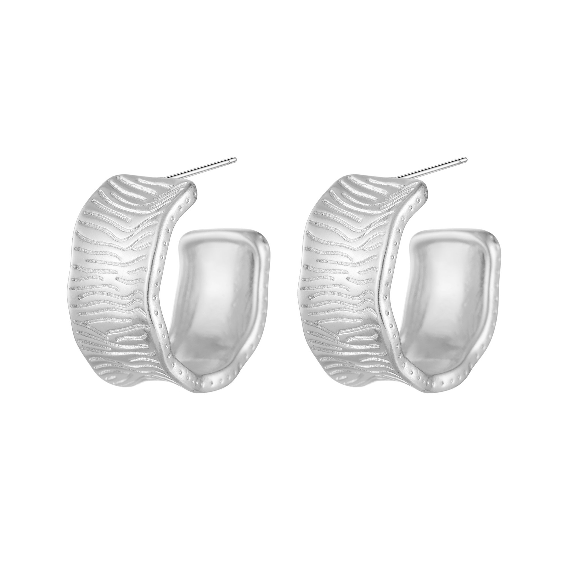 跨境新款金属风豆豆耳饰女设计感高级感精致C型纹理耳环银针批发