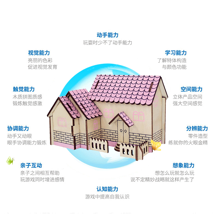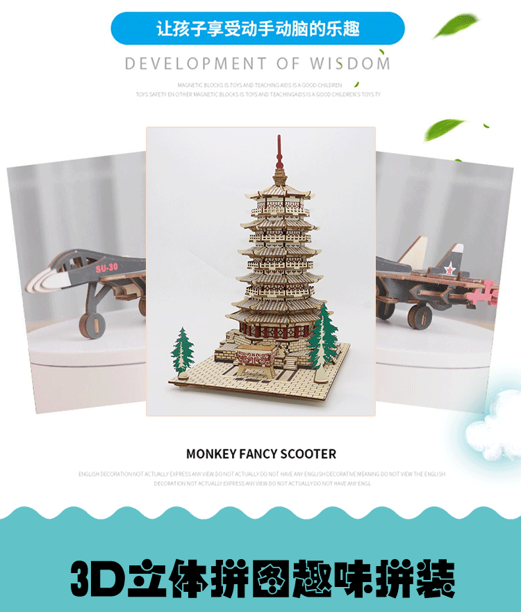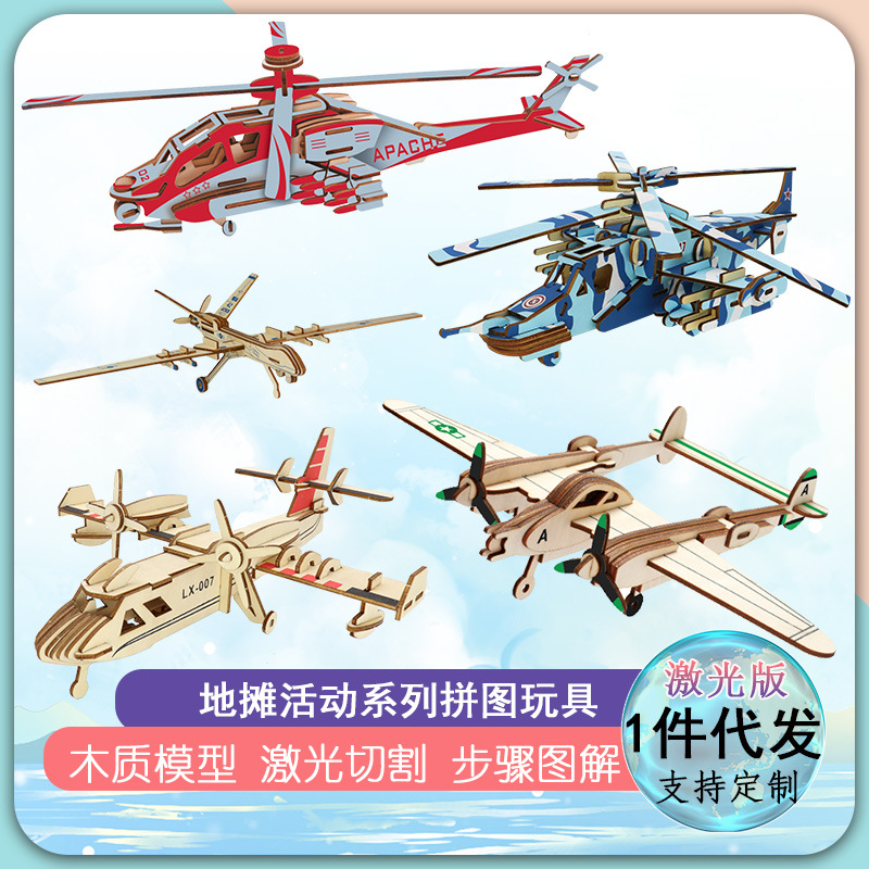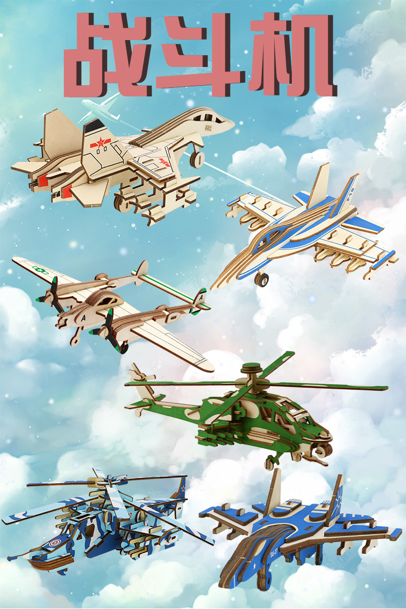 男孩木质3d立体拼图儿童益智玩具积木板手工飞机模型拼装木制拼板