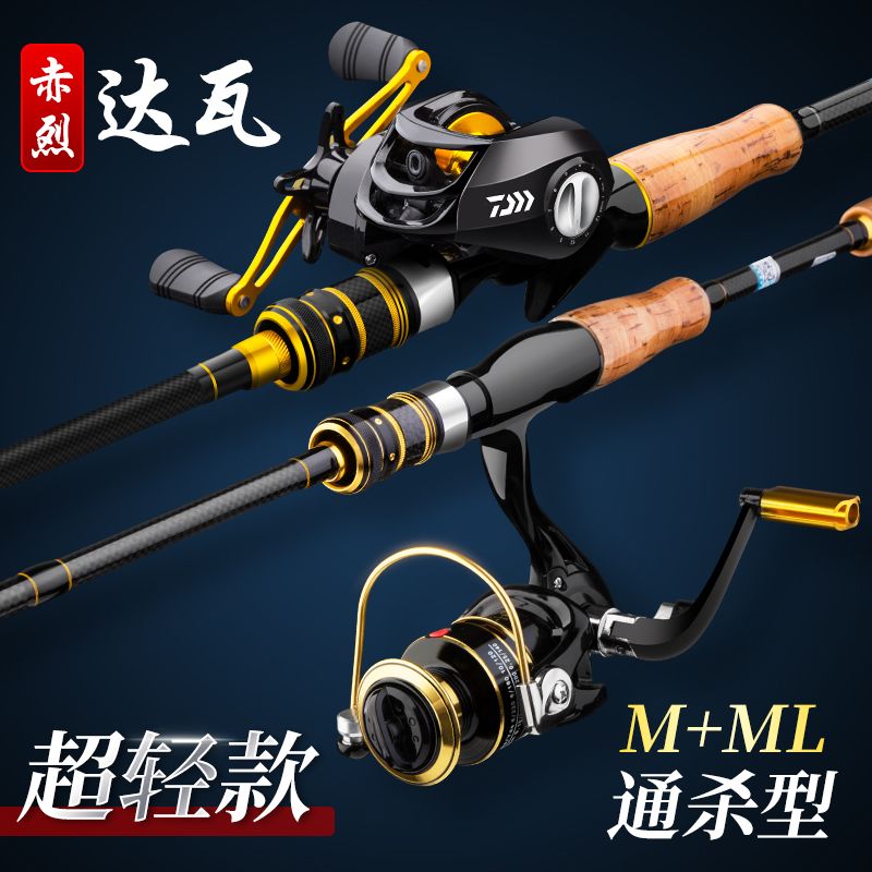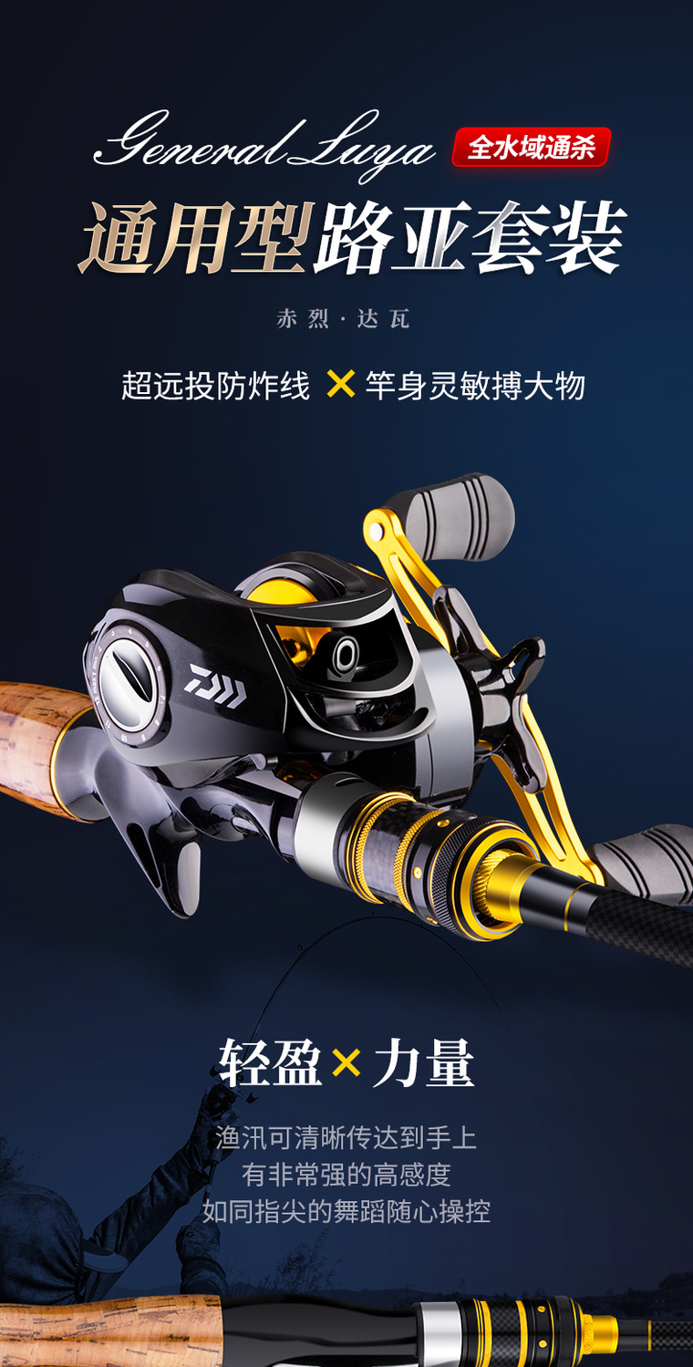 达瓦路亚竿套装水滴轮抛竿枪柄双稍超轻碳素钓鱼竿远投海杆马口杆