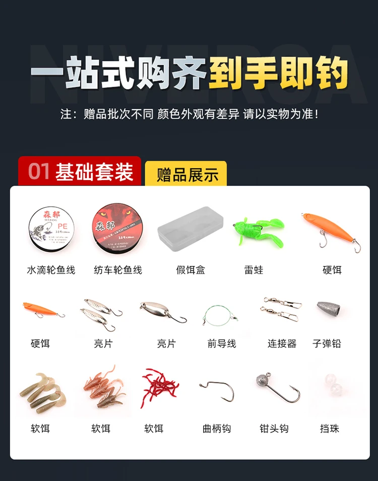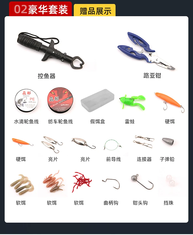 | 1.8 m +14 metal spinning reel suit(1.8米+14款金属纺车轮套装) | USD $22.4 | 999999 piece available |