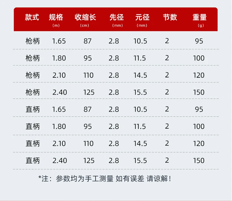 | 2.4 m-2 straight handle single rod(2.4米-2节直柄单竿) | USD $11.57 | 999999 piece available |