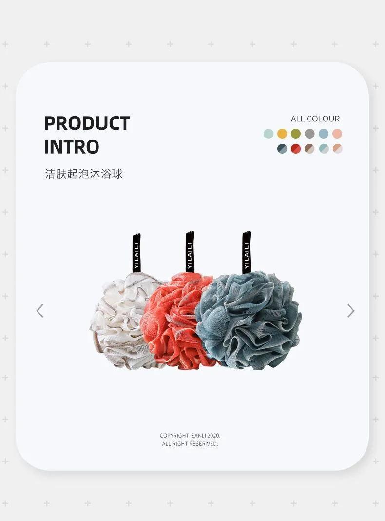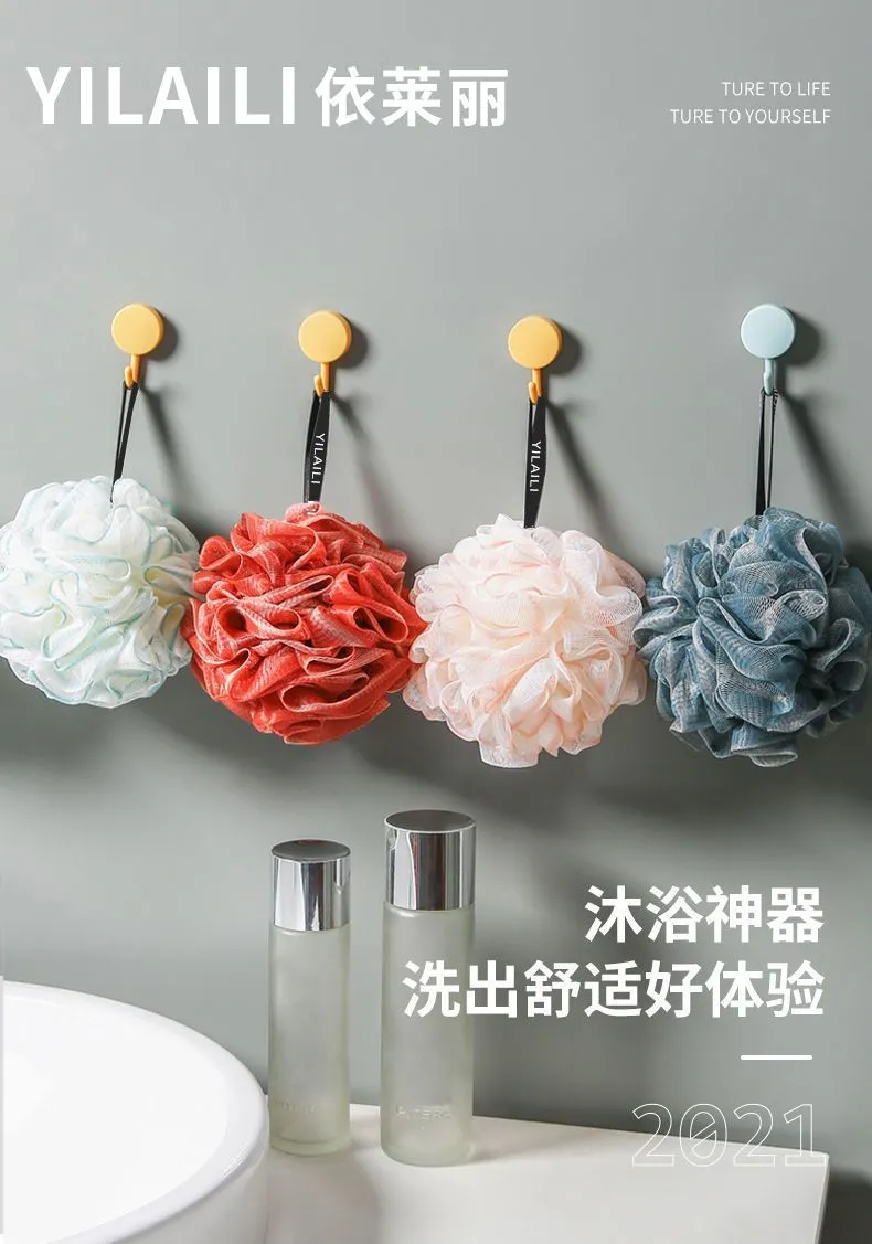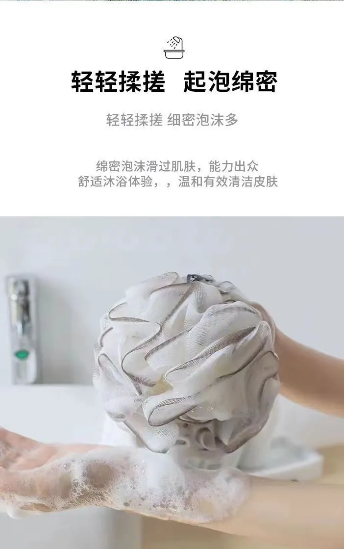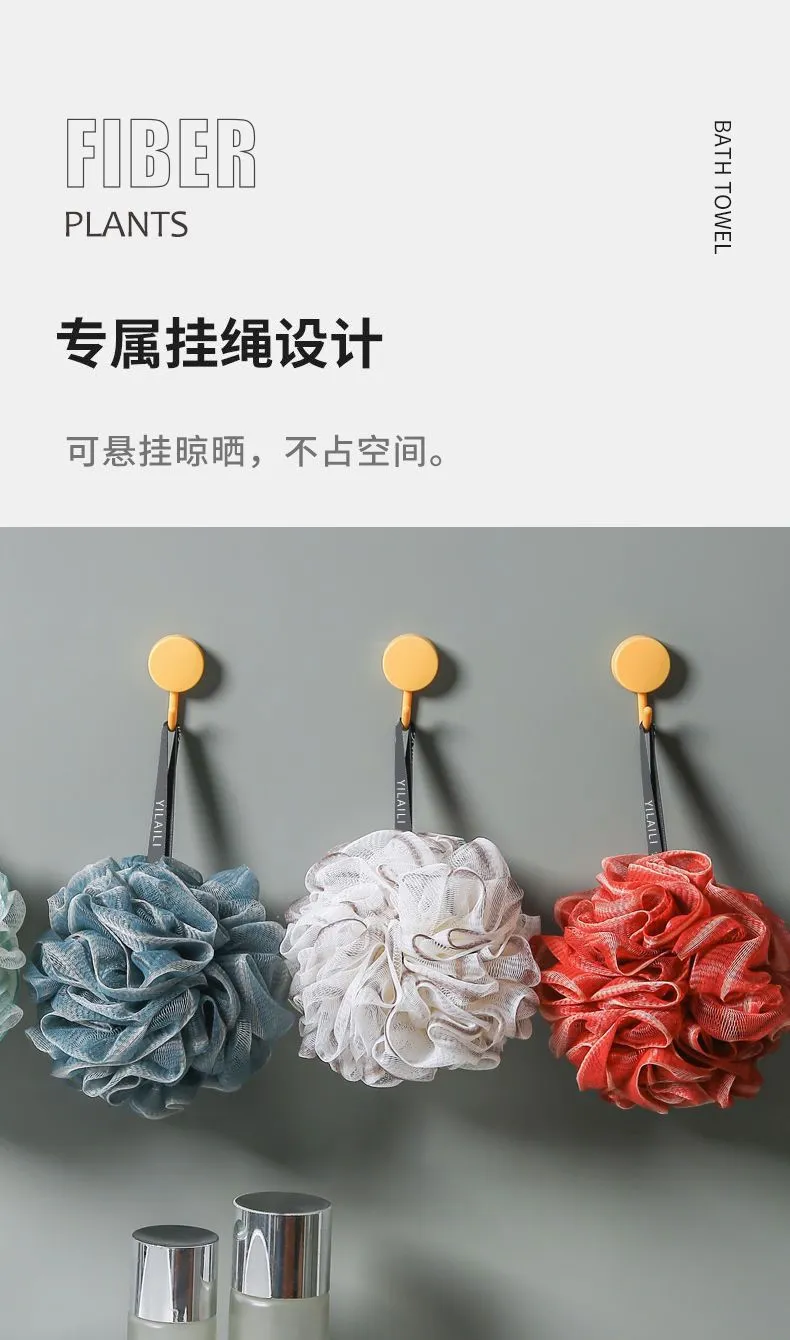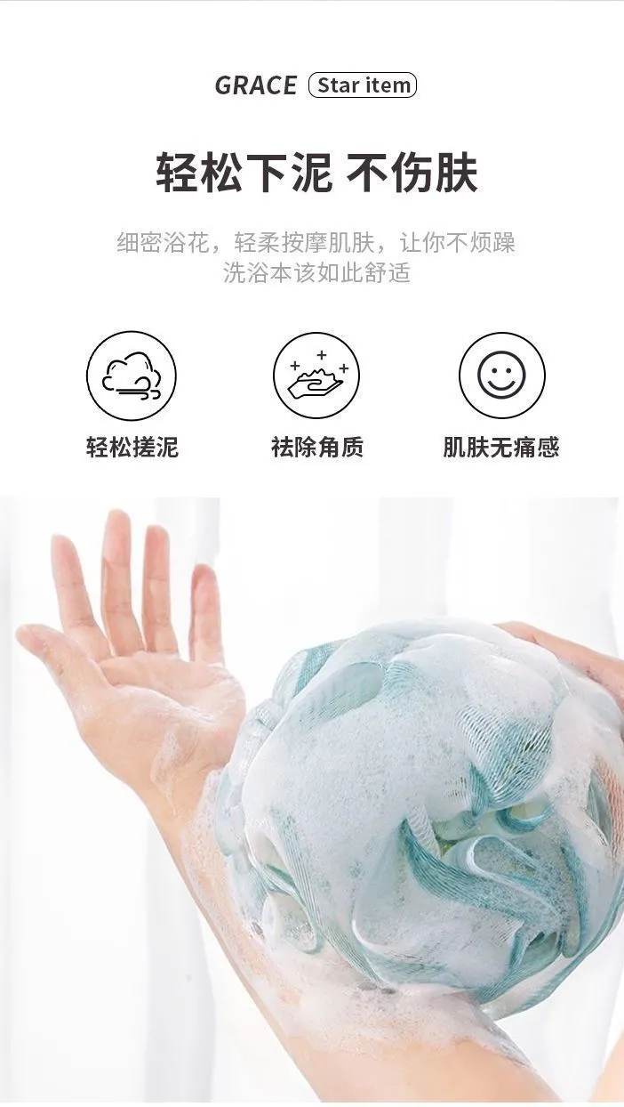 依莱丽沐浴球大号耐用不散柔软浴花球浴巾淋浴搓背起泡洗澡搓澡巾