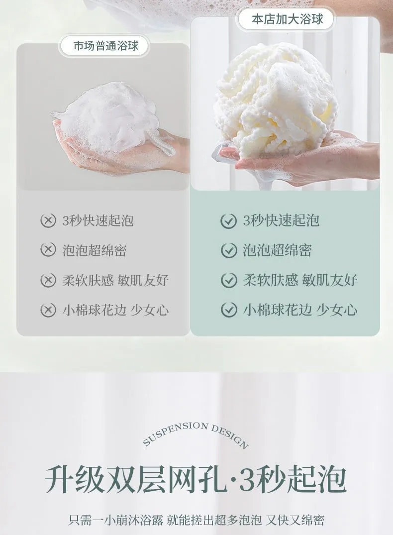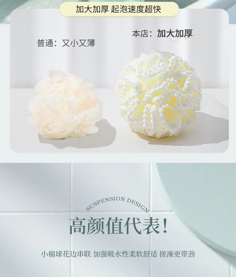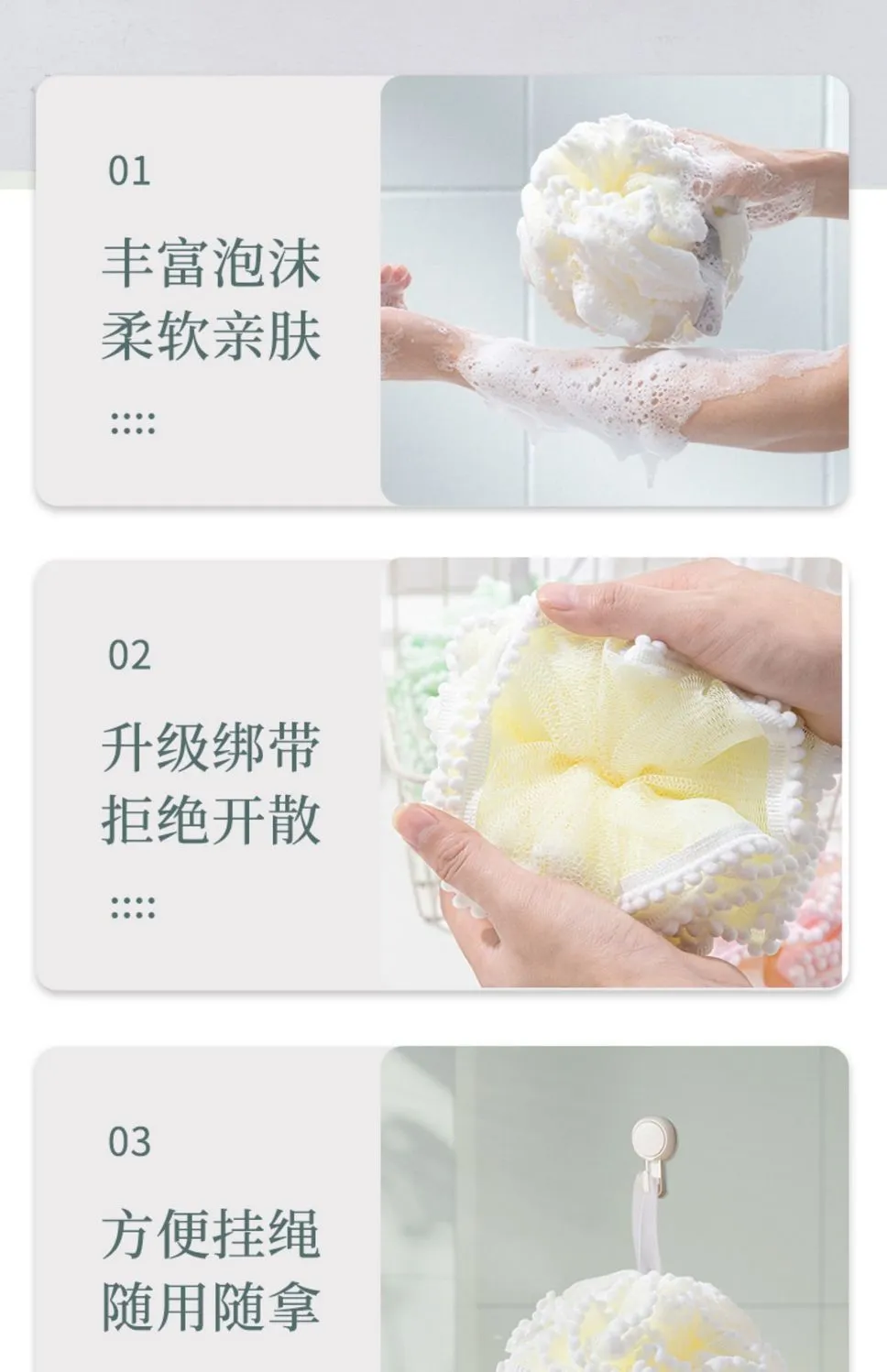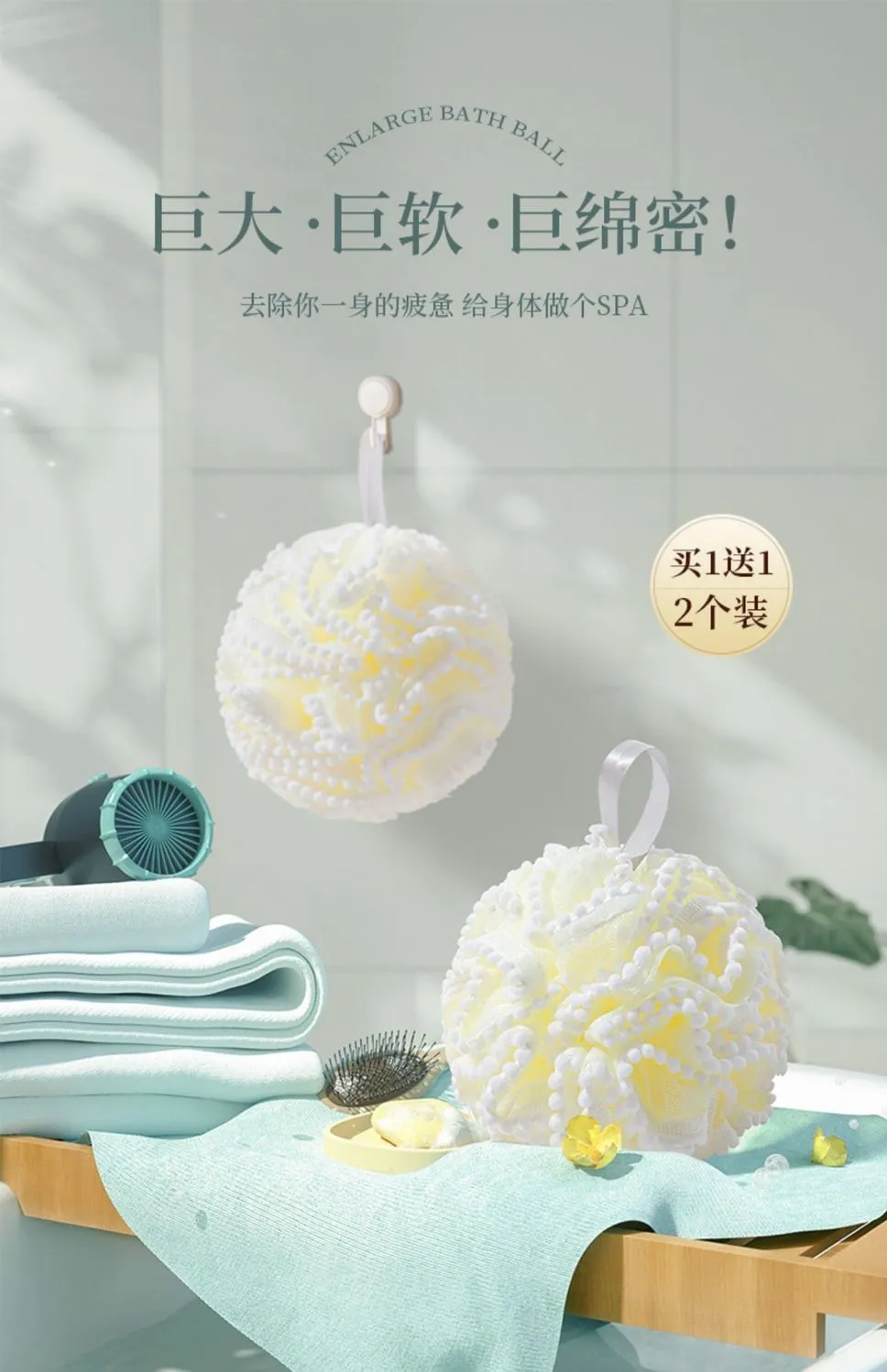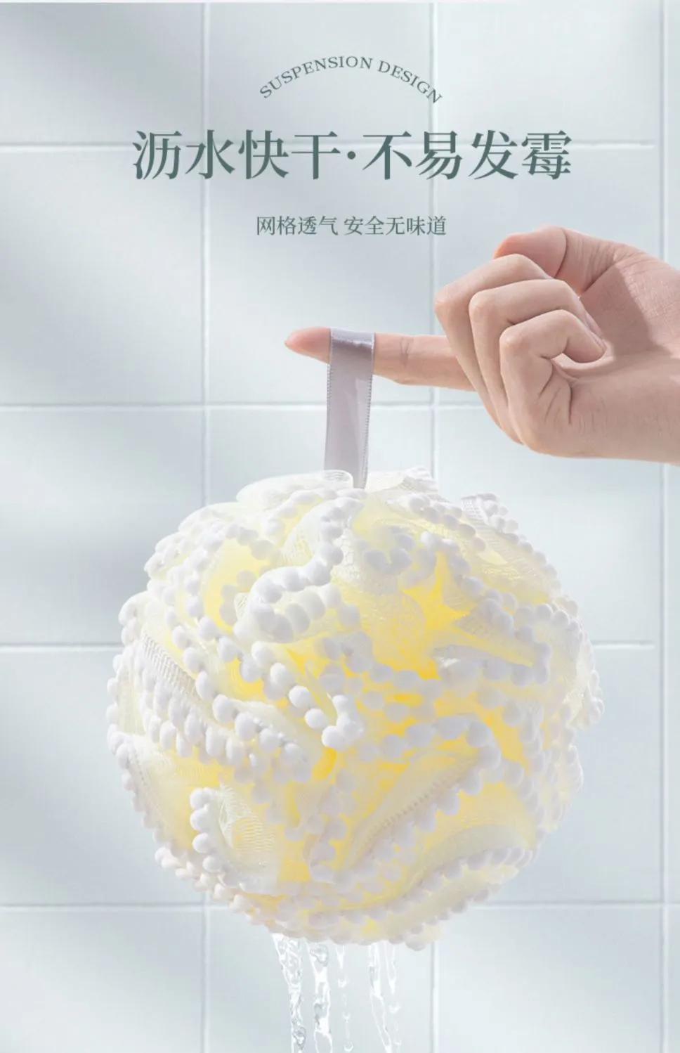 奶白沐浴球女洗澡男浴花球超柔软高档不散起泡泡搓澡球两用淋浴花