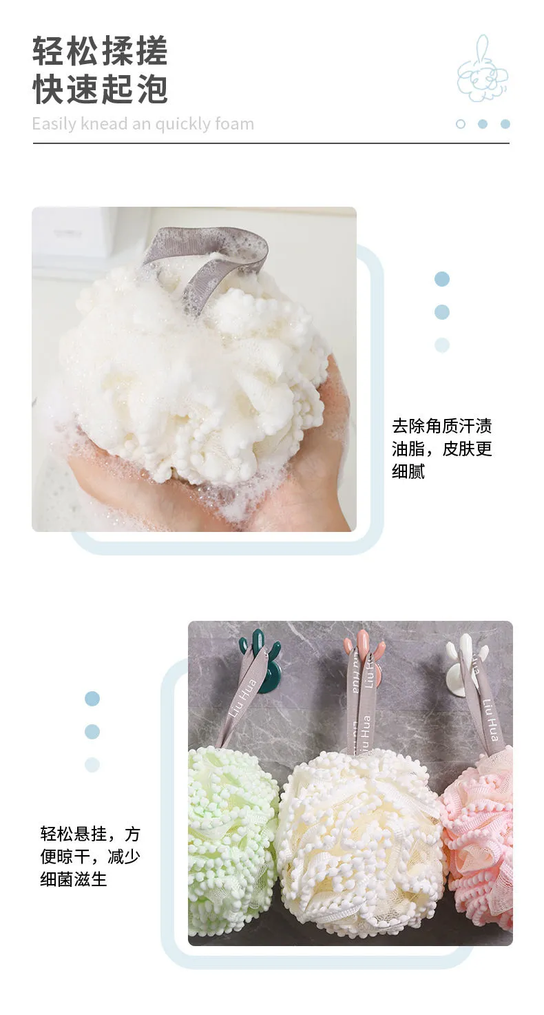 高档大号沐浴球不散花超柔软耐用新款浴花洗澡球搓澡两用洗浴用品