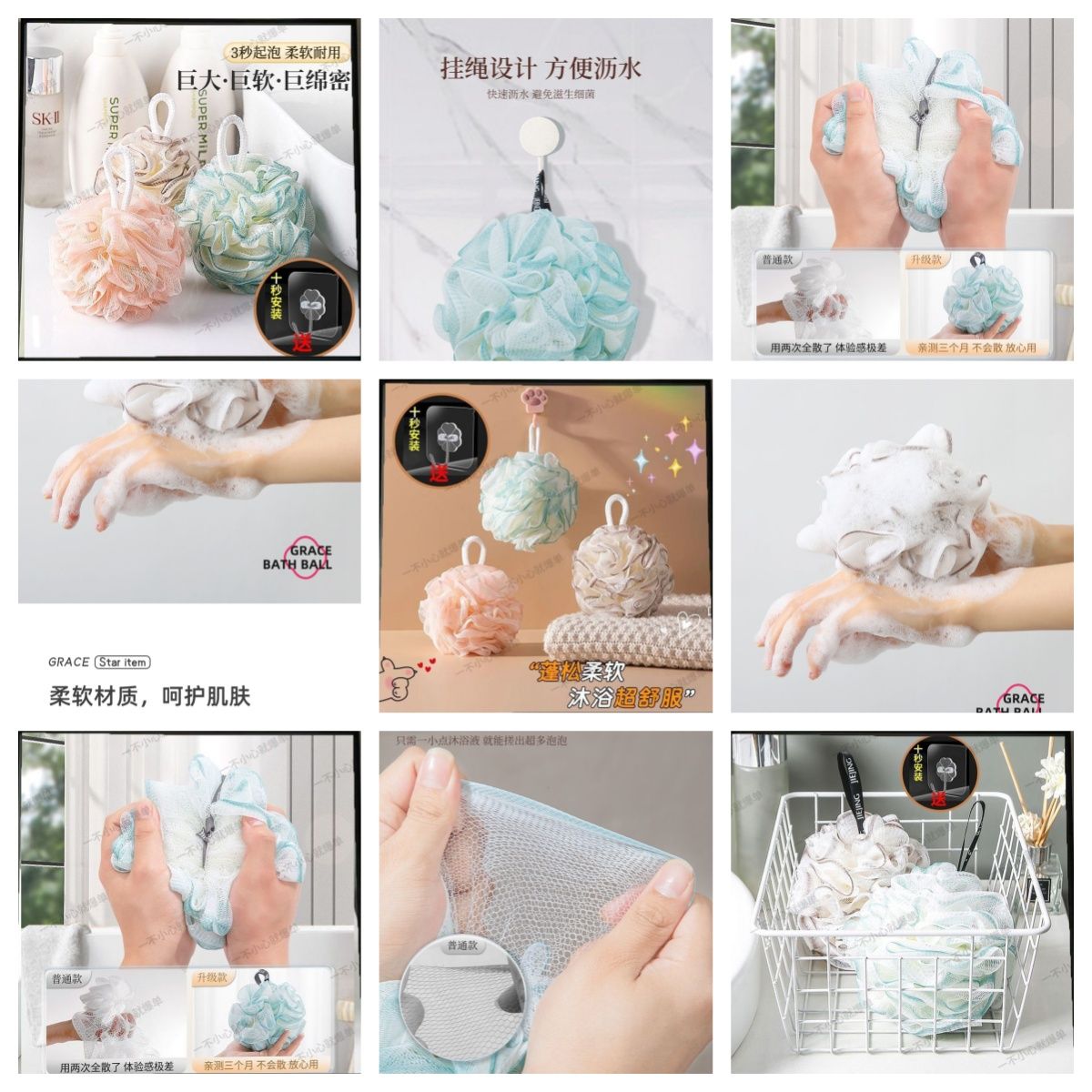 沐浴球高档加大号浴花球柔软不散耐用泡澡球洗澡搓背洗澡专用神器