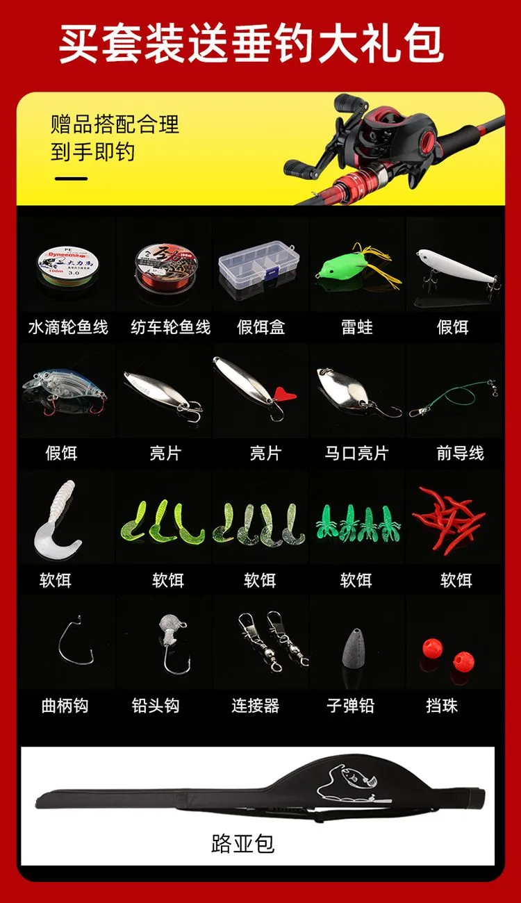 全套碳素路亚竿新手入门套装水滴轮M调海竿抛竿黑鱼竿渔具套装