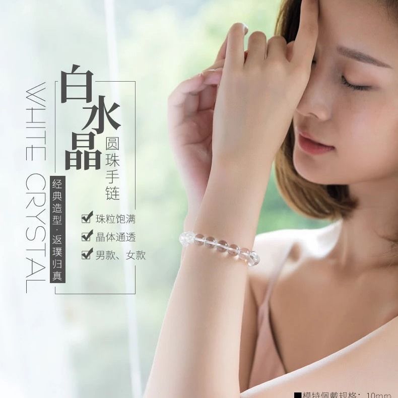 | natural white crystal lucky bracelet for women (10mm)(天然白水晶幸运手链女款(10MM)) | USD $4.86 | 999999 piece available |