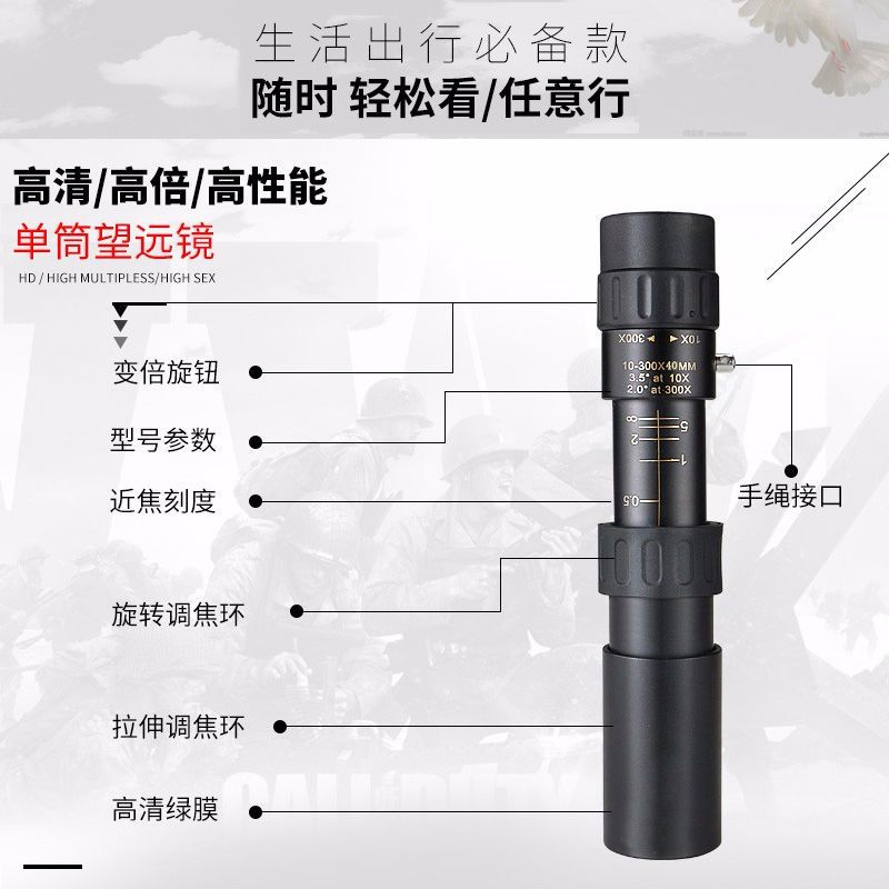 高清军工单筒望远镜成人金属变倍可调望远镜微光夜视户外