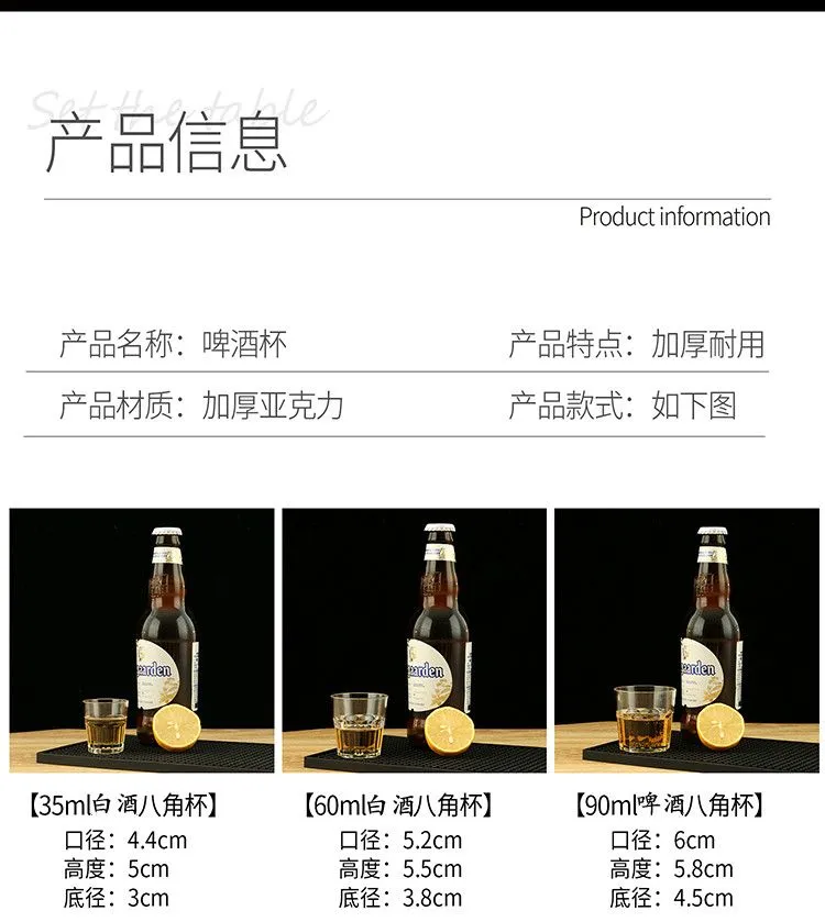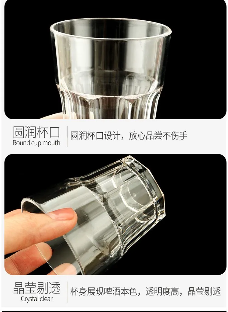 酒吧ktv专用啤酒杯透明亚克力八角杯pc防摔加厚耐高温塑料酒杯