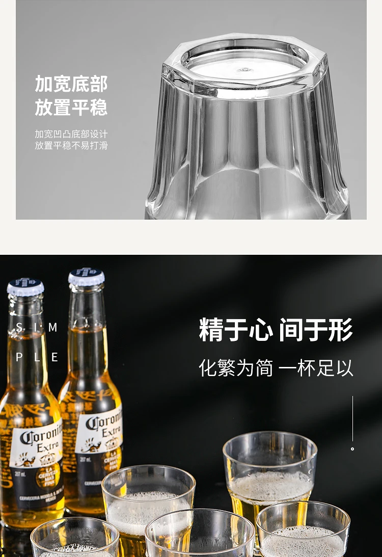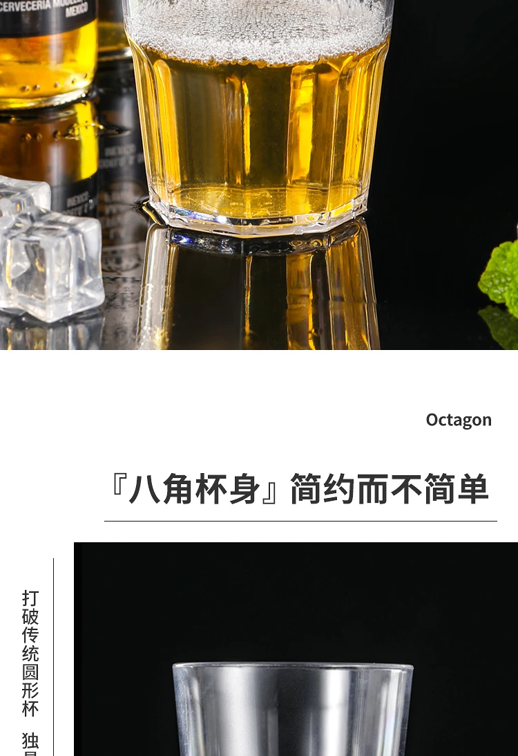 PC亚克力一口白酒啤酒杯KTV酒吧专用塑料防摔透明八角杯子批发