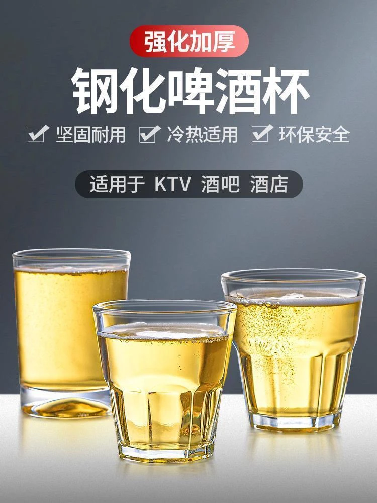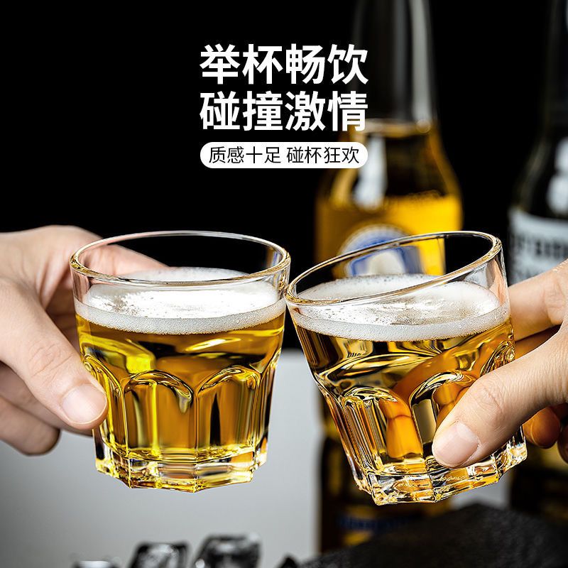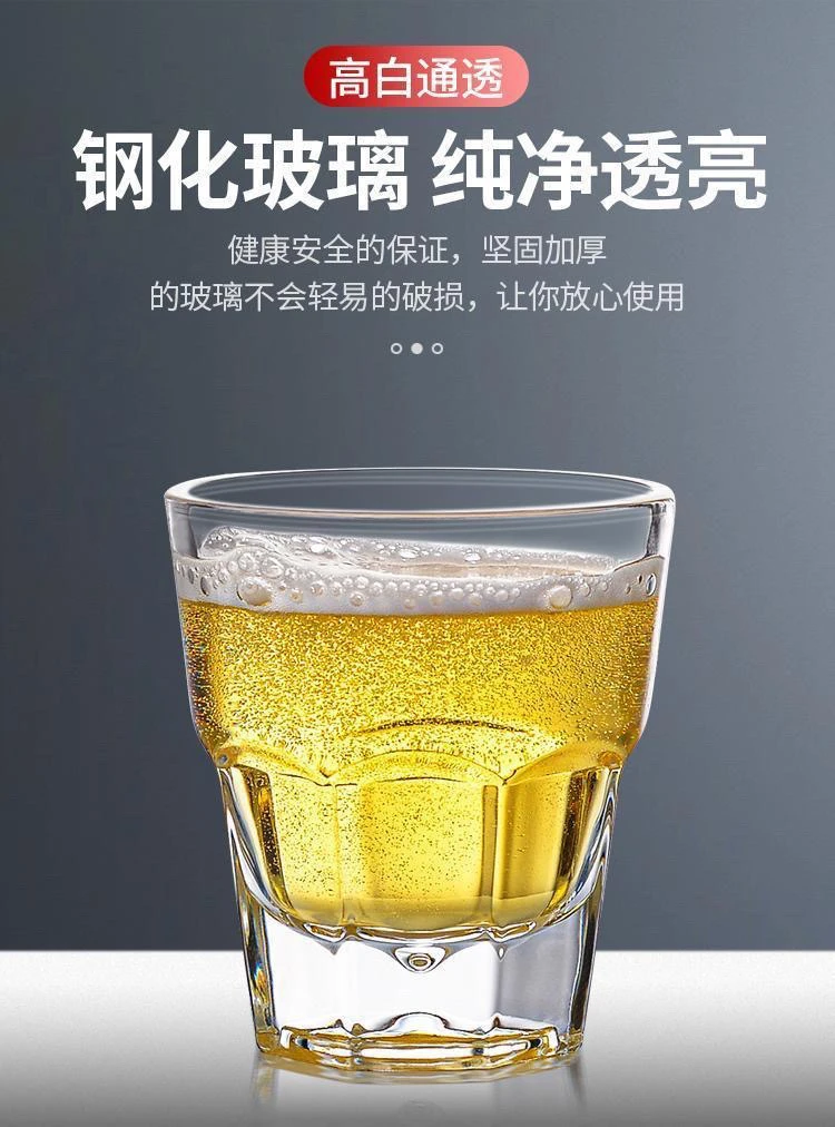 整箱钢化玻璃杯啤酒杯商用KTV酒吧专用八角杯防摔餐饮店家用酒杯
