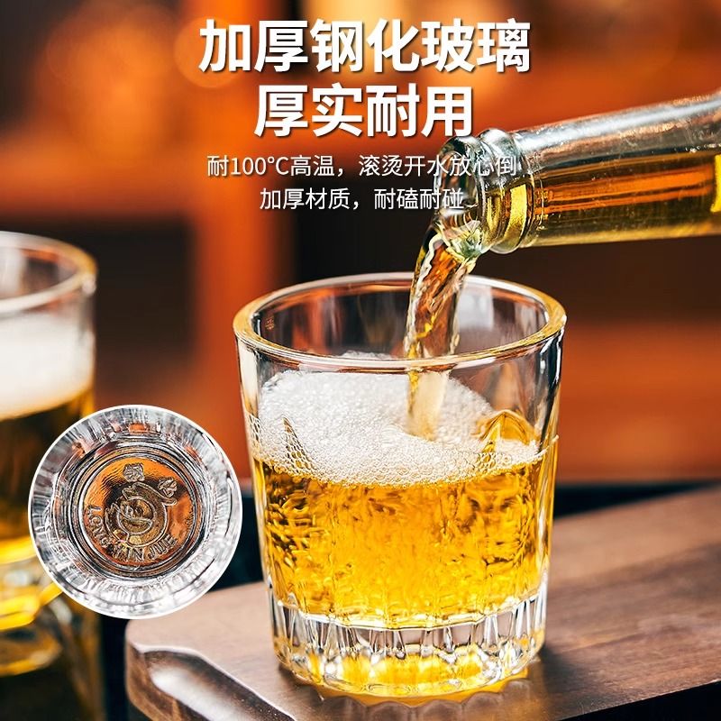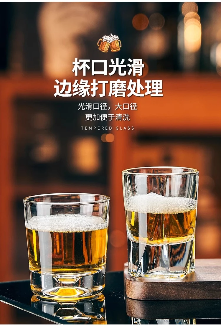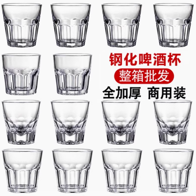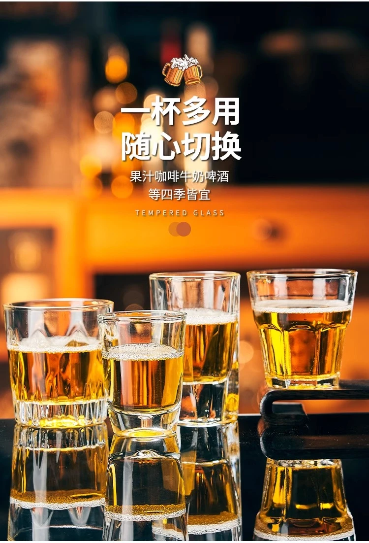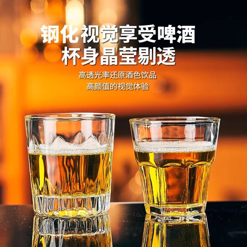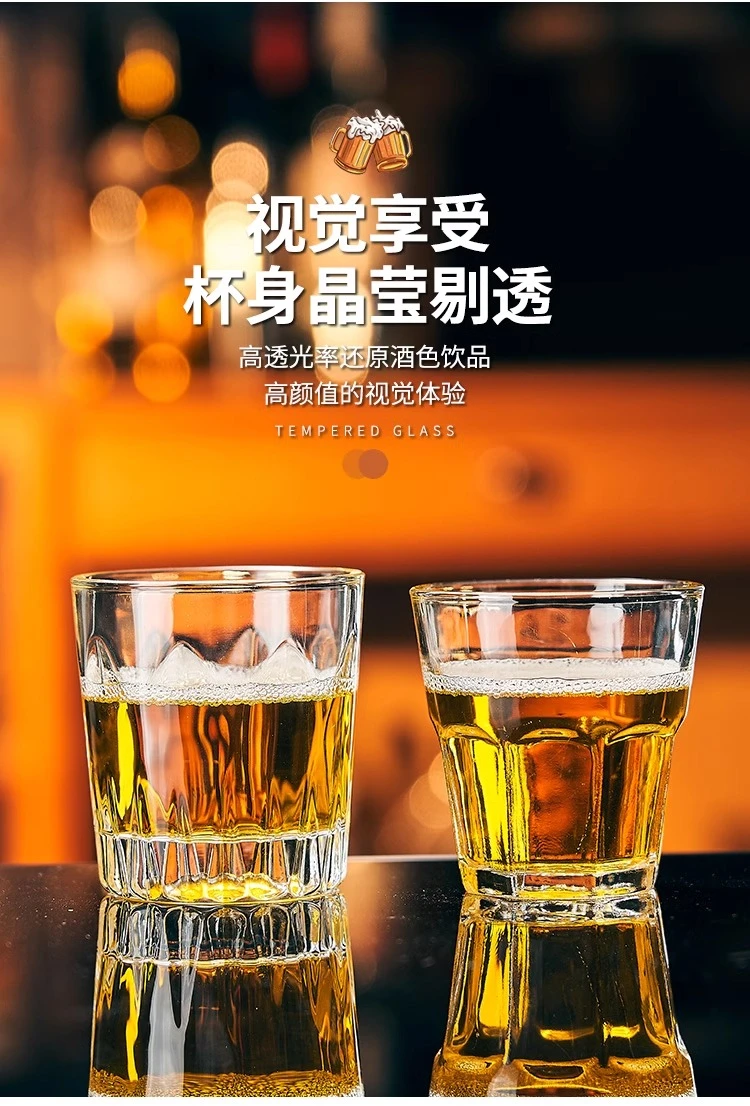 整件 加厚钢化玻璃杯啤酒杯八角杯洋酒杯威士忌杯酒吧KTV酒杯商用