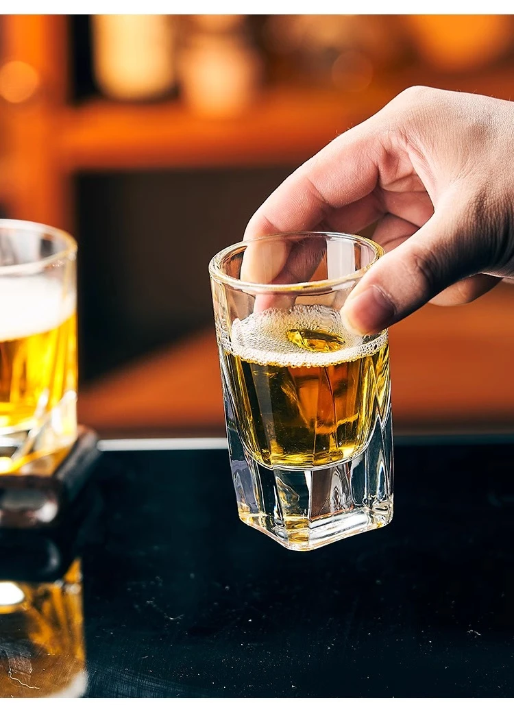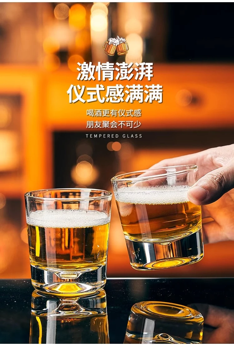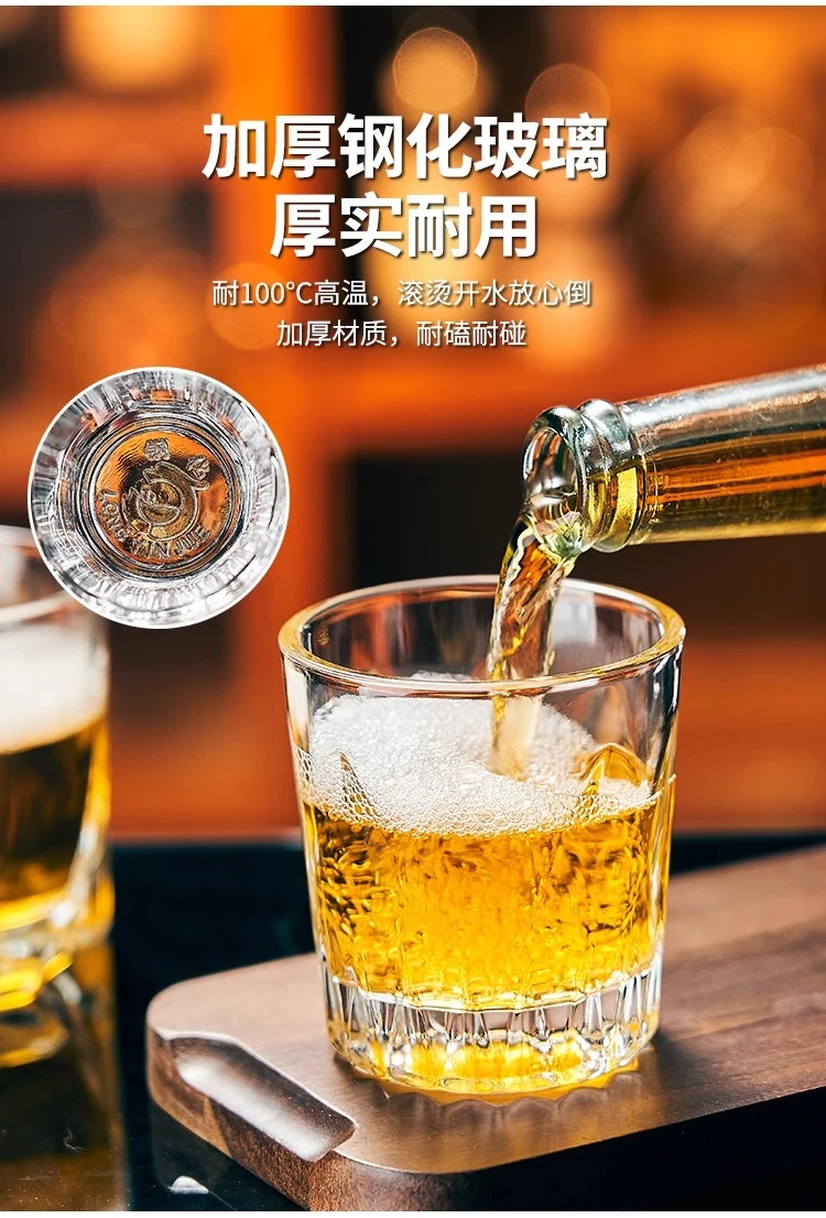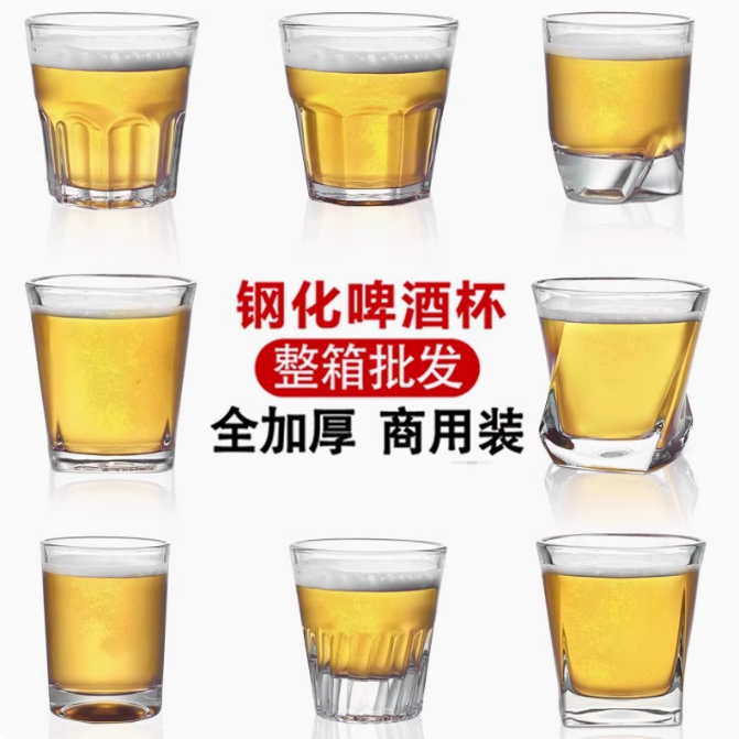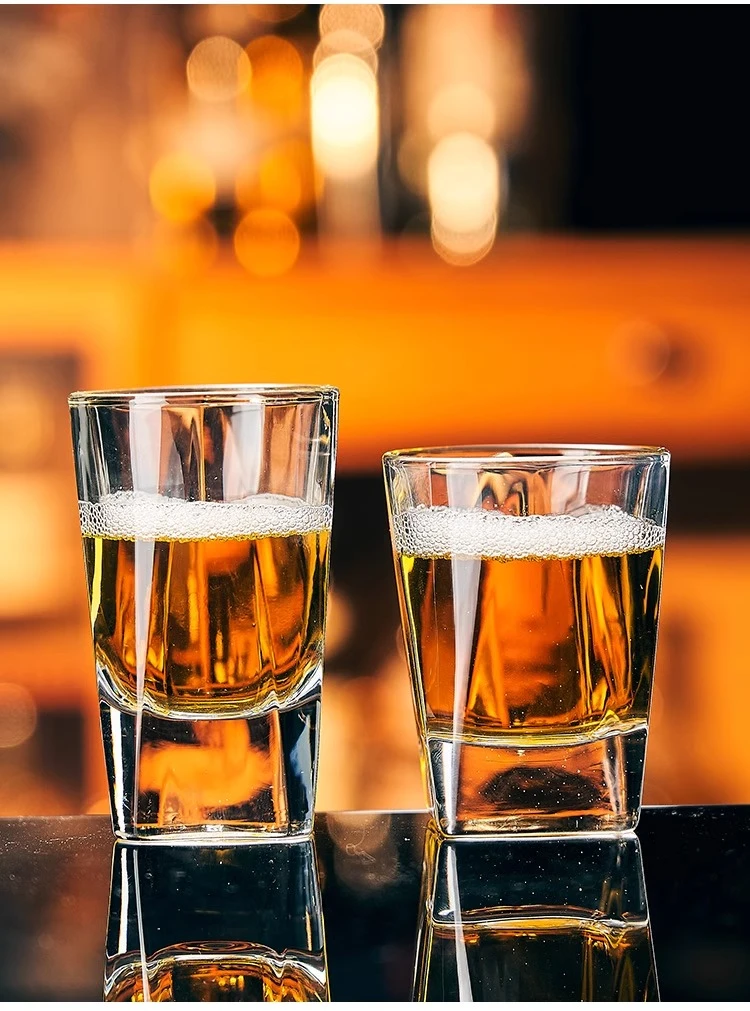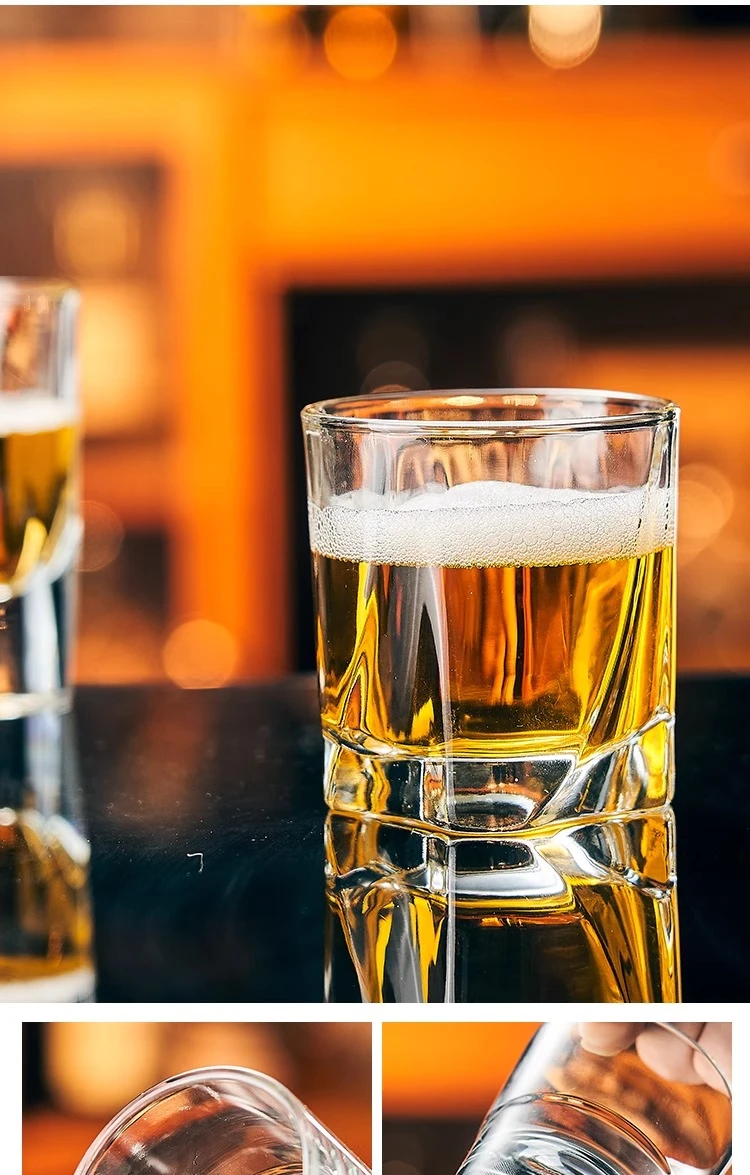 整件 加厚钢化玻璃杯啤酒杯八角杯洋酒杯威士忌杯酒吧KTV酒杯商用