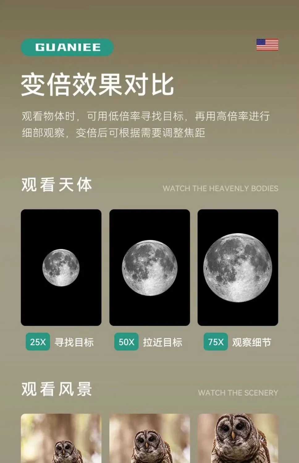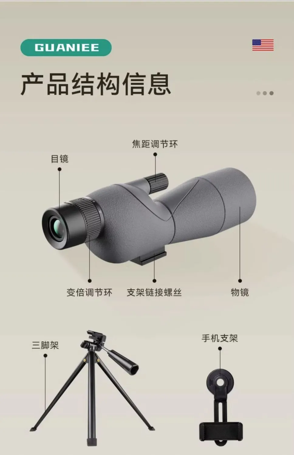 光学变焦观鸟镜变倍单筒望远镜高清高倍75倍机户外拍照观靶专业级
