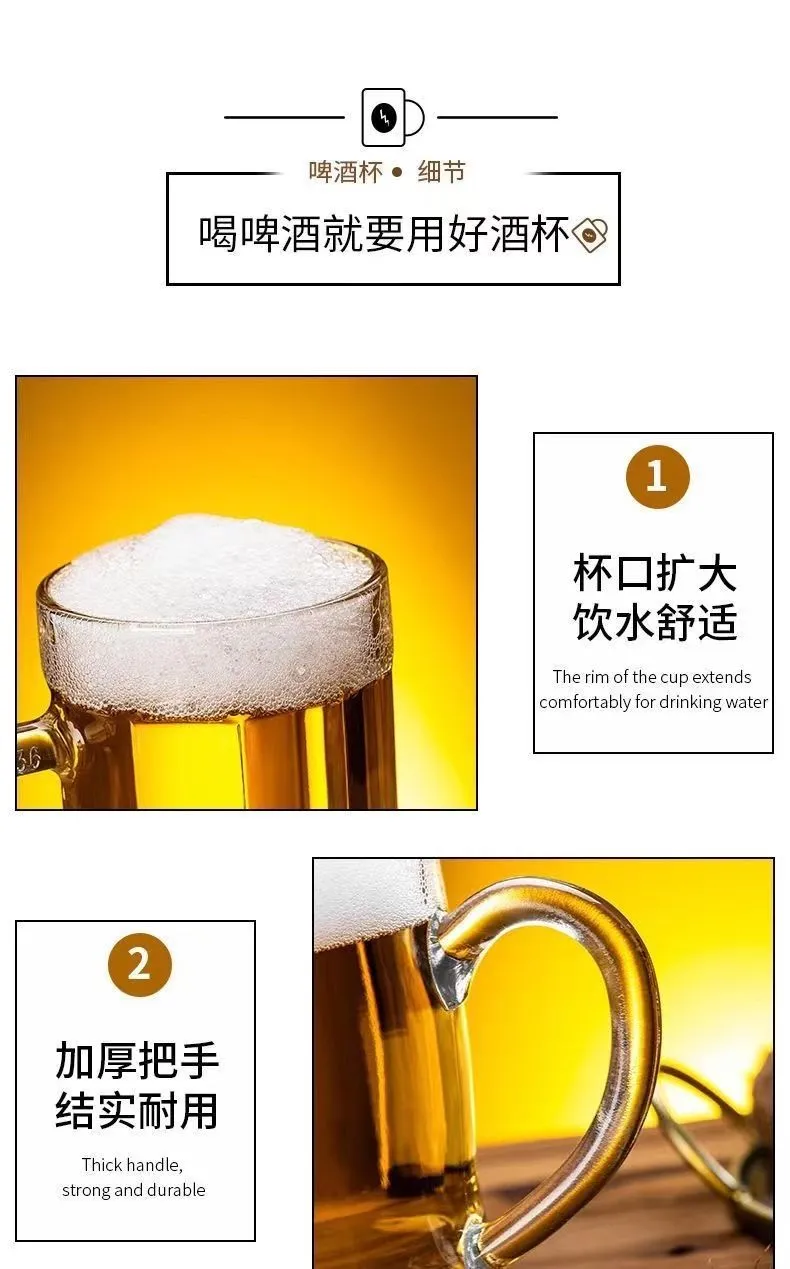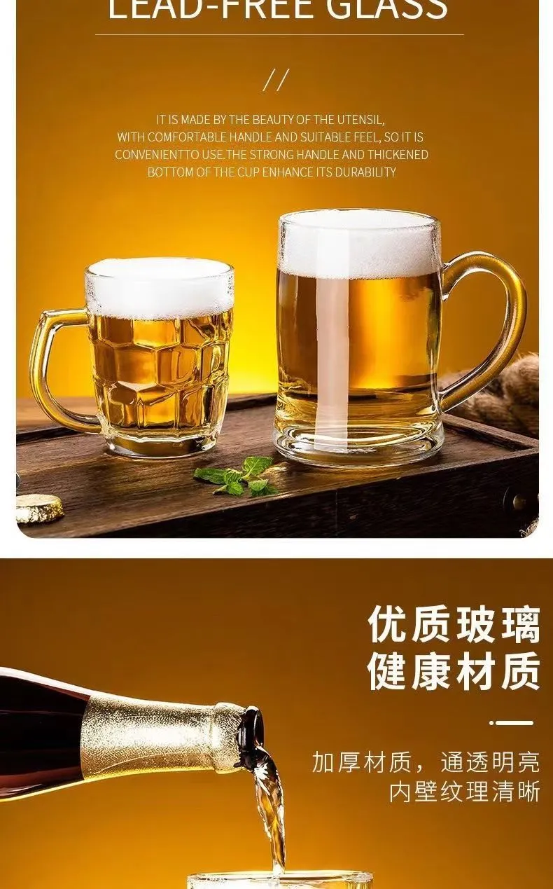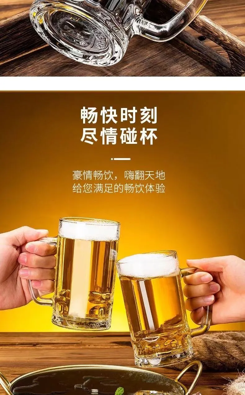扎啤杯商用玻璃把手高颜值玻璃大容量啤酒杯子透明超大加厚喝酒杯