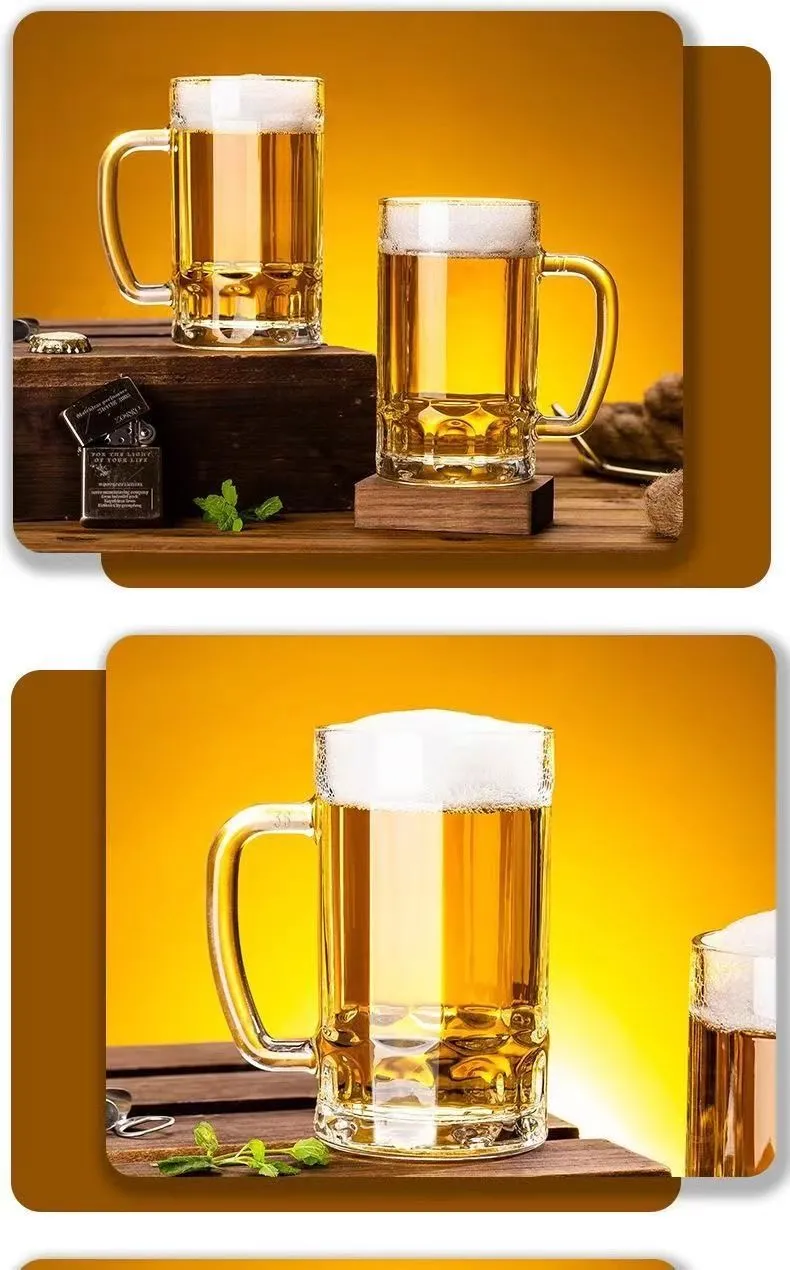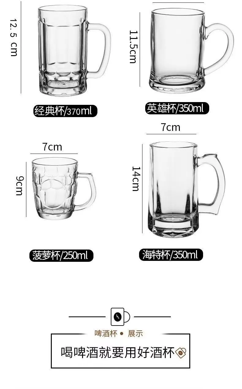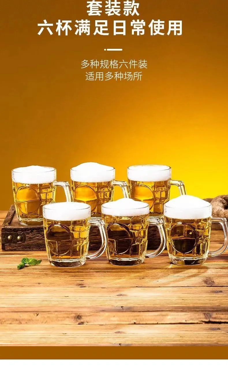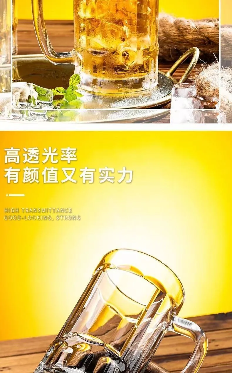 扎啤杯商用玻璃把手高颜值玻璃大容量啤酒杯子透明超大加厚喝酒杯