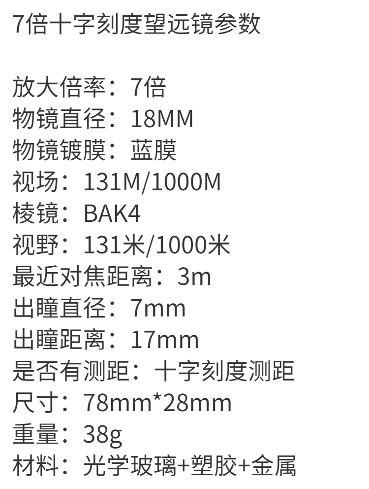 | product (7 times stauroscope + no dust cover)(单品(7倍十字镜+无防尘盖)) | USD $6.87 | 999999 piece available |