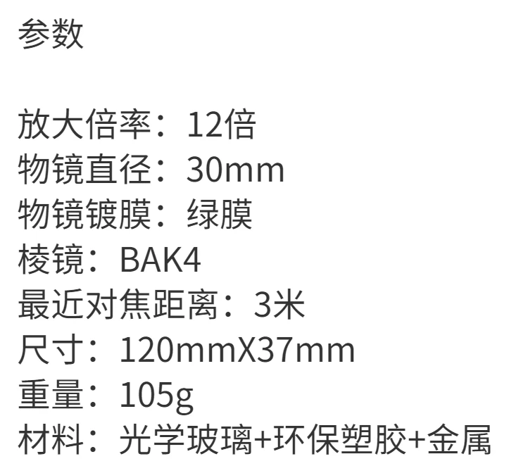 | single product (new 12 times mirror + send dust cover)(单品(新12倍镜+送防尘盖)) | USD $12.76 | 999999 piece available |